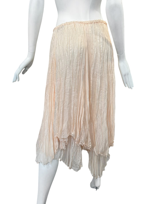 PLEIN SUD 2000s PALE BLUSH SILK CREASED MIDI SKIRT