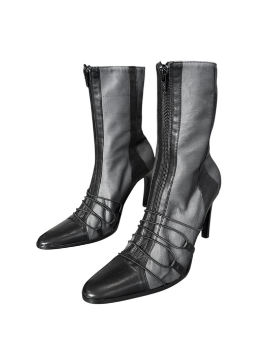 PLEIN SUD 2000s BLACK & GREY LACE-UP BOOTS