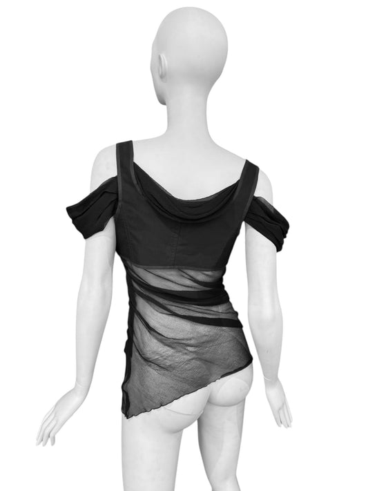 ALEXANDER MCQUEEN SS2005 «IT’S ONLY A GAME» BLACK SILK DRAPED CORSET TOP