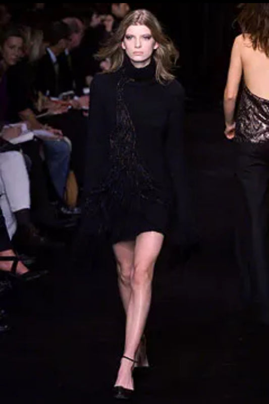 COSTUME NATIONAL FW2002 BLACK KNITTED FRINGED MINI DRESS