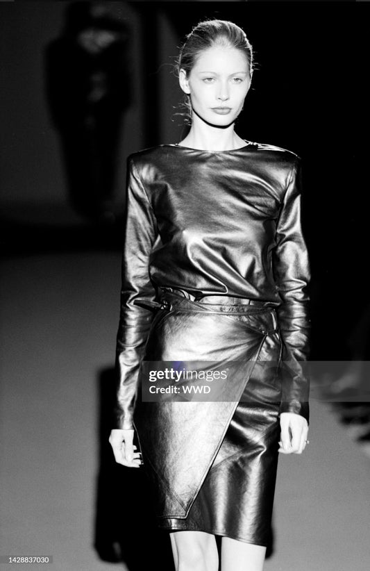 GUCCI FW1997 BY TOM FORD BLACK LEATHER WRAPPABLE MIDI DRESS