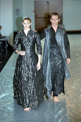 MARC LE BIHAN SS2000 SILVER SILK CREASED JACKET