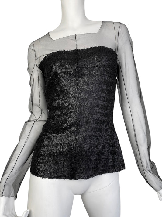 MARC LE BIHAN 2020s BLACK TULLE & SEQUINS TOP