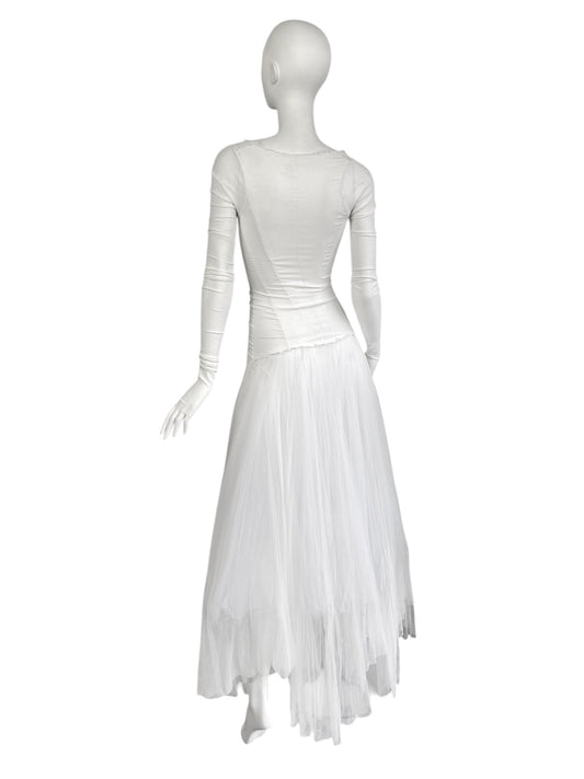 MARC LE BIHAN 2020s WHITE SILK BALLERINA BRIDAL MAXI DRESS