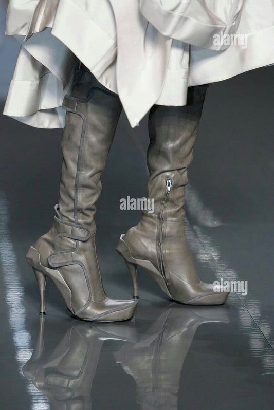 CELINE FW2008 BY IVANA OMAZIC GREY LEATHER MOTO KNEE-HIGH BOOTS