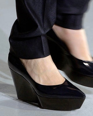 JIL SANDER FW2007 BLACK PATENT LEATHER WEDGE HEELS