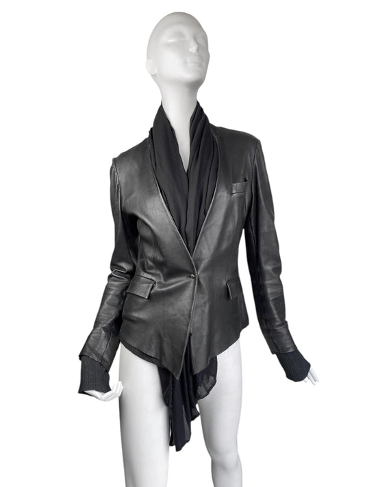 ISAAC SELLAM 2010s BLACK LEATHER SCARF JACKET