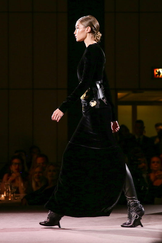 TOM FORD FW2016 BLACK LEATHER BONDAGE BELTS THIGH-HIGH BOOTS