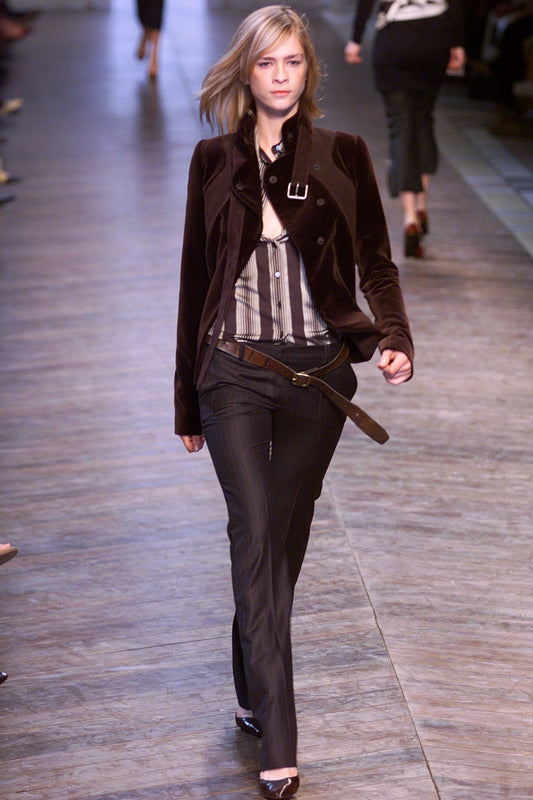 CHLOÉ FW2002 BY PHOEBE PHILO BROWN VELVET & LEATHER JACKET
