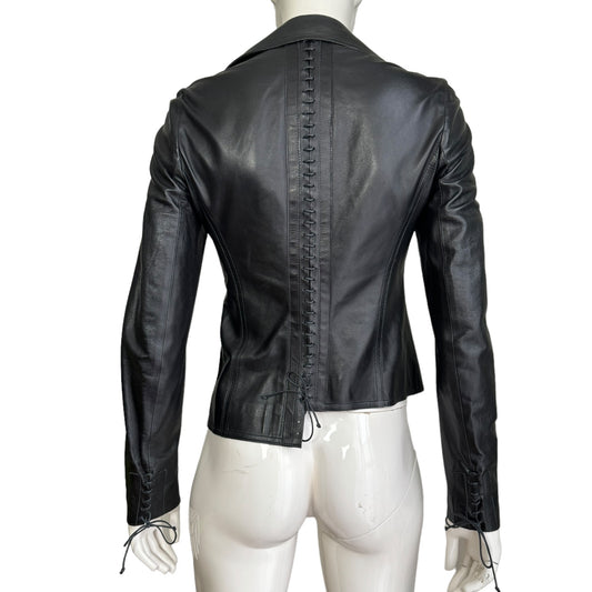 PLEIN SUD FW2002 BLACK LEATHER LACE-UP JACKET