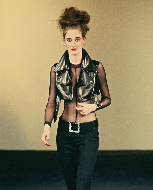 PLEIN SUD SS1990 BLACK LEATHER CROP BIKER VEST