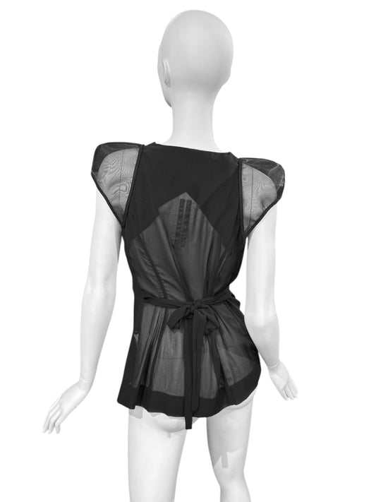 RICK OWENS SS2020 BLACK SILK MESH SHOULDER PAD WRAP TOP