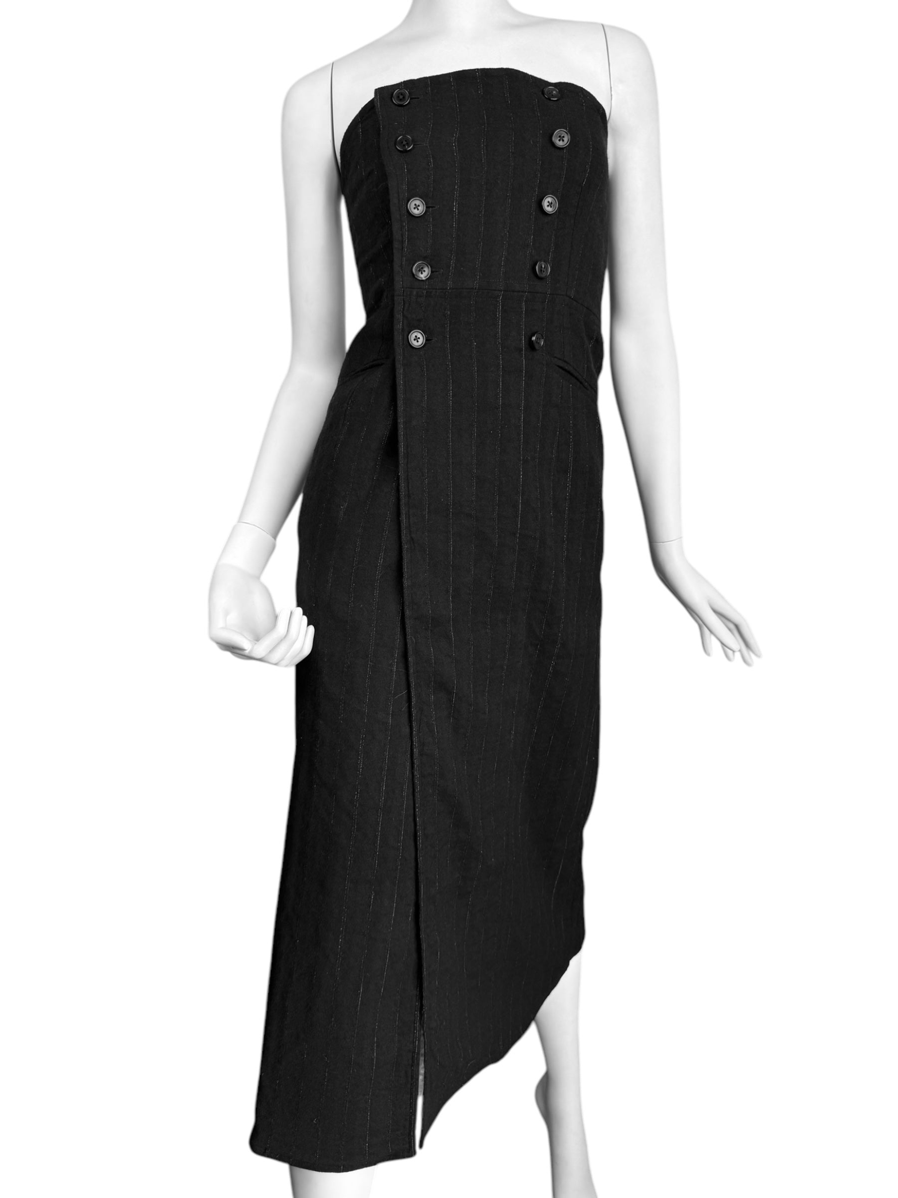 ANN DEMEULEMEESTER FW2018 BY SÉBASTIEN MEUNIER PINSTRIPED DOUBLE BREASTED BUSTIER DRESS