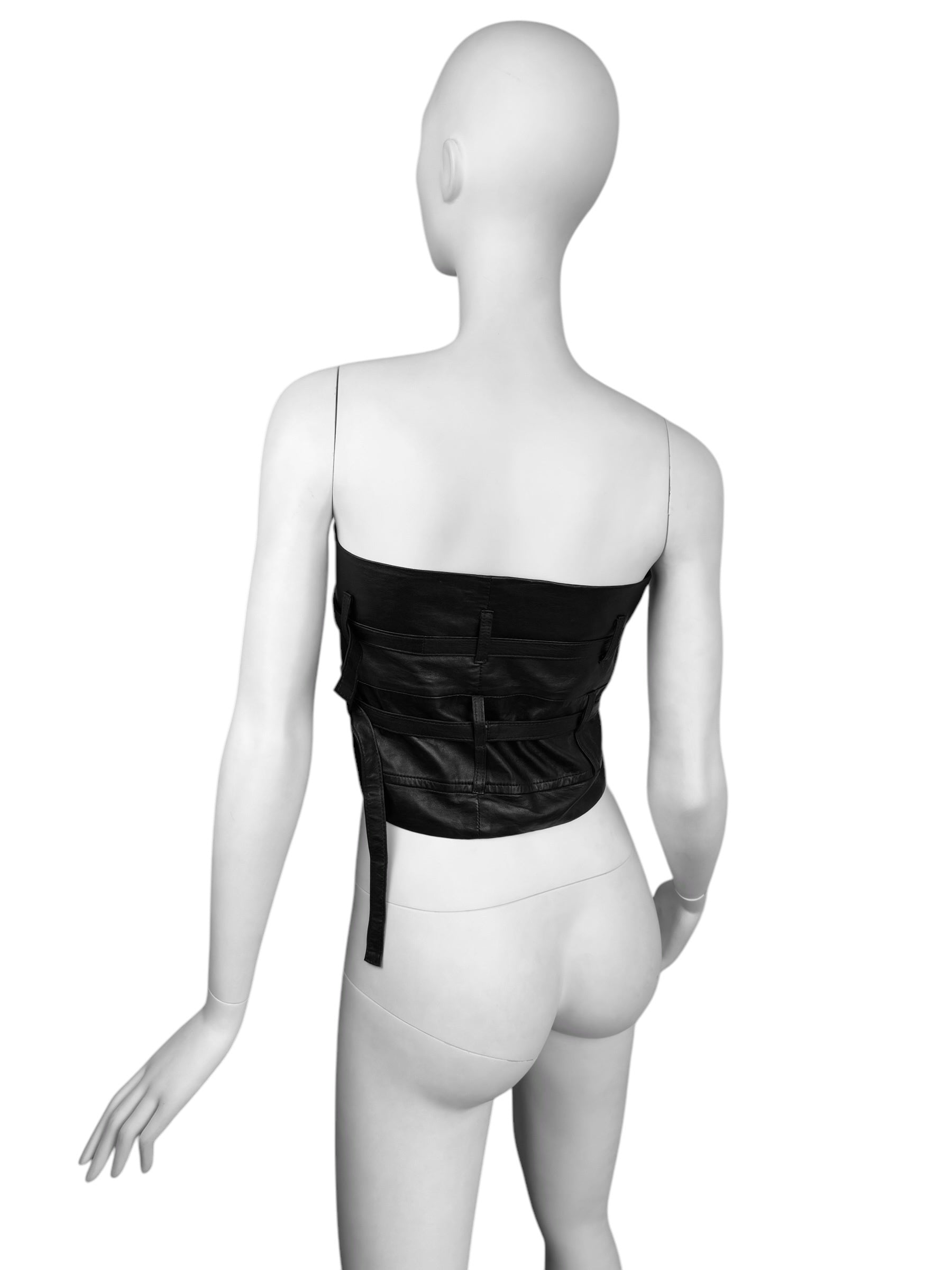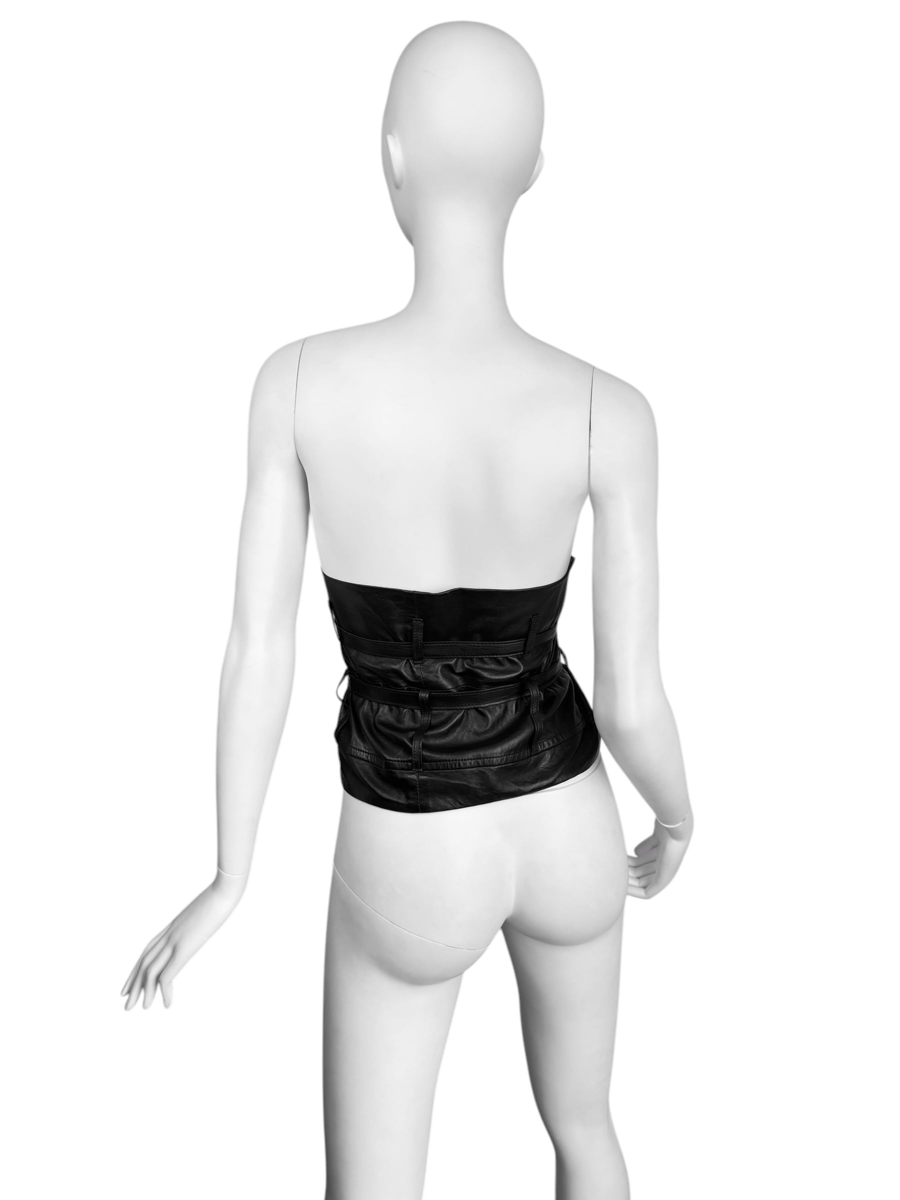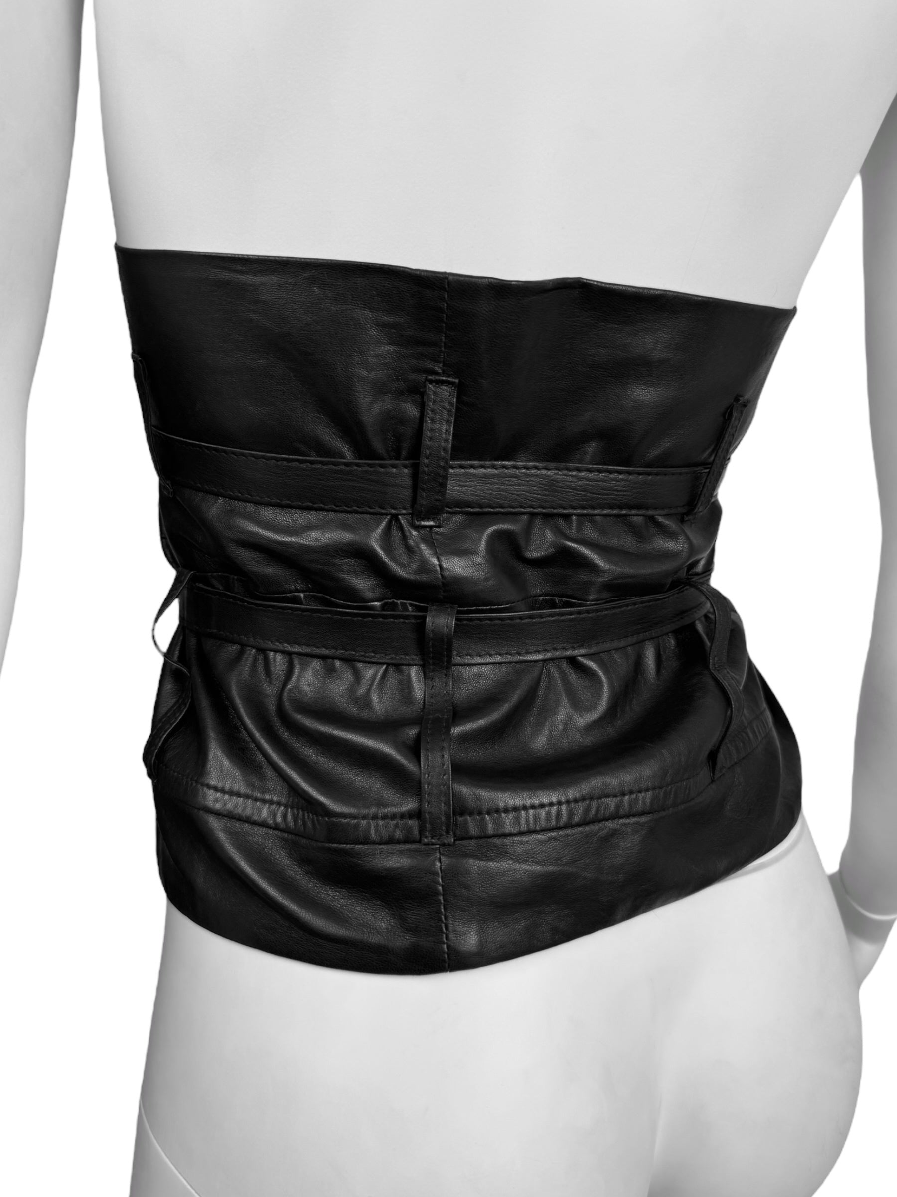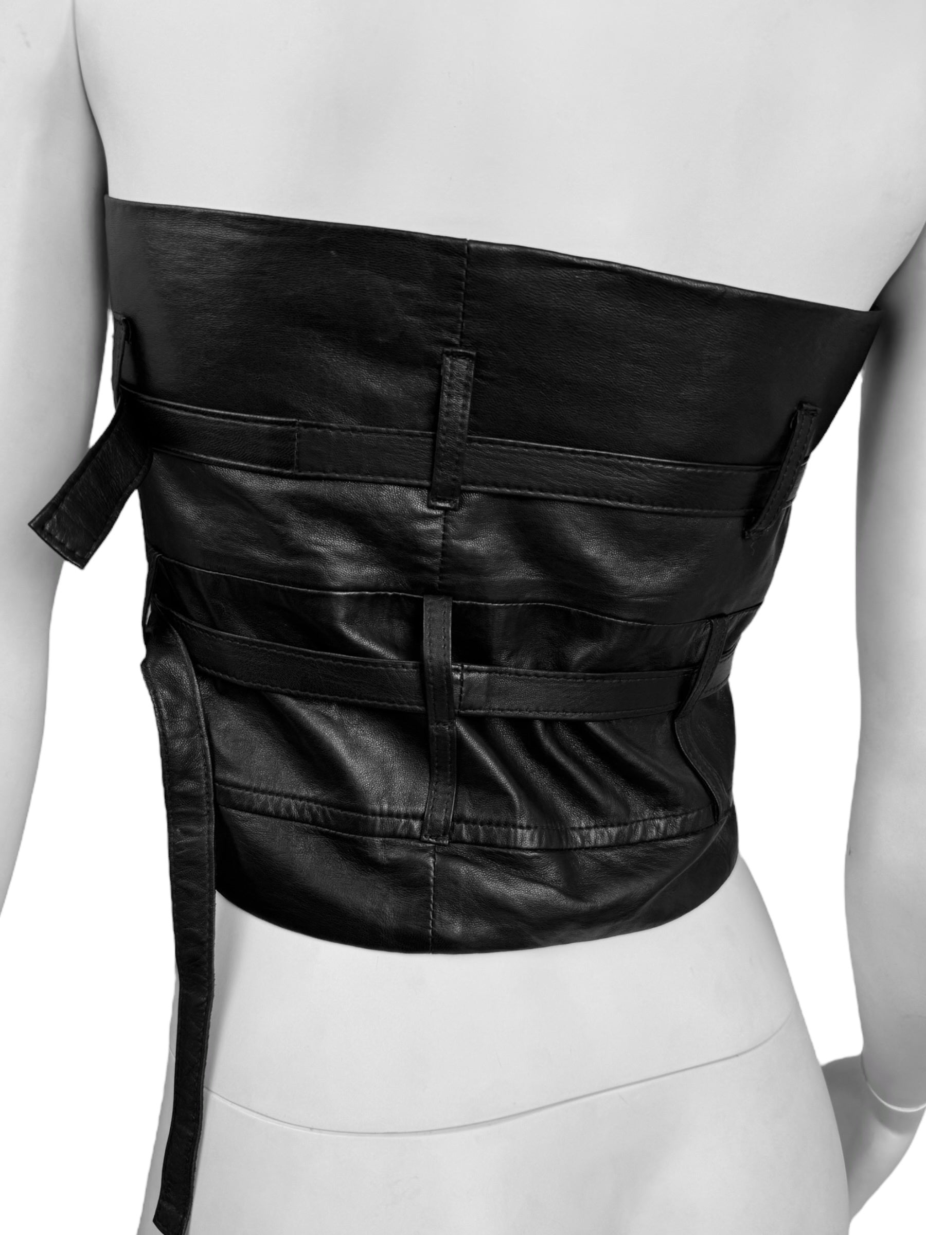 ANN DEMEULEMEESTER FW2010 BLACK LEATHER STRAPS BONDAGE BUSTIER TOP/CORSET