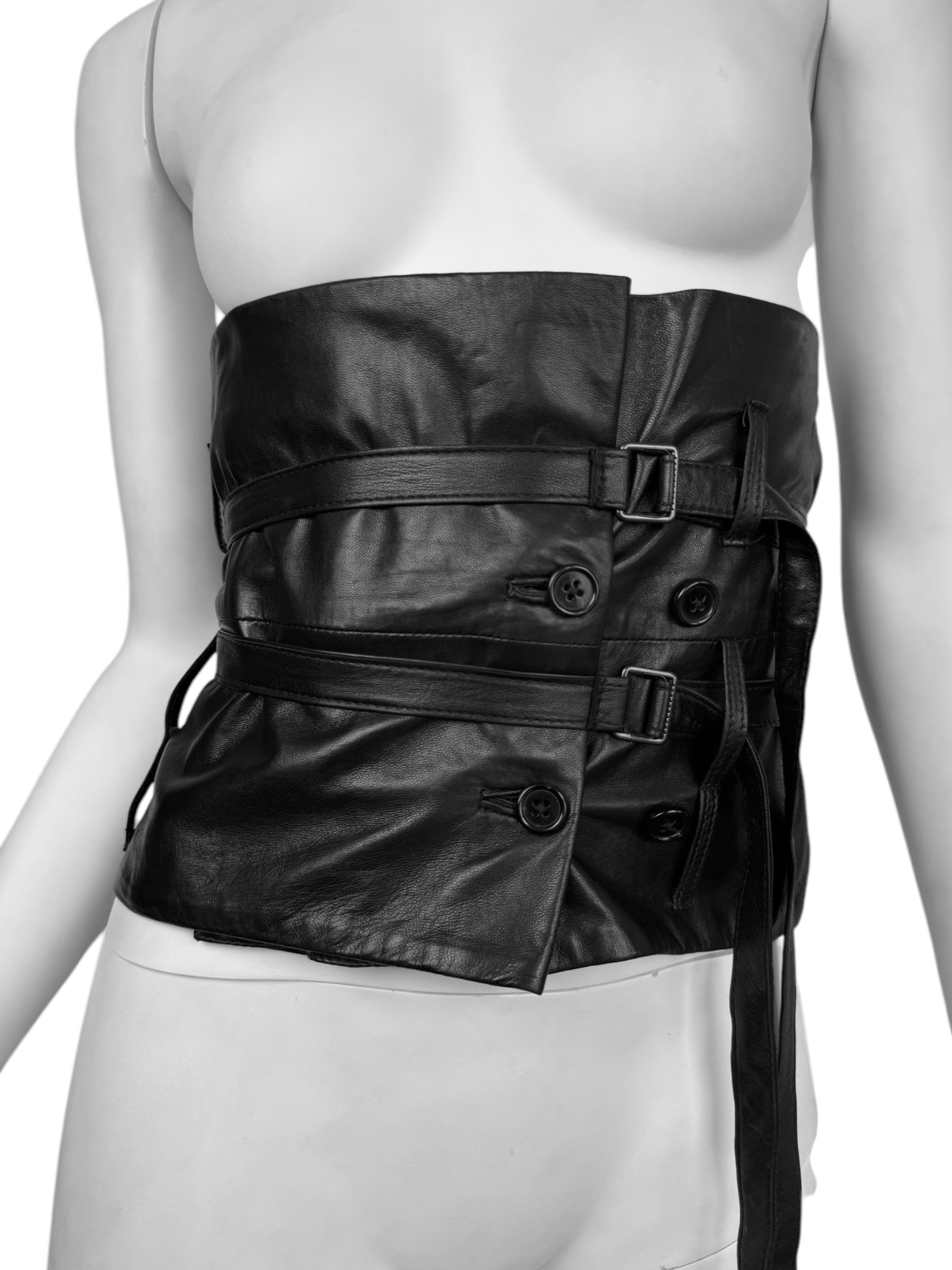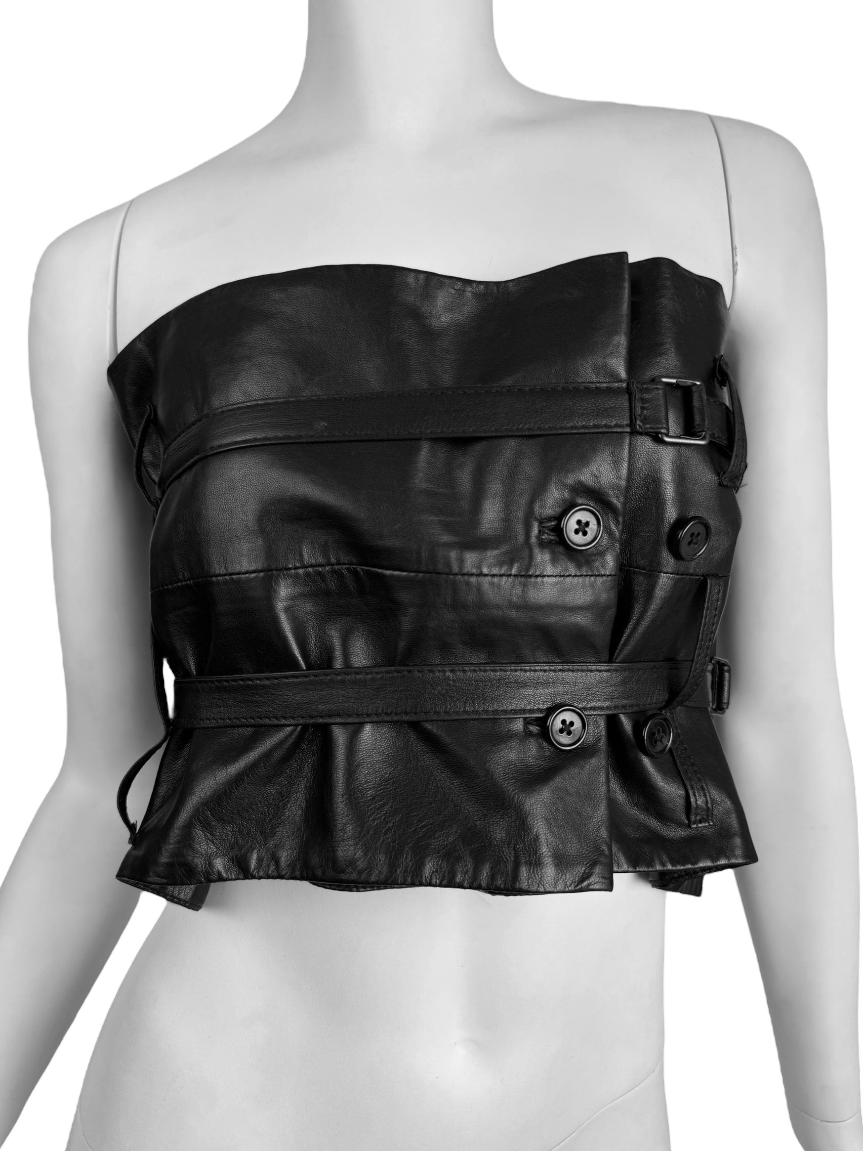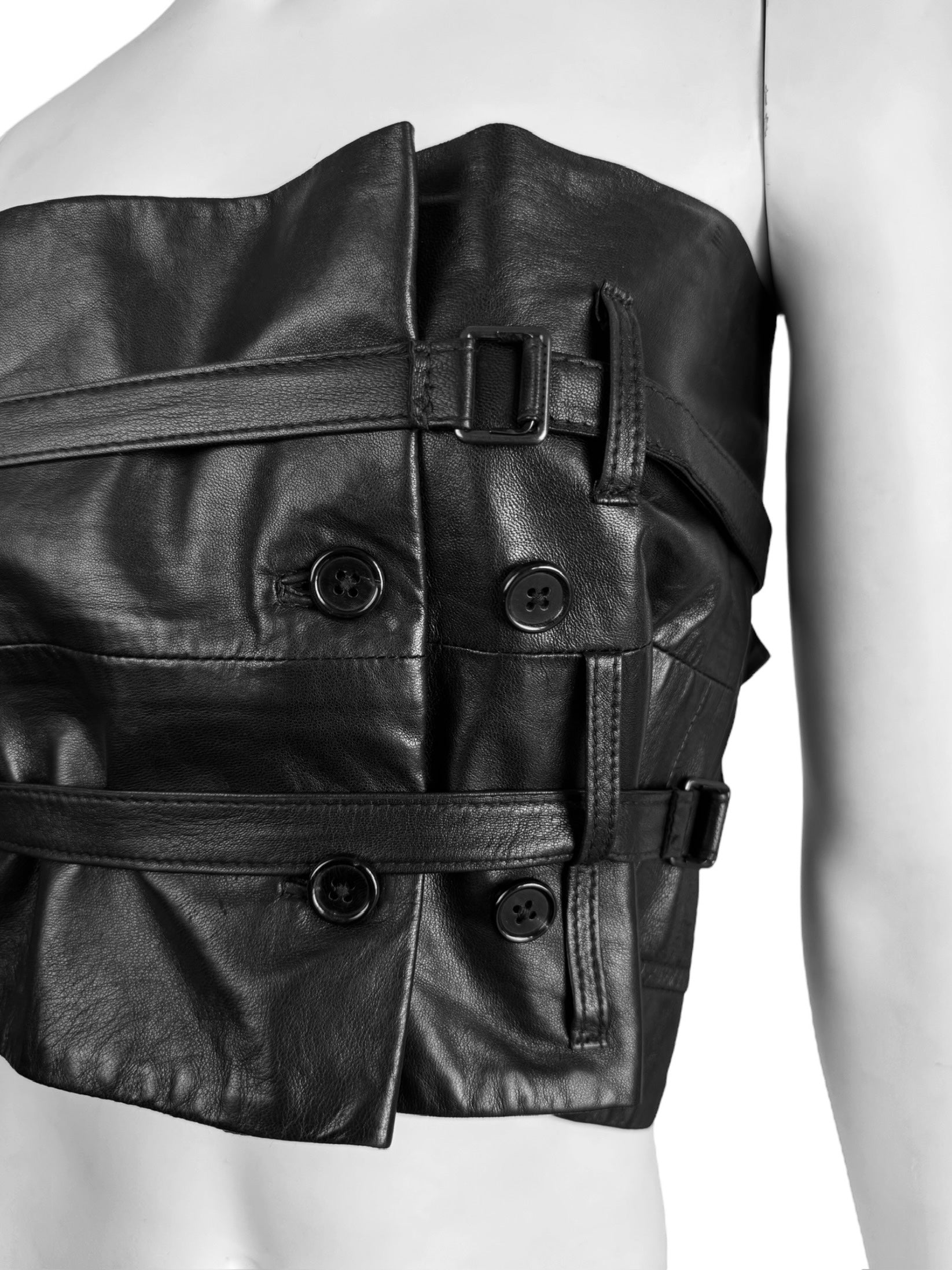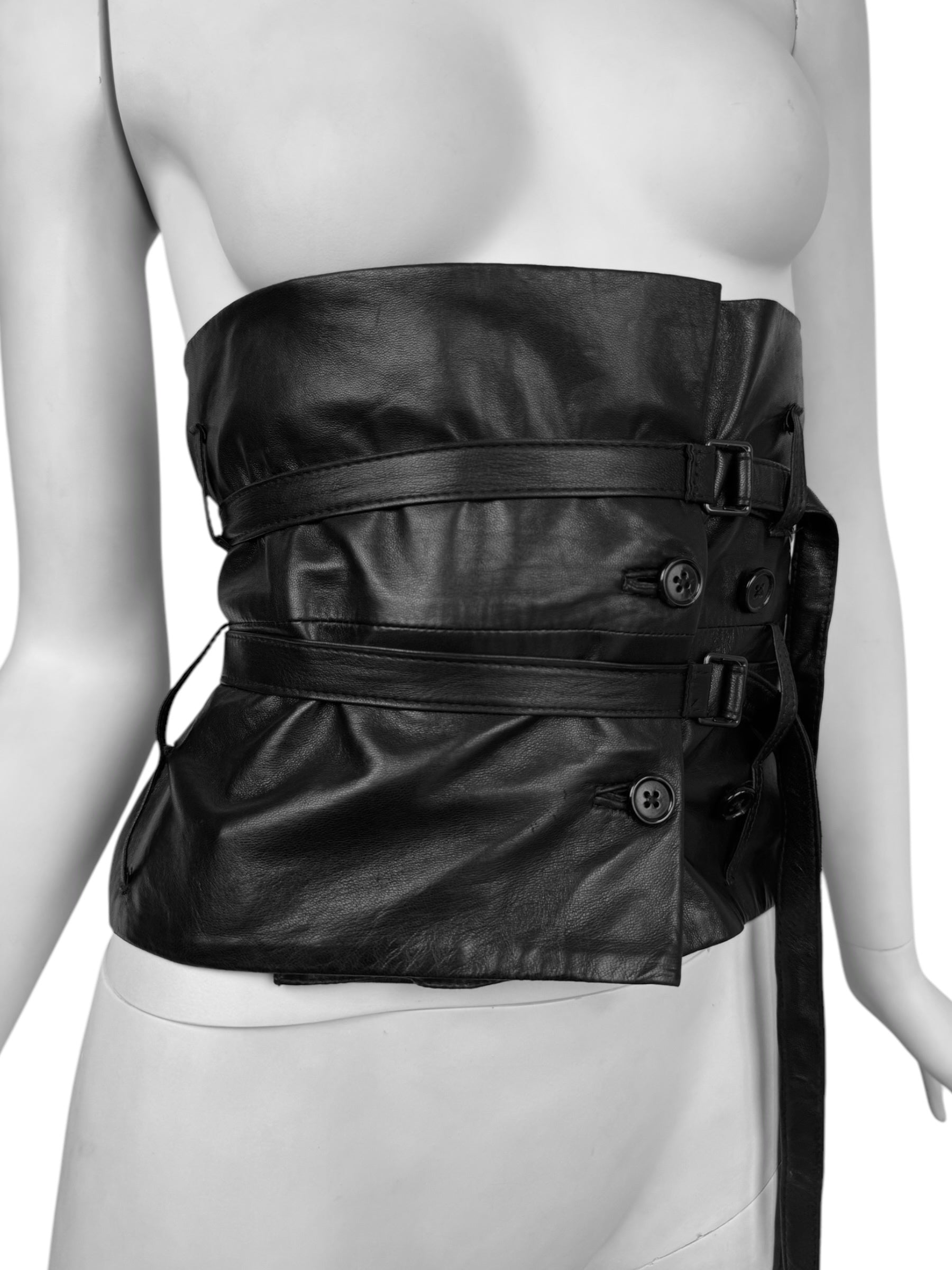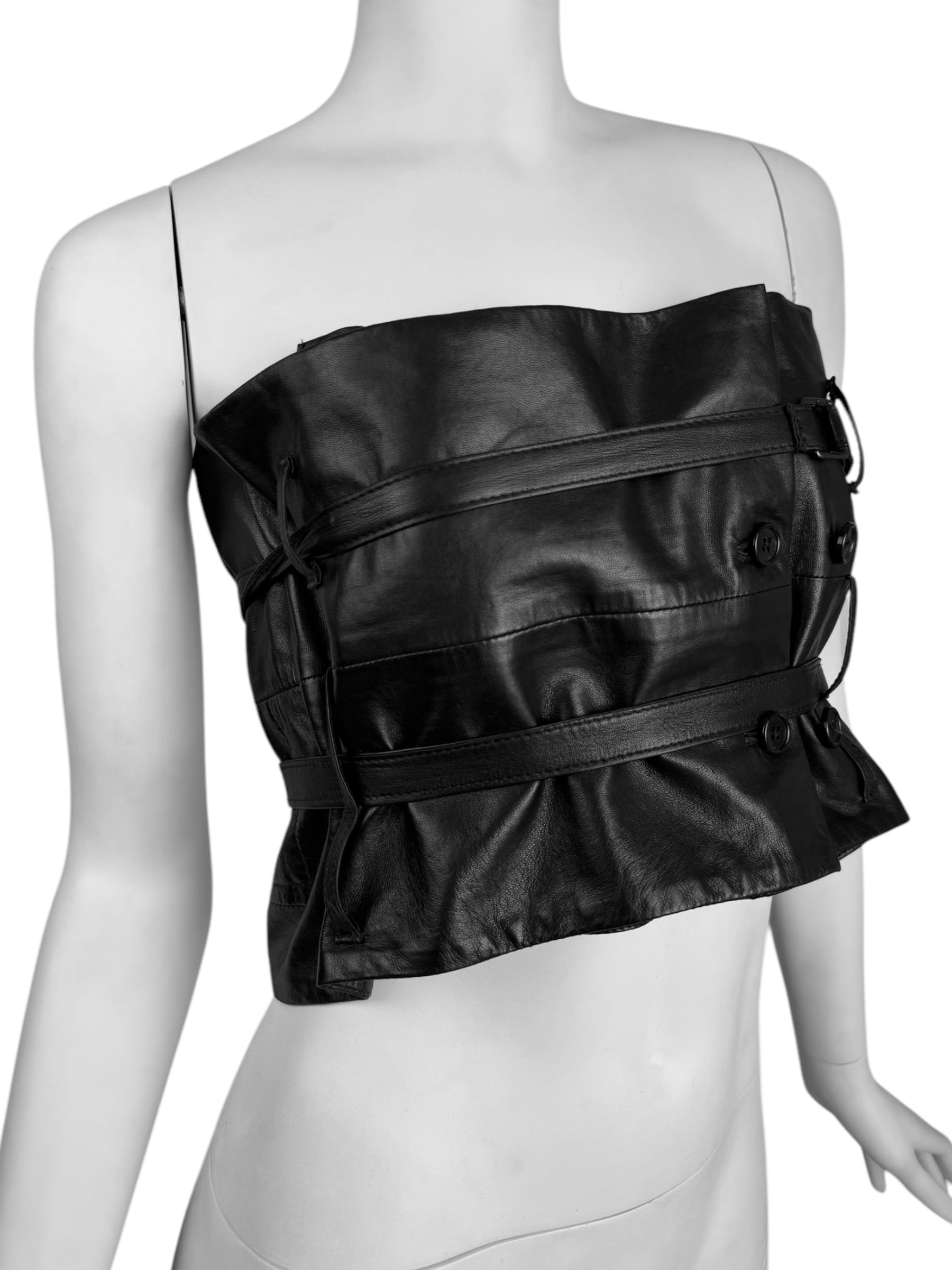 ANN DEMEULEMEESTER FW2010 BLACK LEATHER STRAPS BONDAGE BUSTIER TOP/CORSET