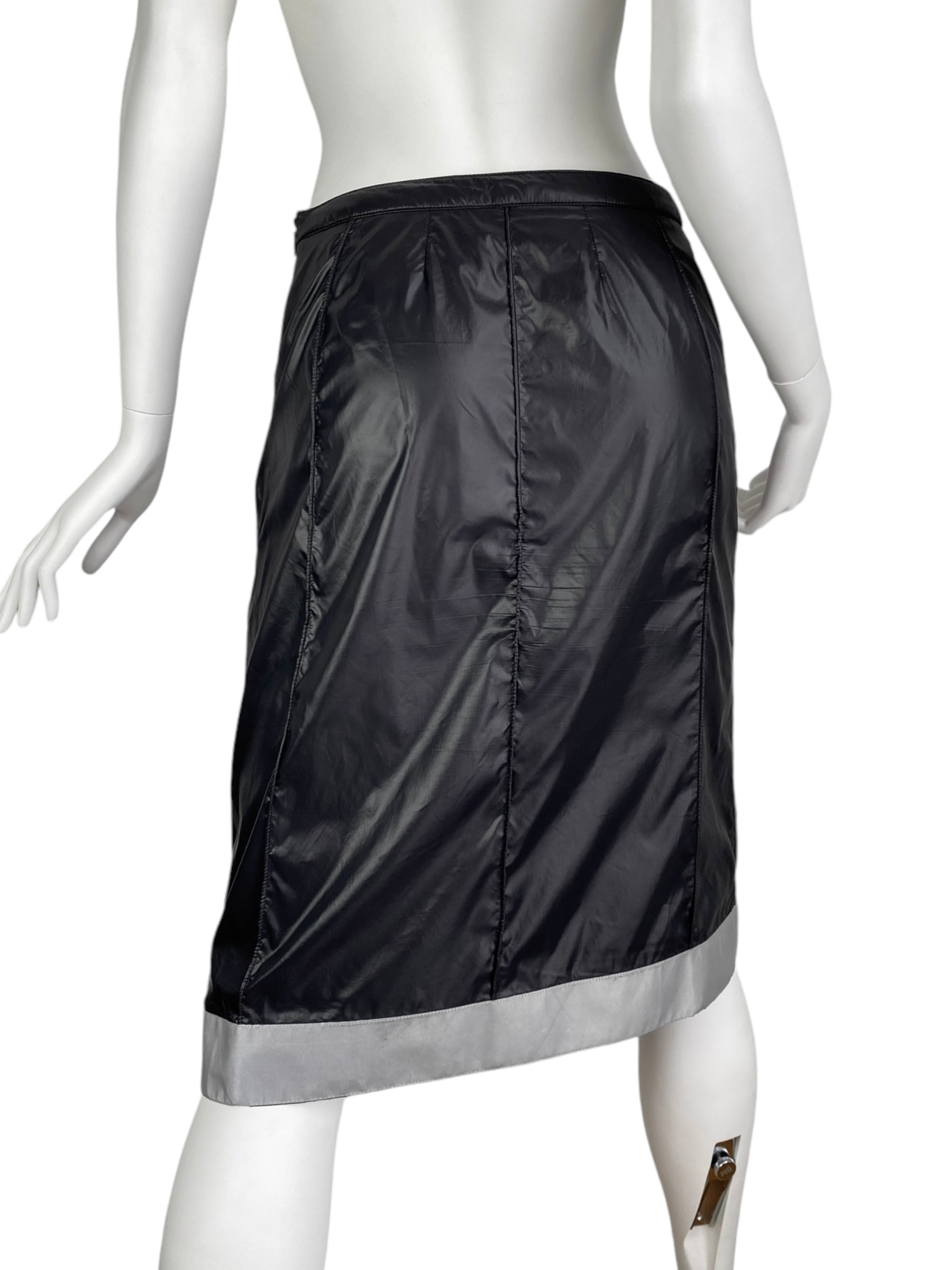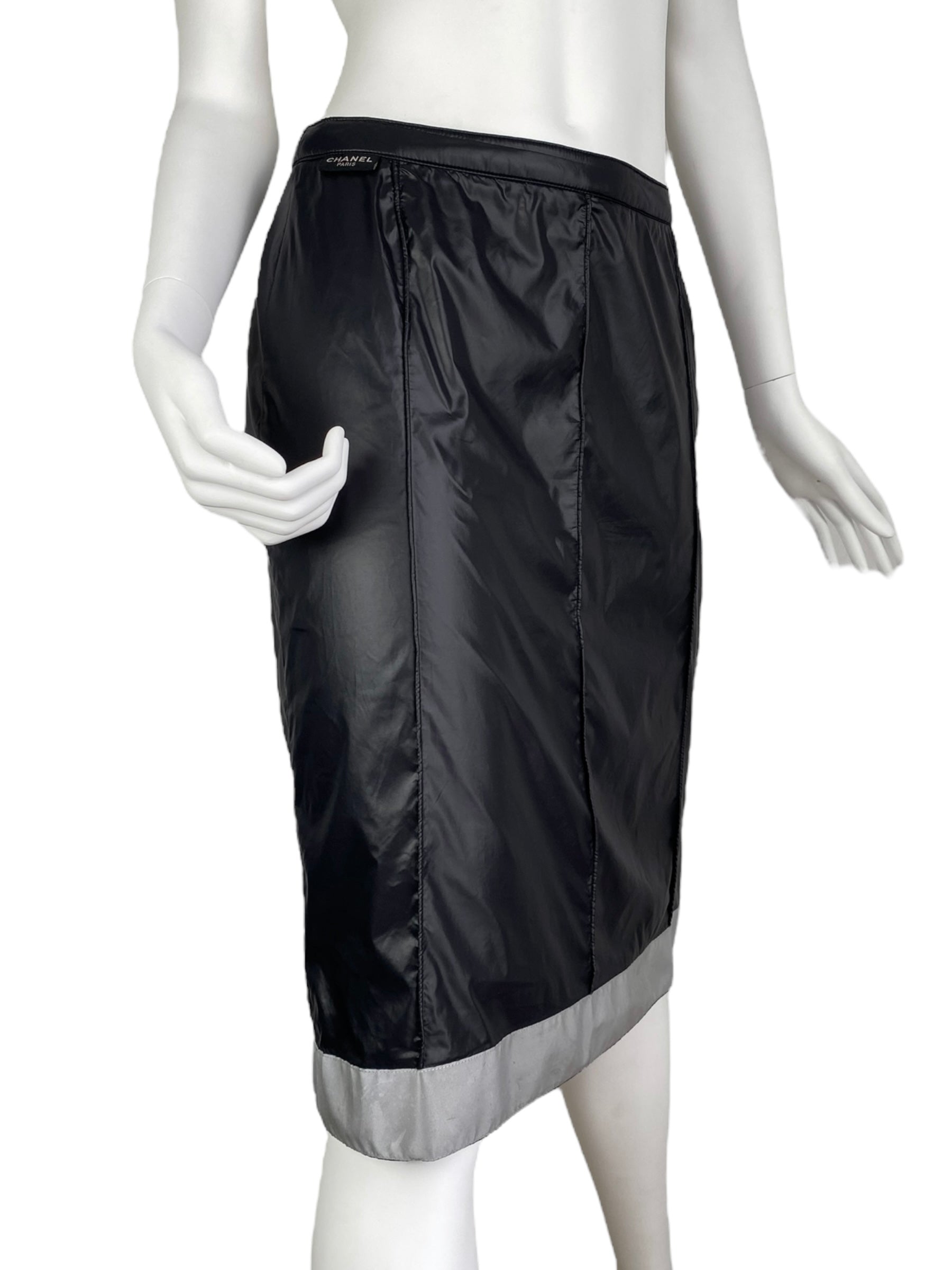 CHANEL SS1999 BY KARL LAGERFELD BLACK NYLON REFLECTIVE HEM MIDI SKIRT