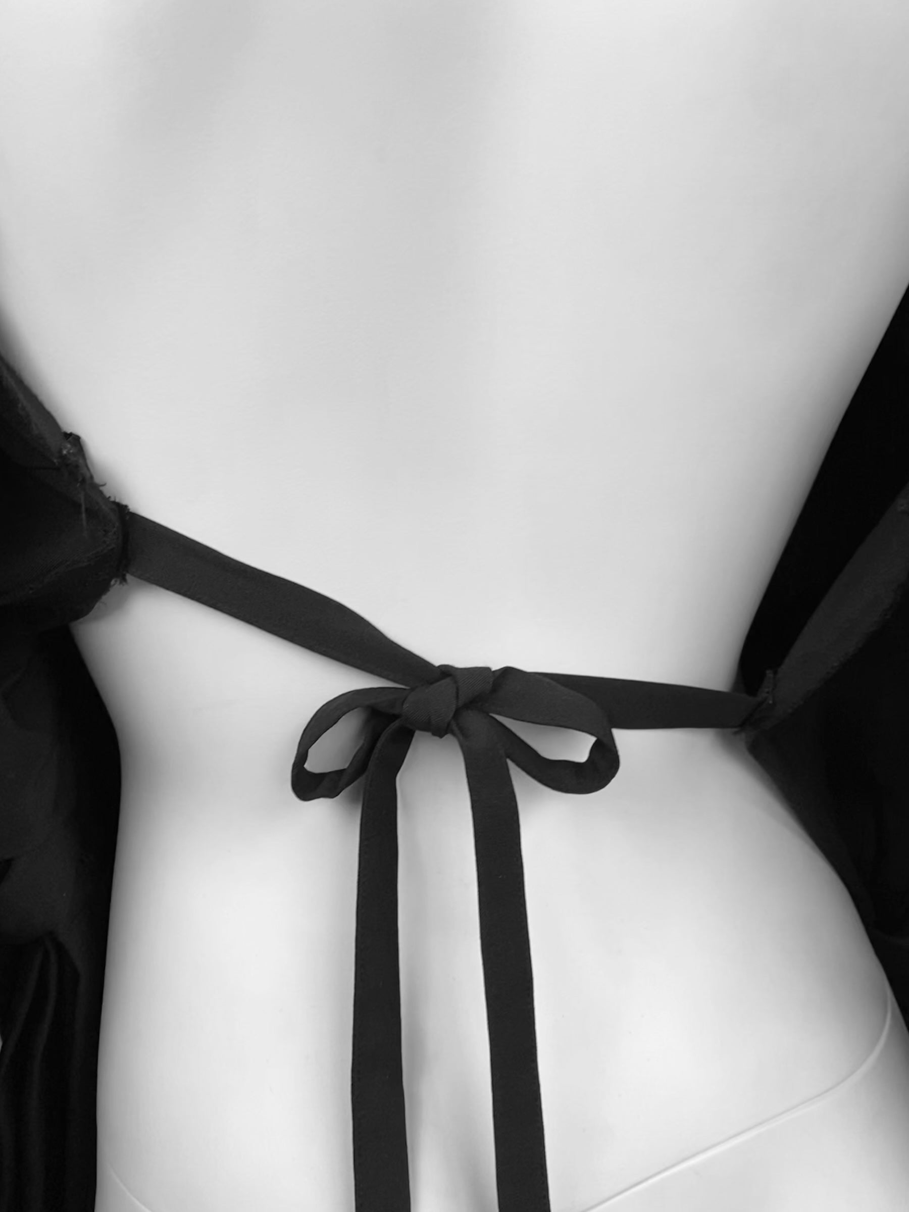 COMME DES GARÇONS SS2003 BLACK PLEATED KNOT BACKLESS BLAZER