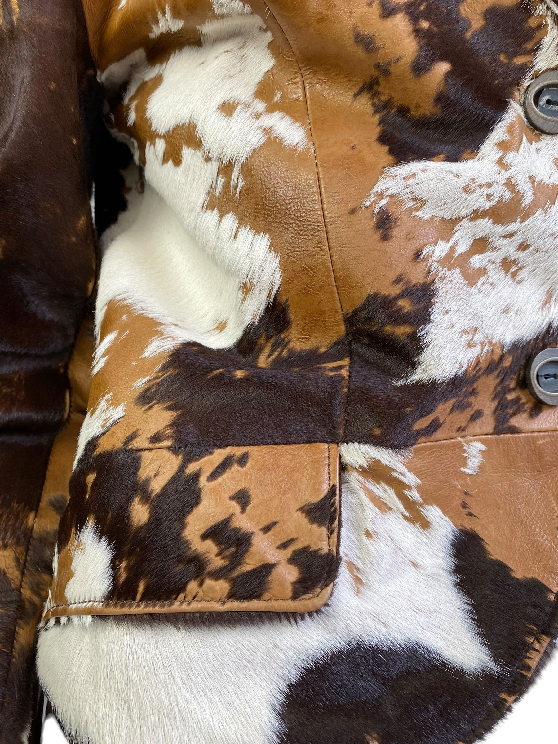 DESI 2000s BROWN & WHITE COWHIDE LEATHER BLAZER