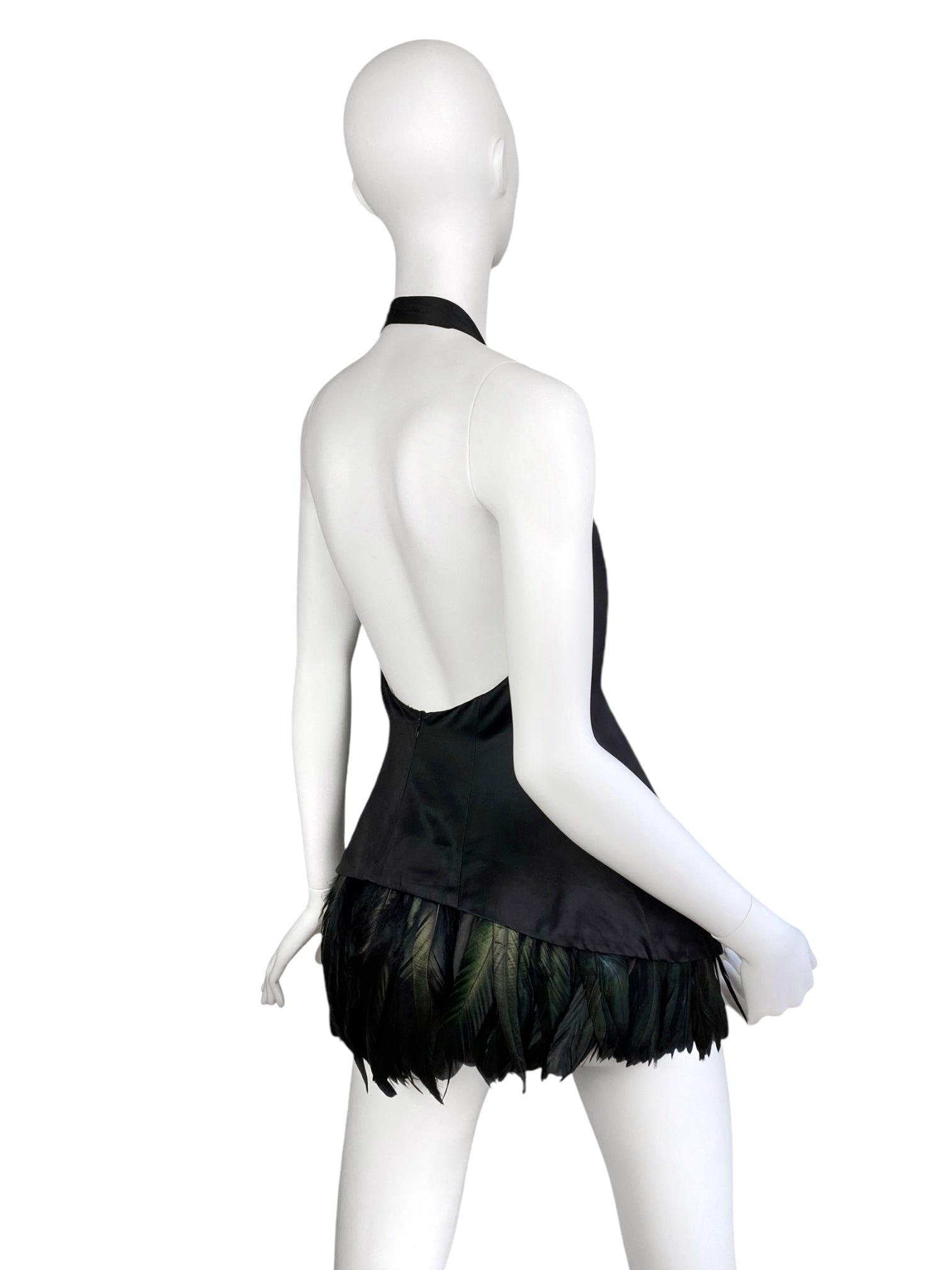 DICE KAYEK 2010s DARK GREEN ROOSTER FEATHERS BLACK HALTERNECK TOP