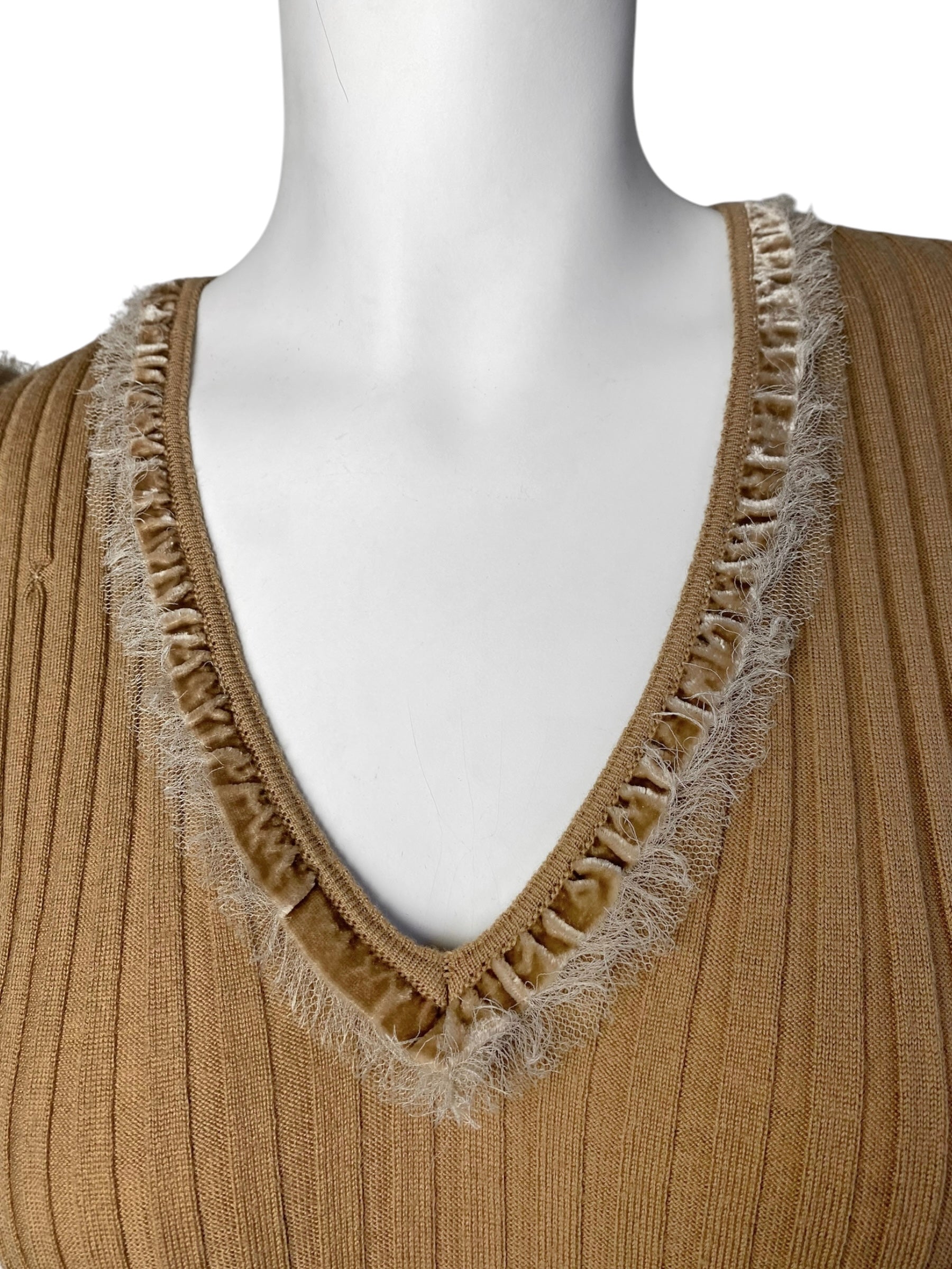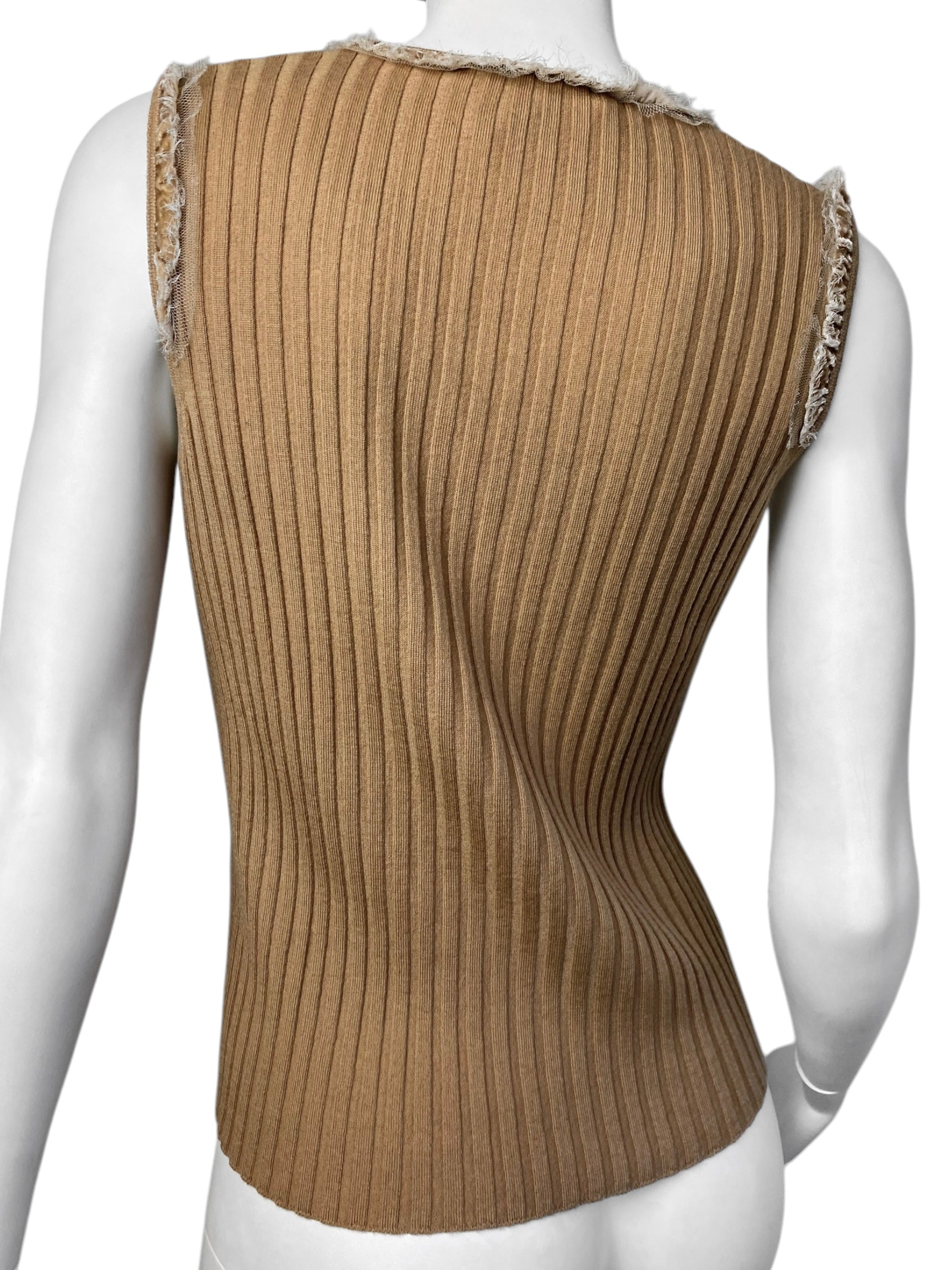 DIOR FW2005 BY GALLIANO CAMEL WOOL RUFFLES TRIM TANK TOP