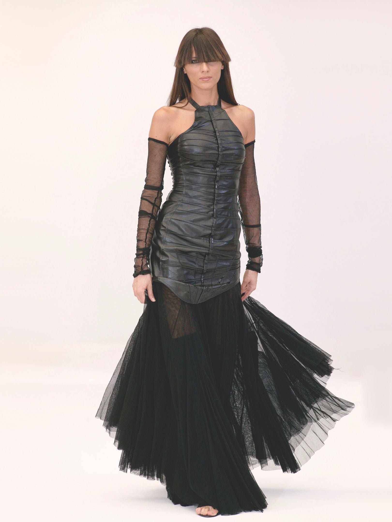 FAYÇAL AMOR SS2004 BROWN DARTED HALTERNECK MINI DRESS