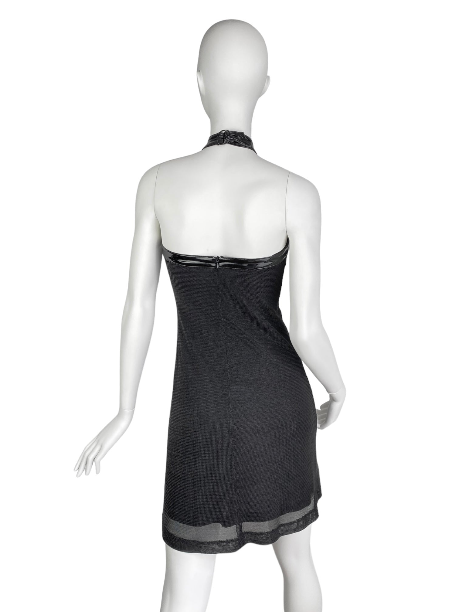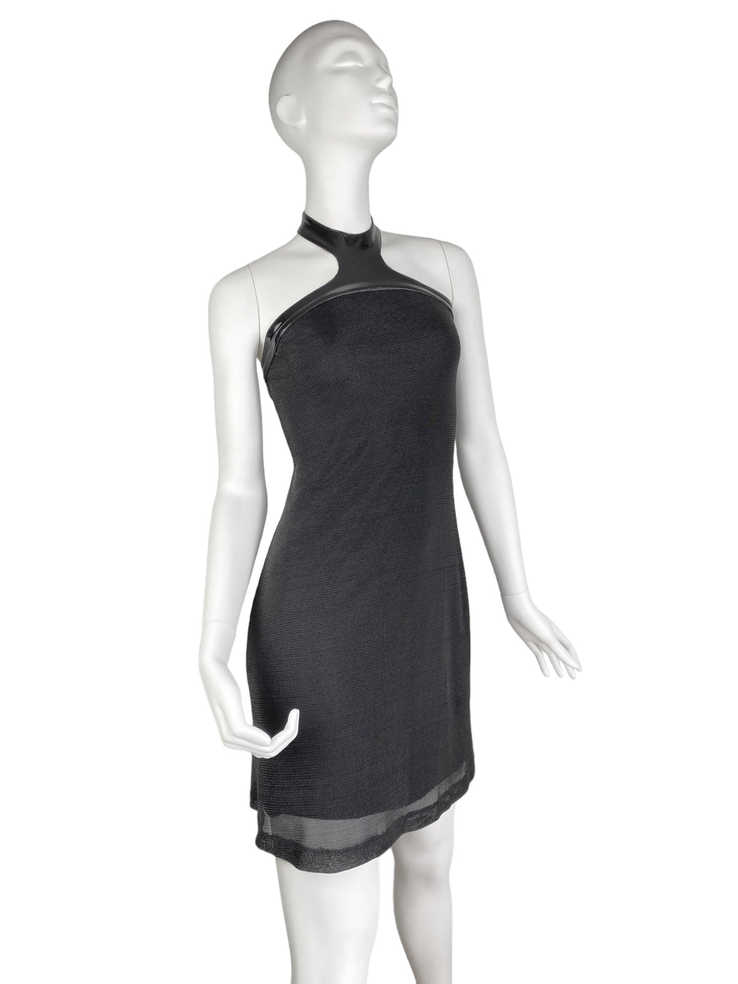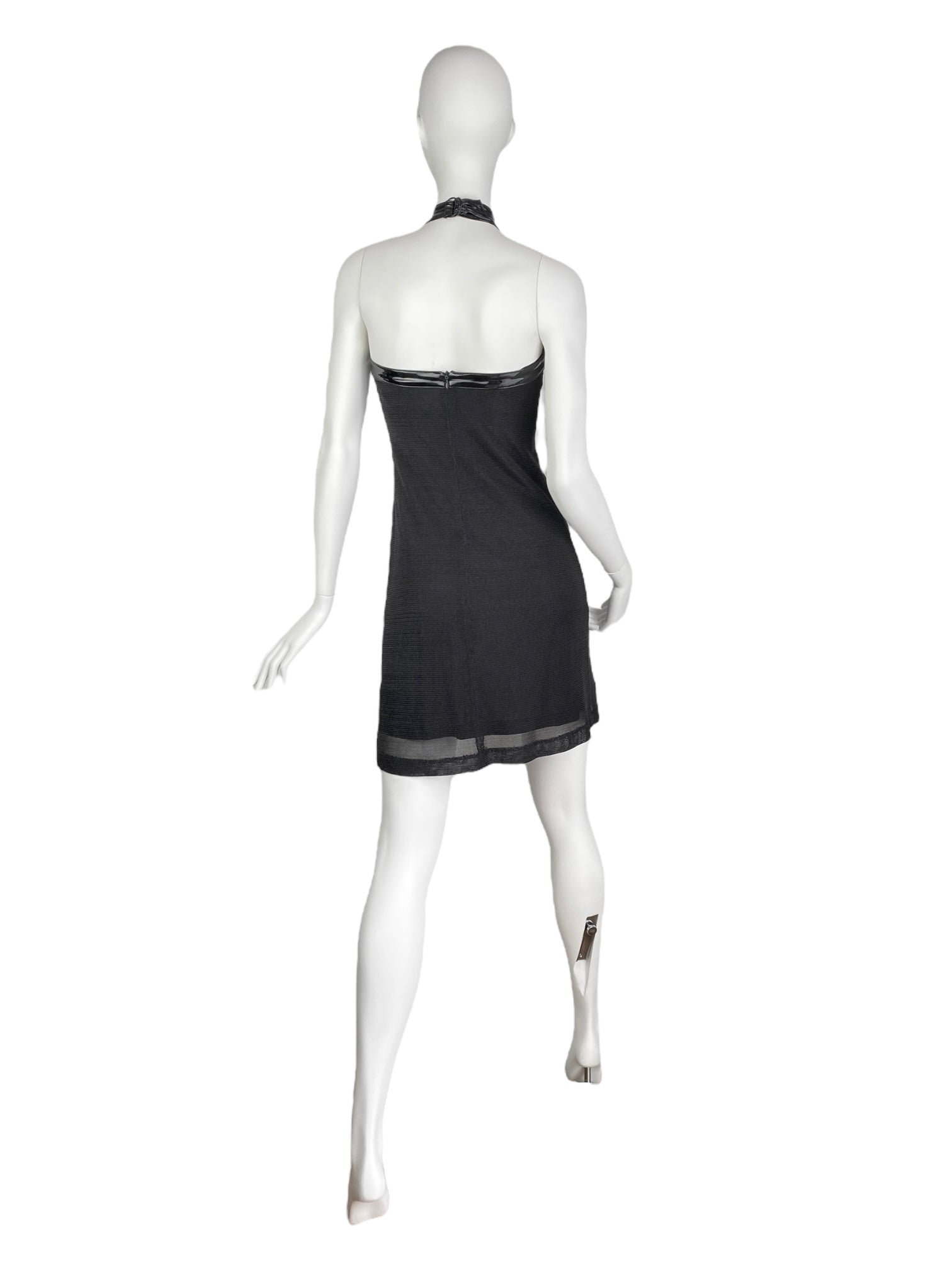 PLEIN SUD SS2004 BLACK METALLIC HALTERNECK MINI DRESS