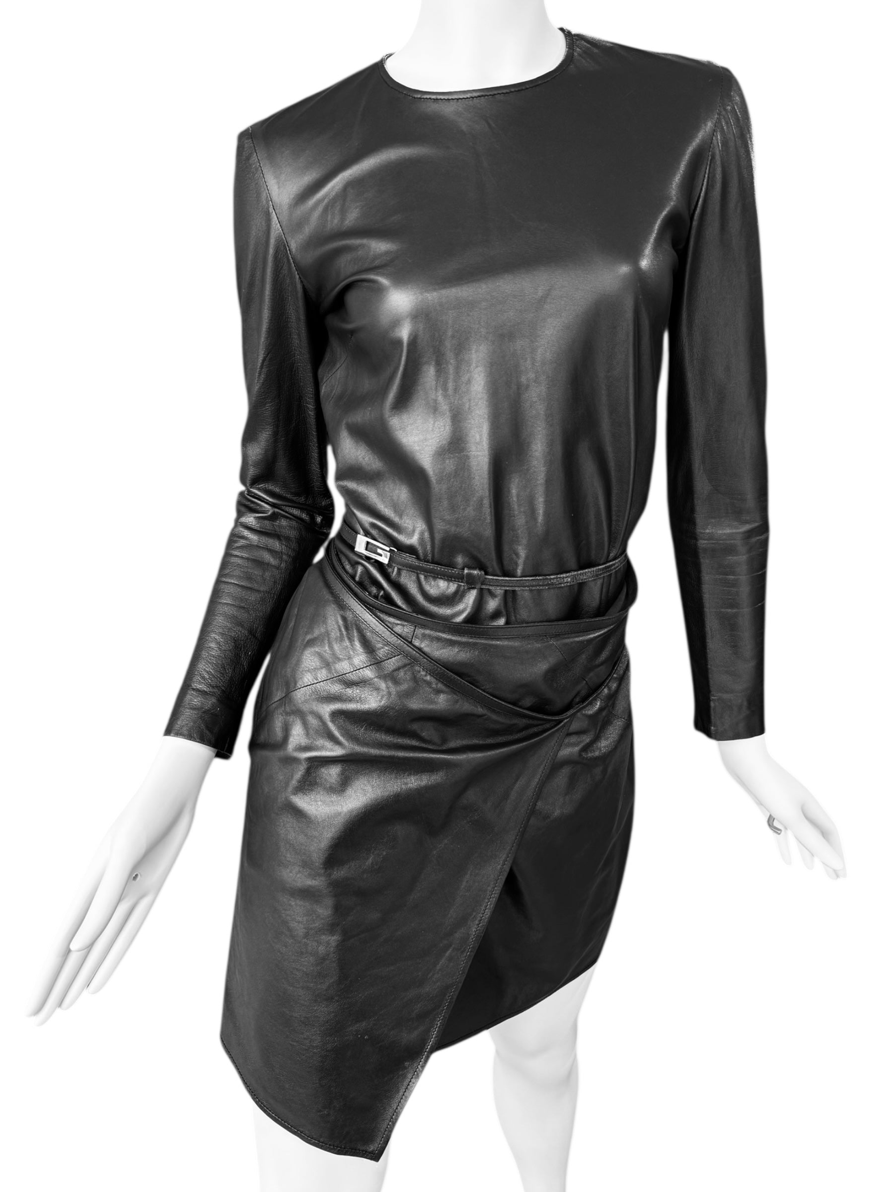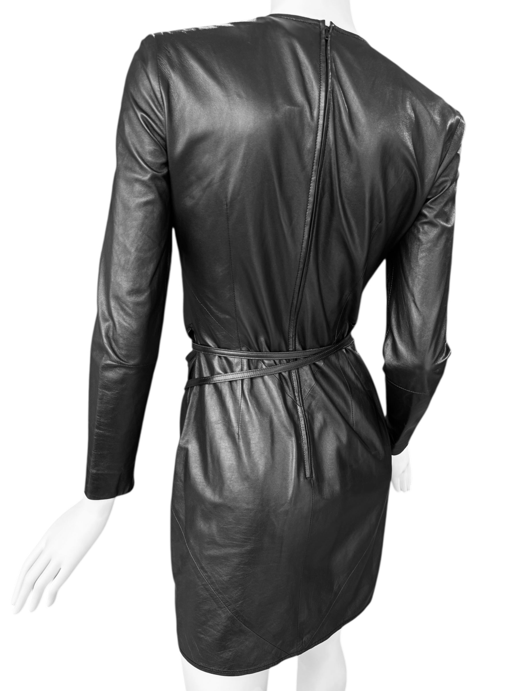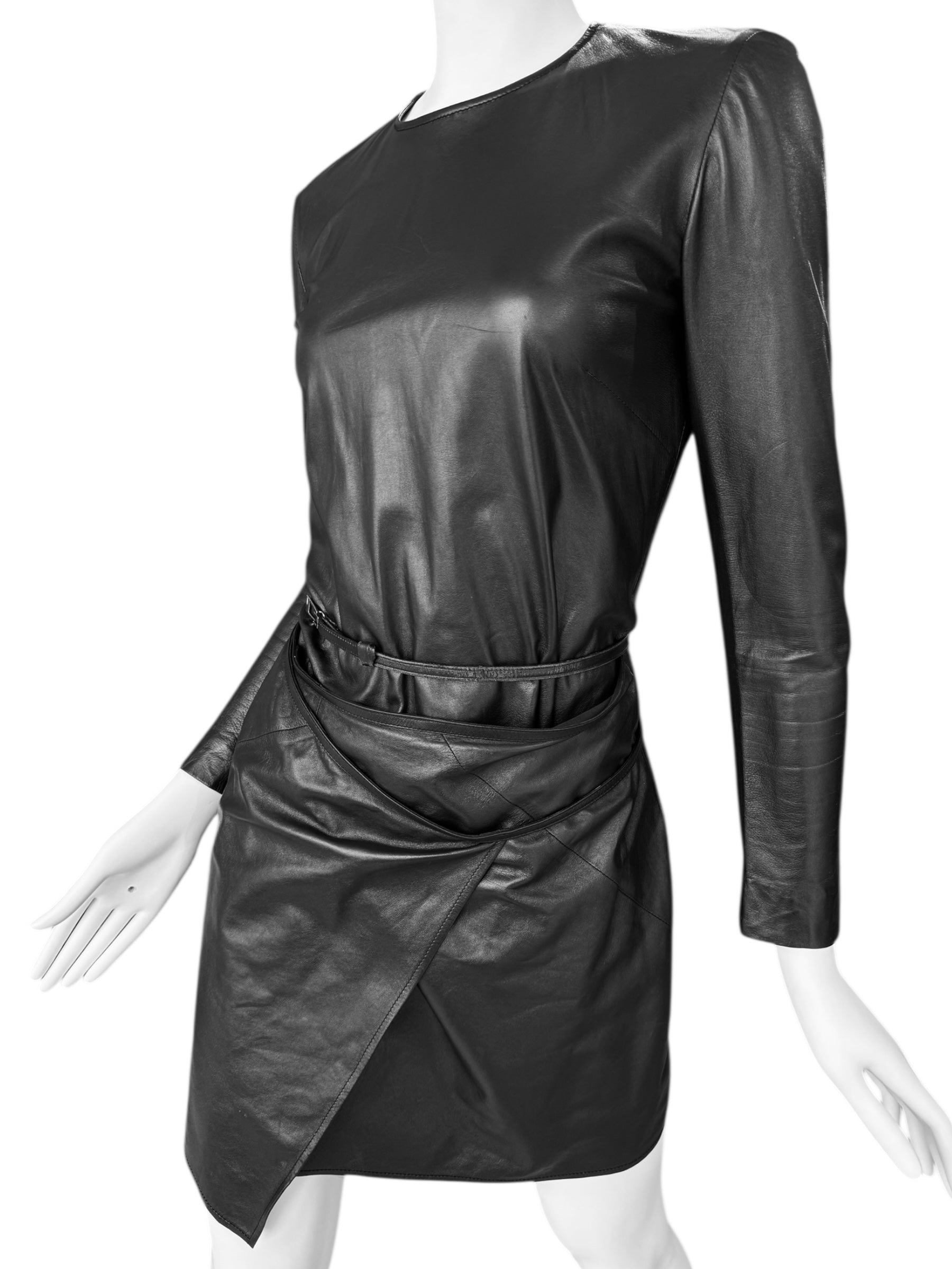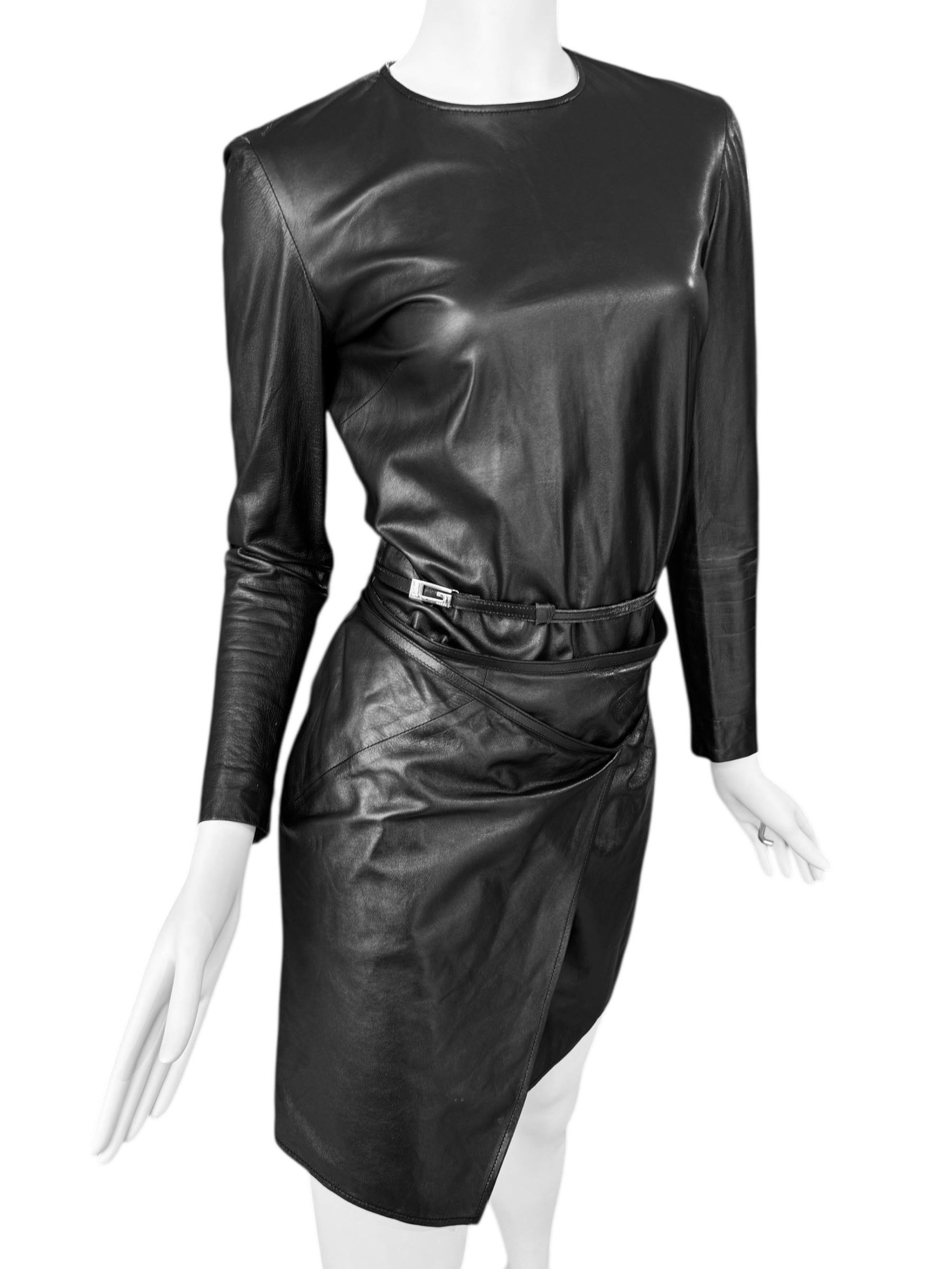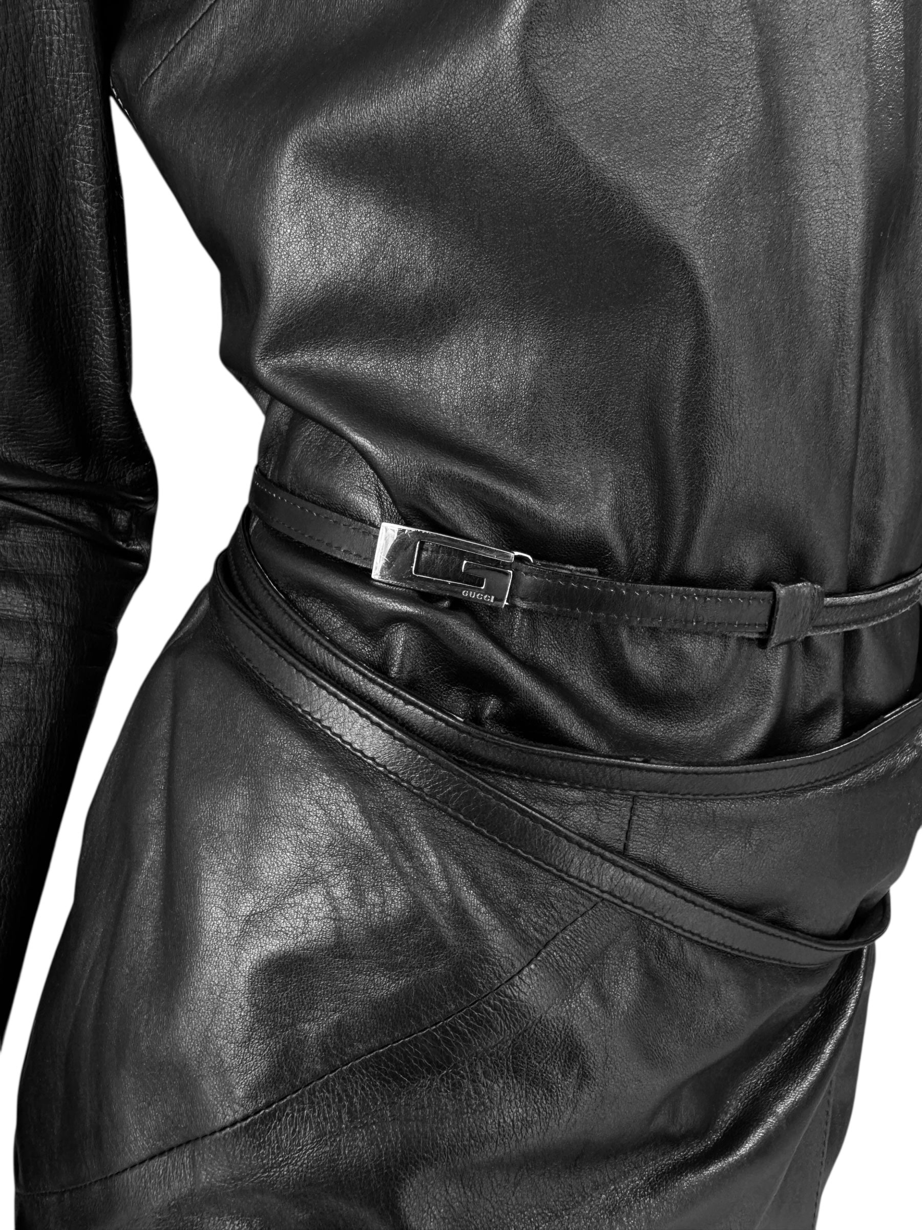 GUCCI FW1997 BY TOM FORD BLACK LEATHER WRAPPABLE MIDI DRESS
