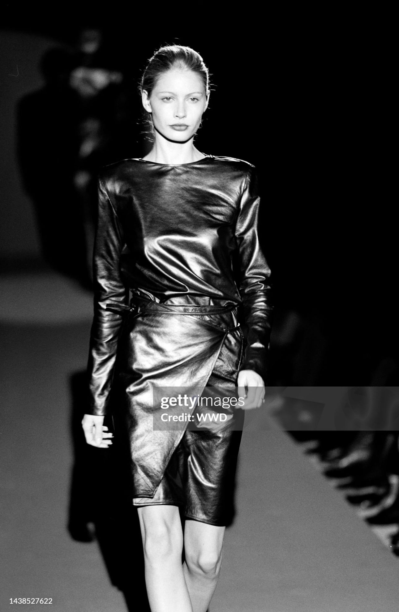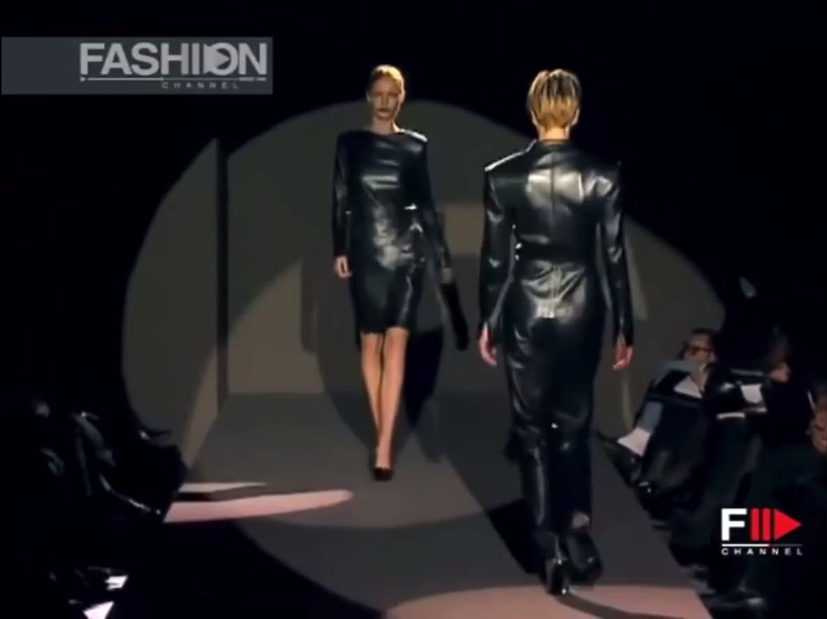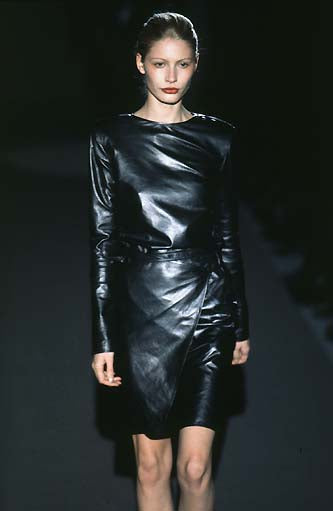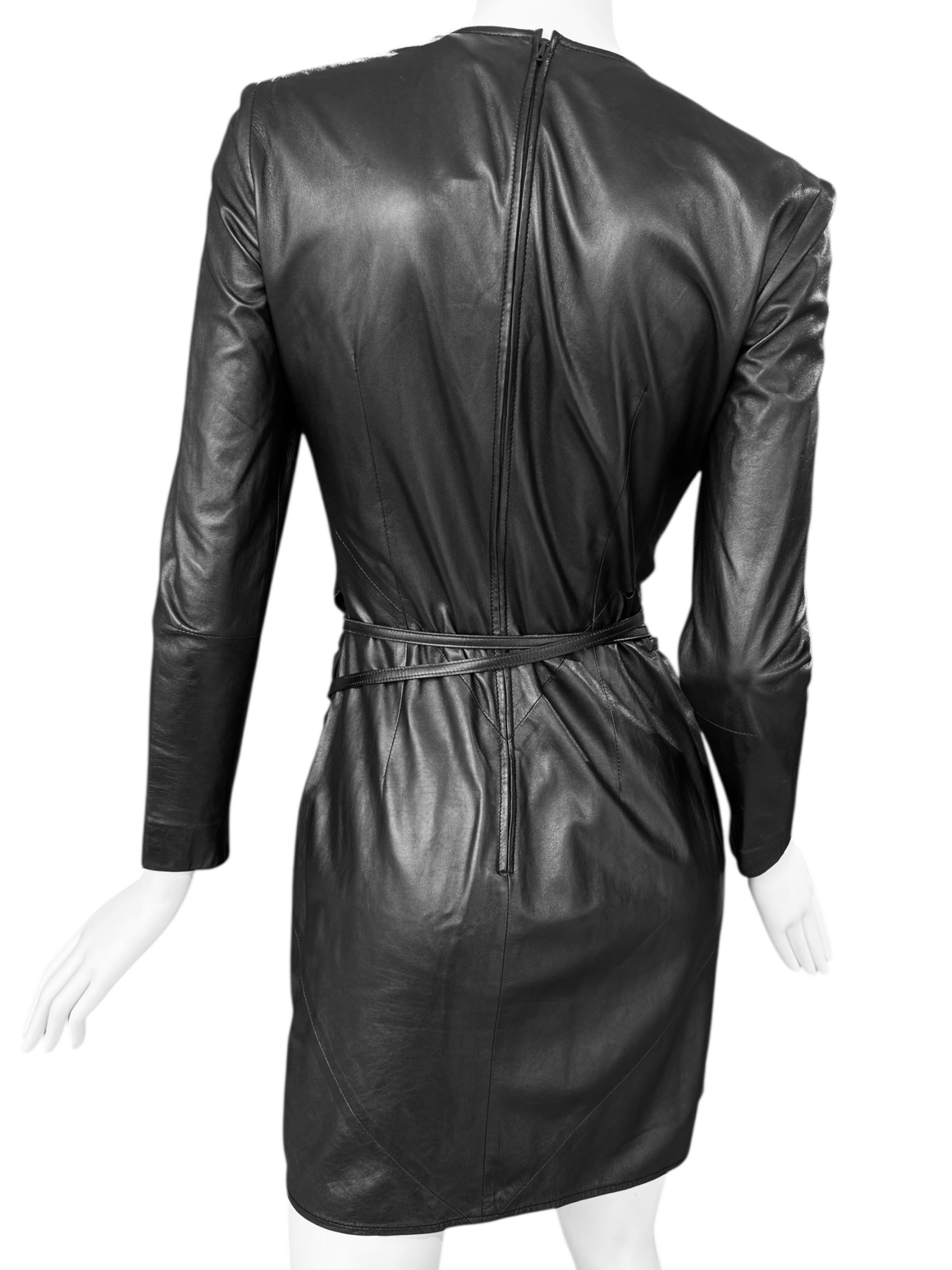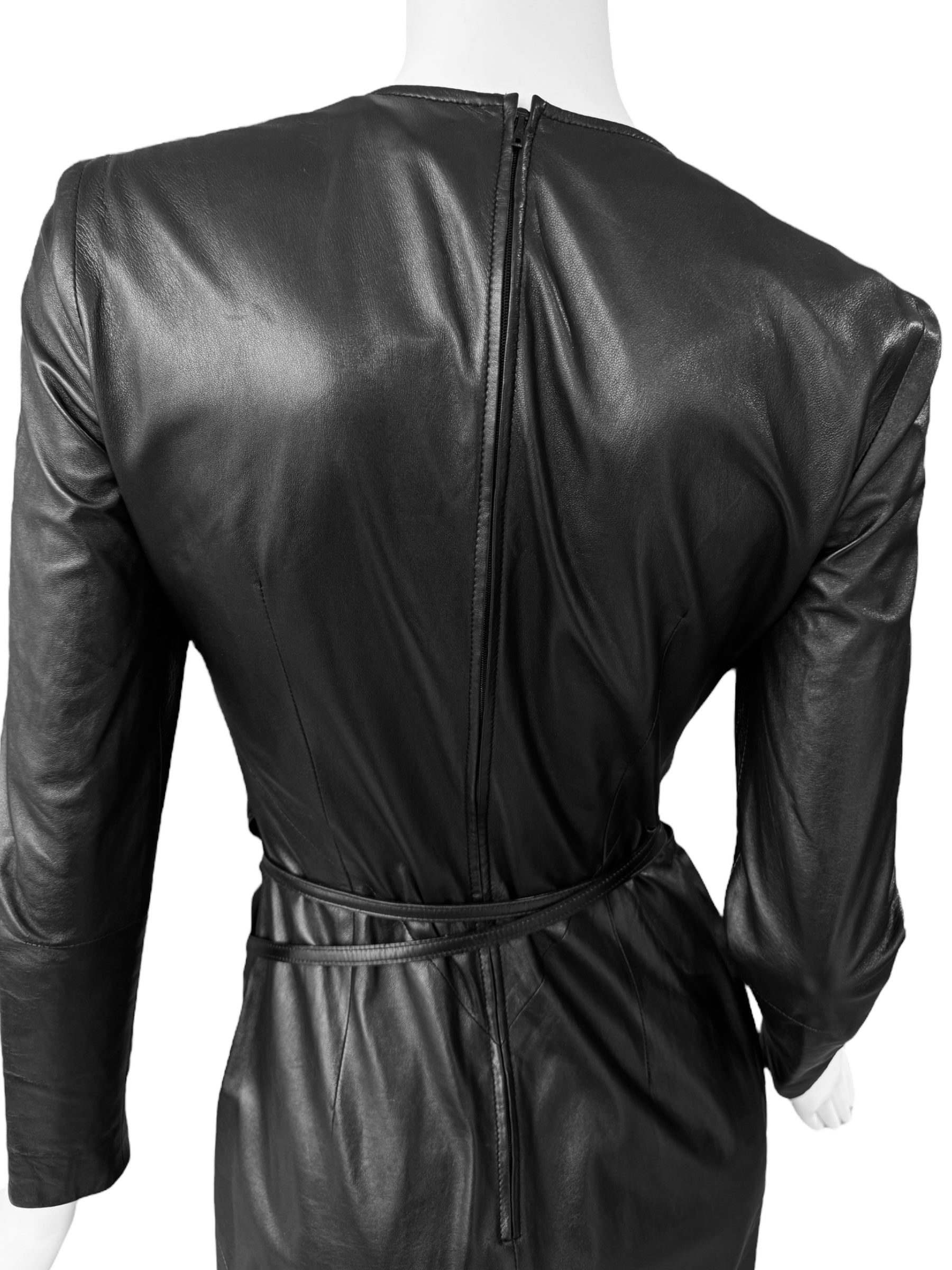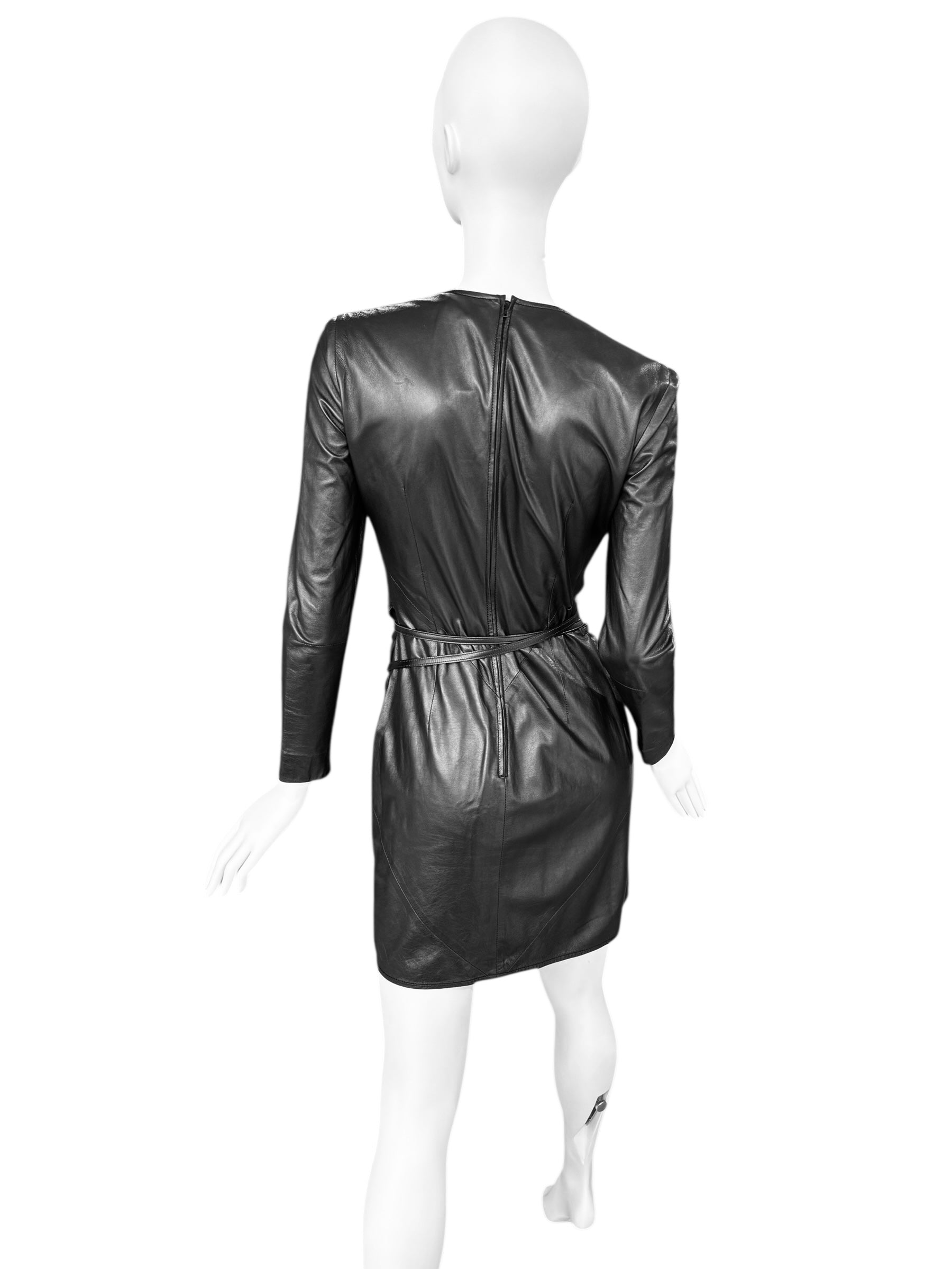 GUCCI FW1997 BY TOM FORD BLACK LEATHER WRAPPABLE MIDI DRESS