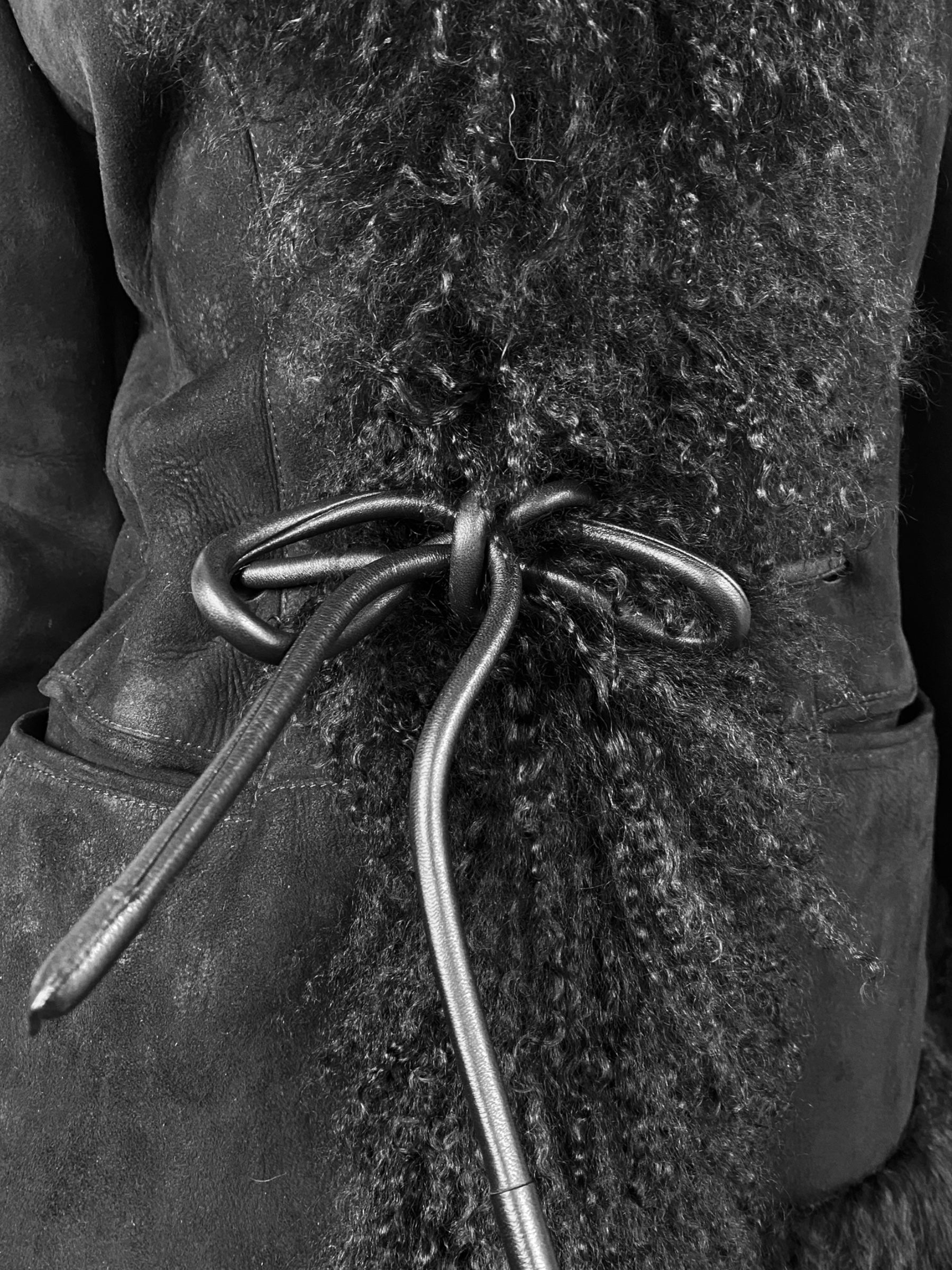 GUCCI FW1999 BY TOM FORD BLACK LEATHER & MONGOLIAN LAMB FUR TRIM JACKET