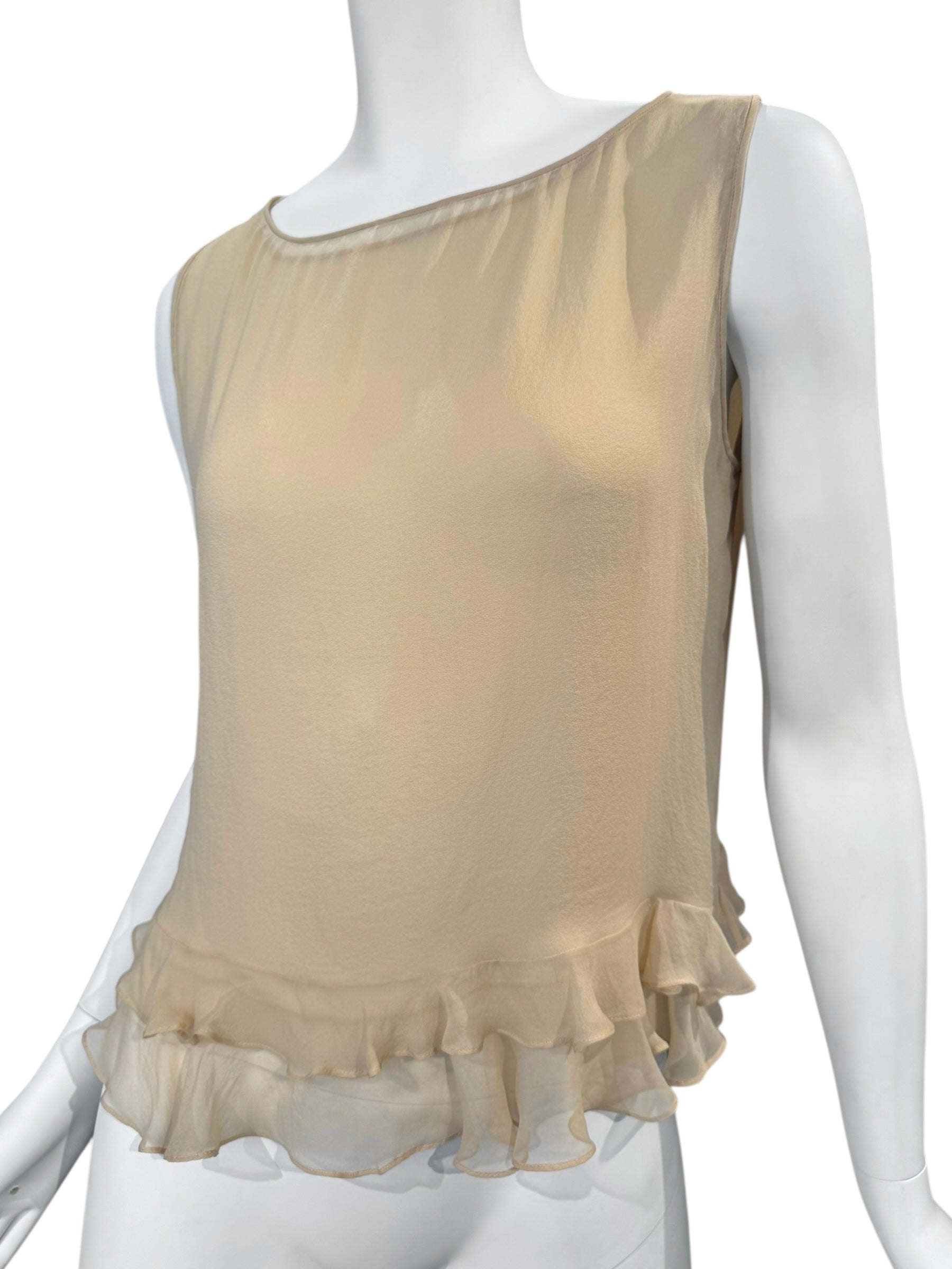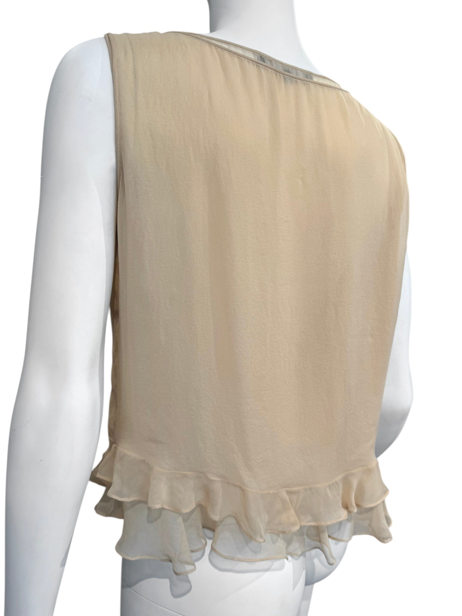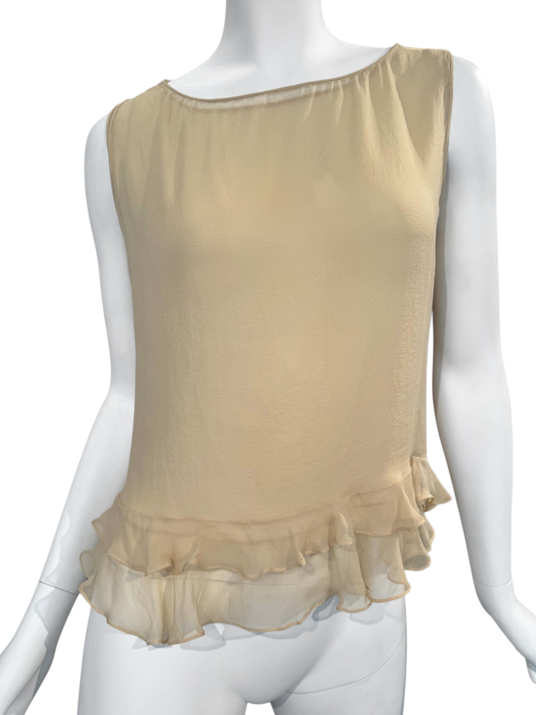 GUCCI SS1999 BY TOM FORD BEIGE SILK RUFFLES HEM TANK TOP