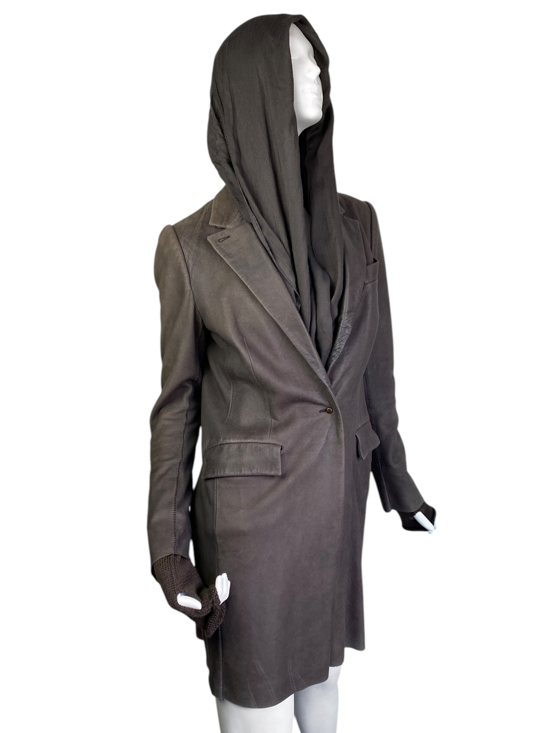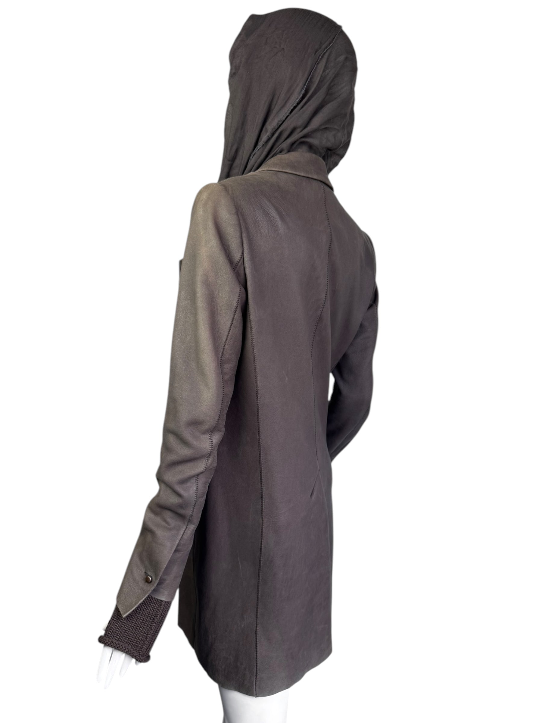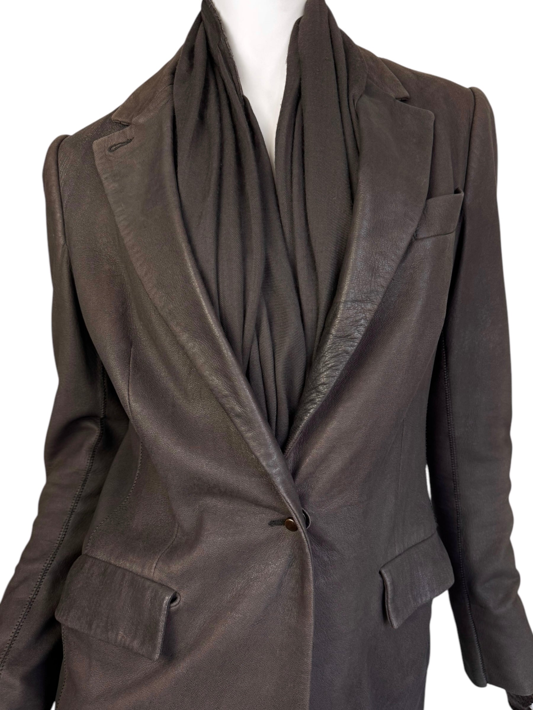ISAAC SELLAM 2010s BROWN LEATHER SCARF COAT