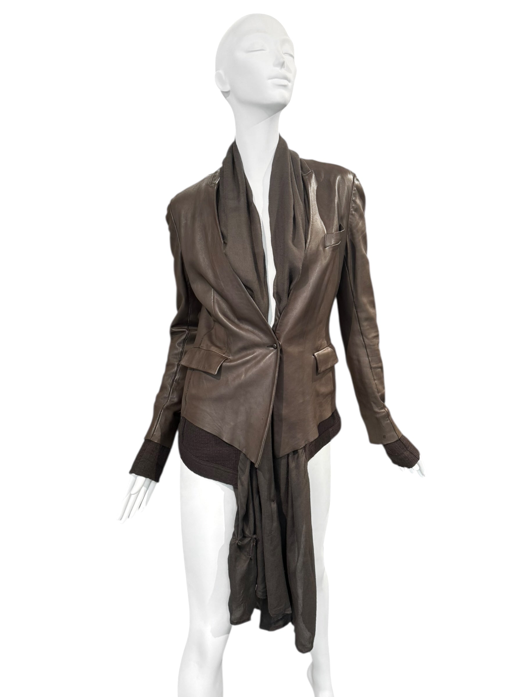 ISAAC SELLAM 2010s BROWN LEATHER SCARF JACKET