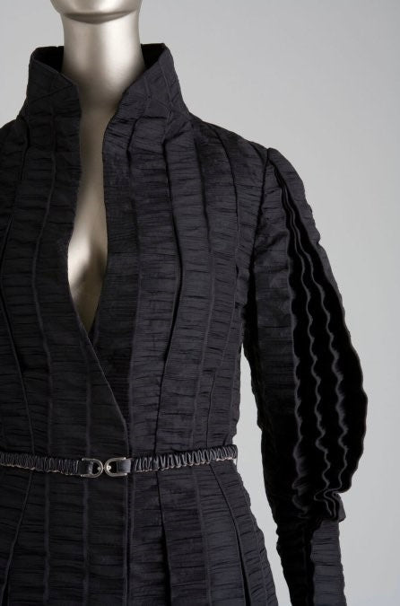 ISABEL TOLEDO FW2008 BLACK SILK TAFFETA PLEATED COAT