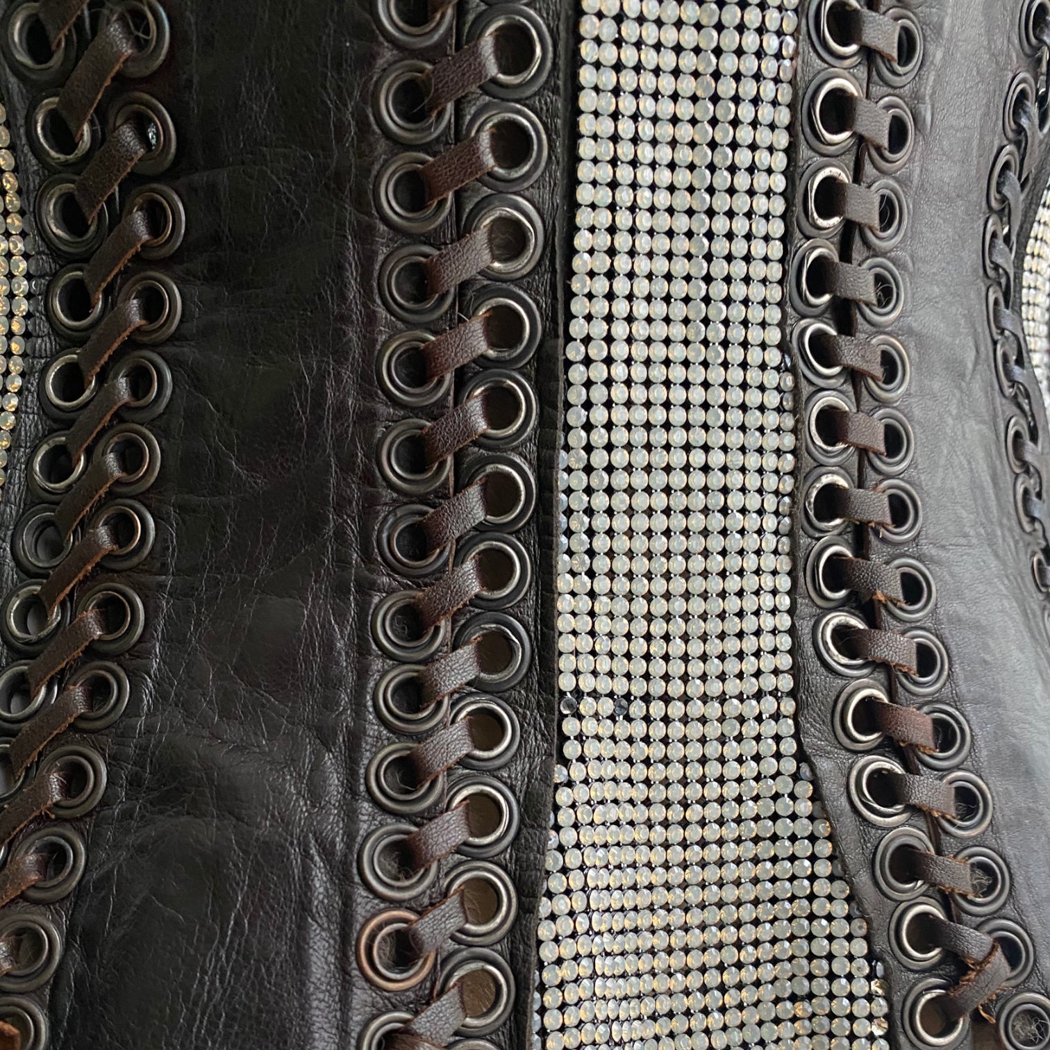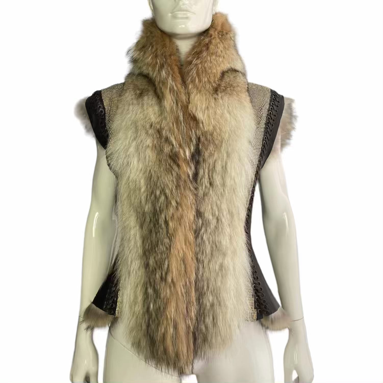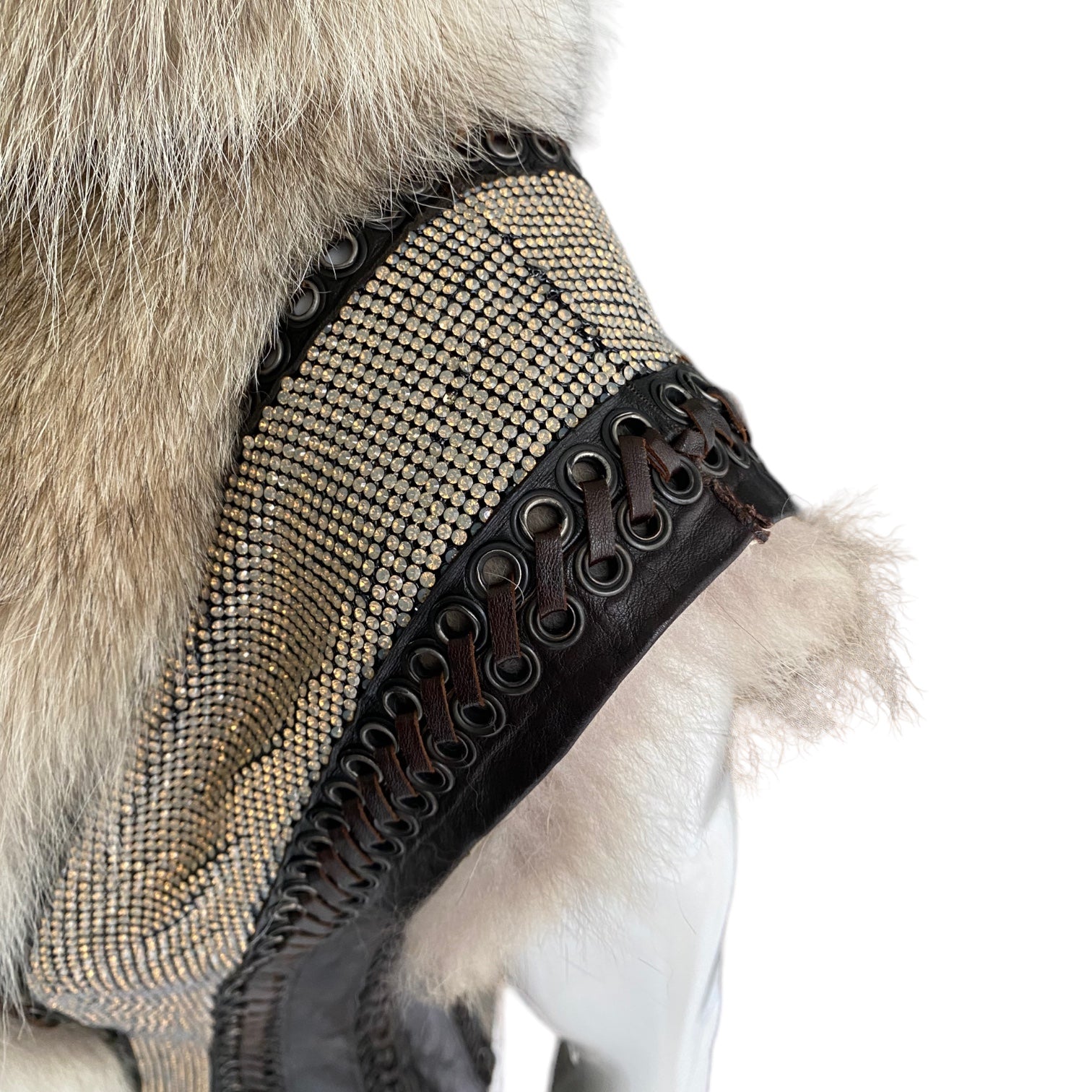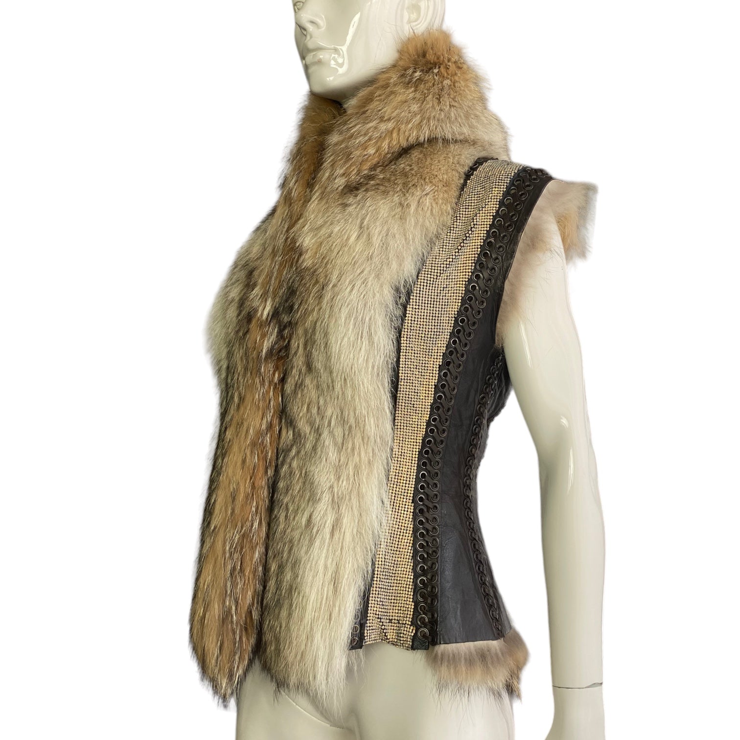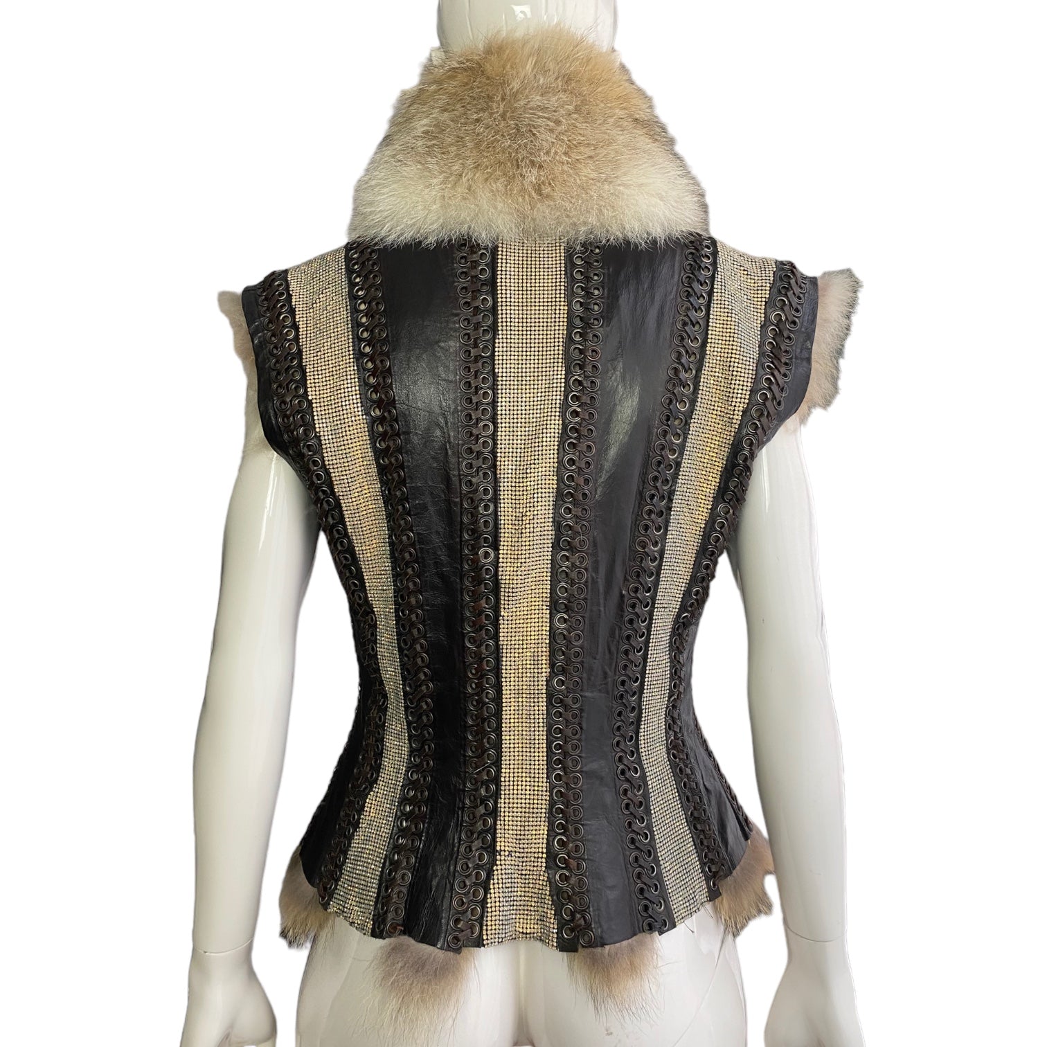 JEAN-PAUL GAULTIER FW2008 FOX FUR, LEATHER & RHINESTONES SLEEVELESS JACKET