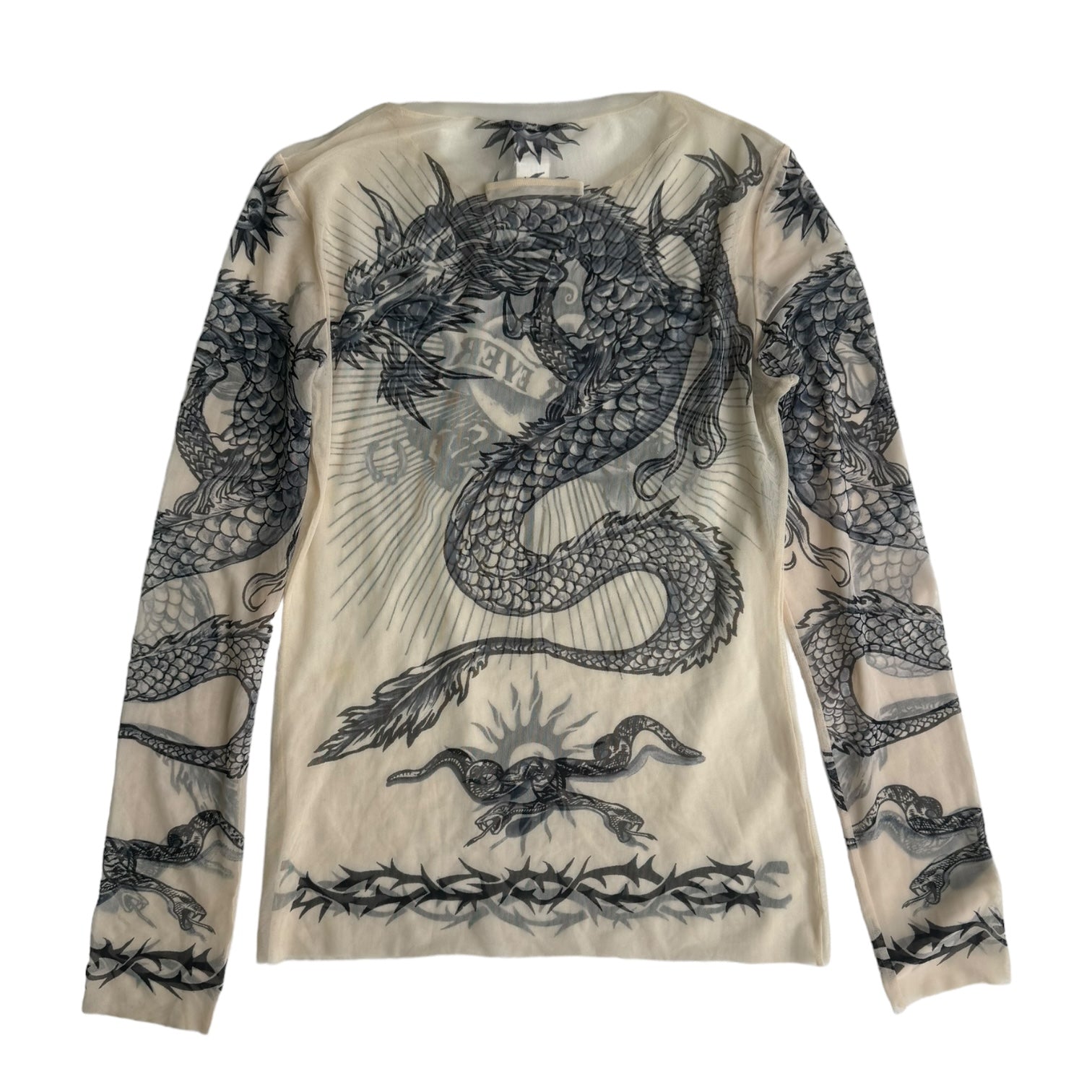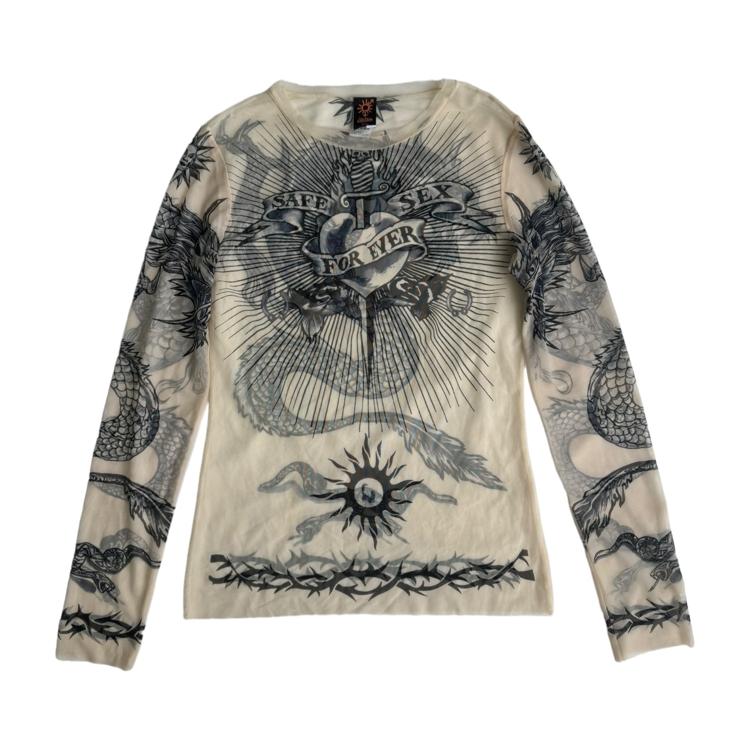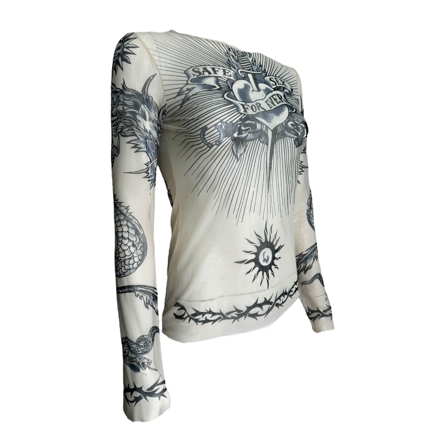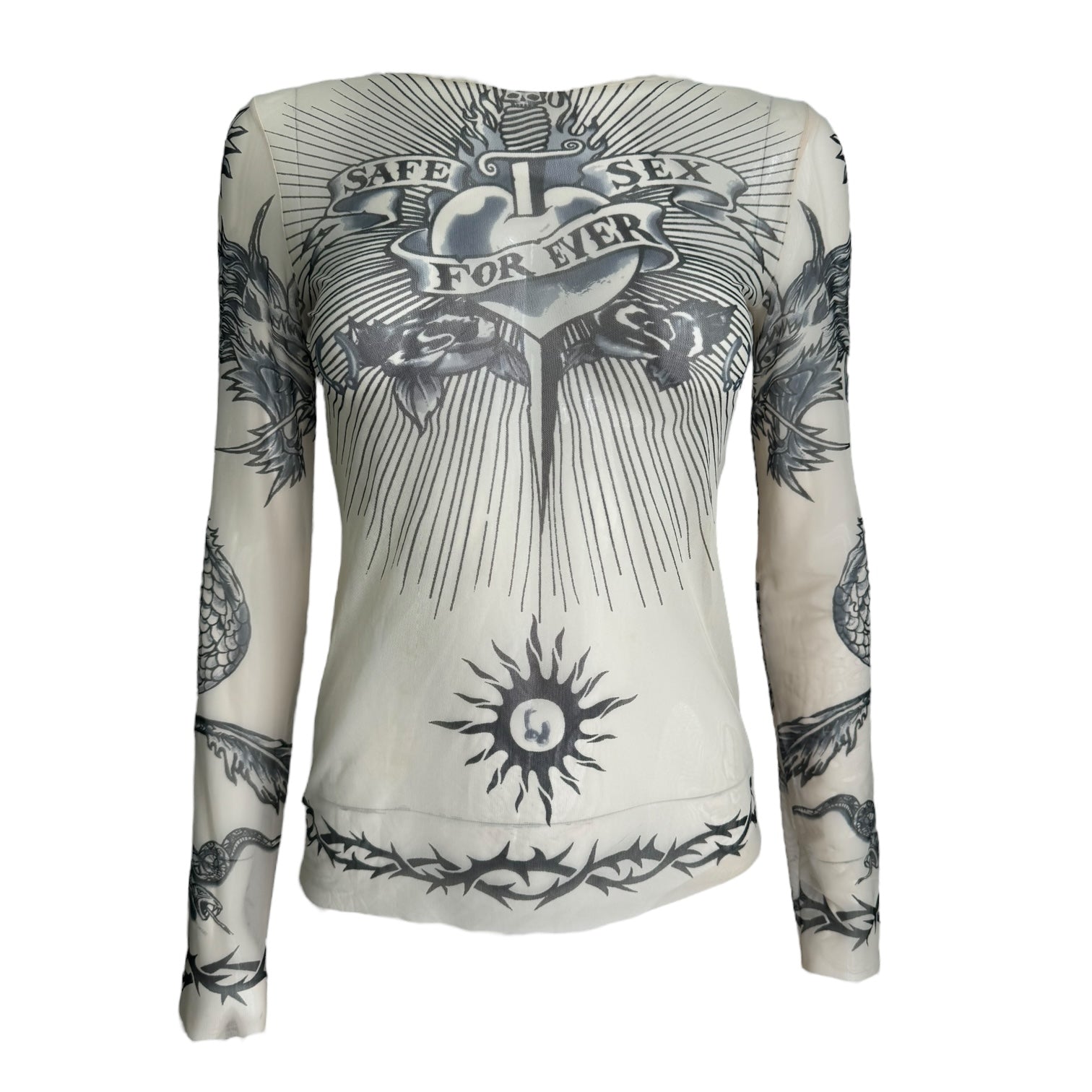 JEAN-PAUL GAULTIER SS1996 BEIGE « SAFE SEX FOREVER » MESH TOP