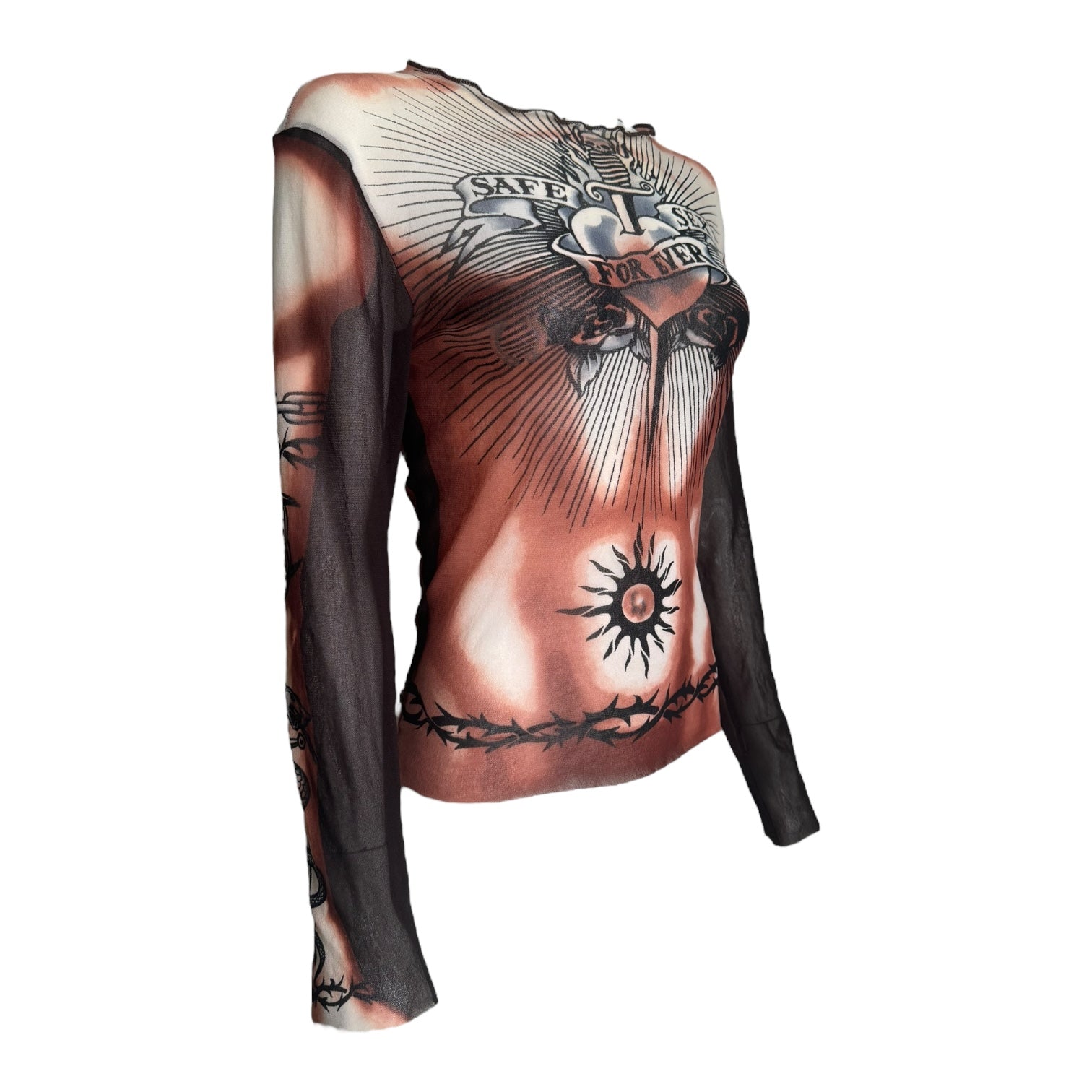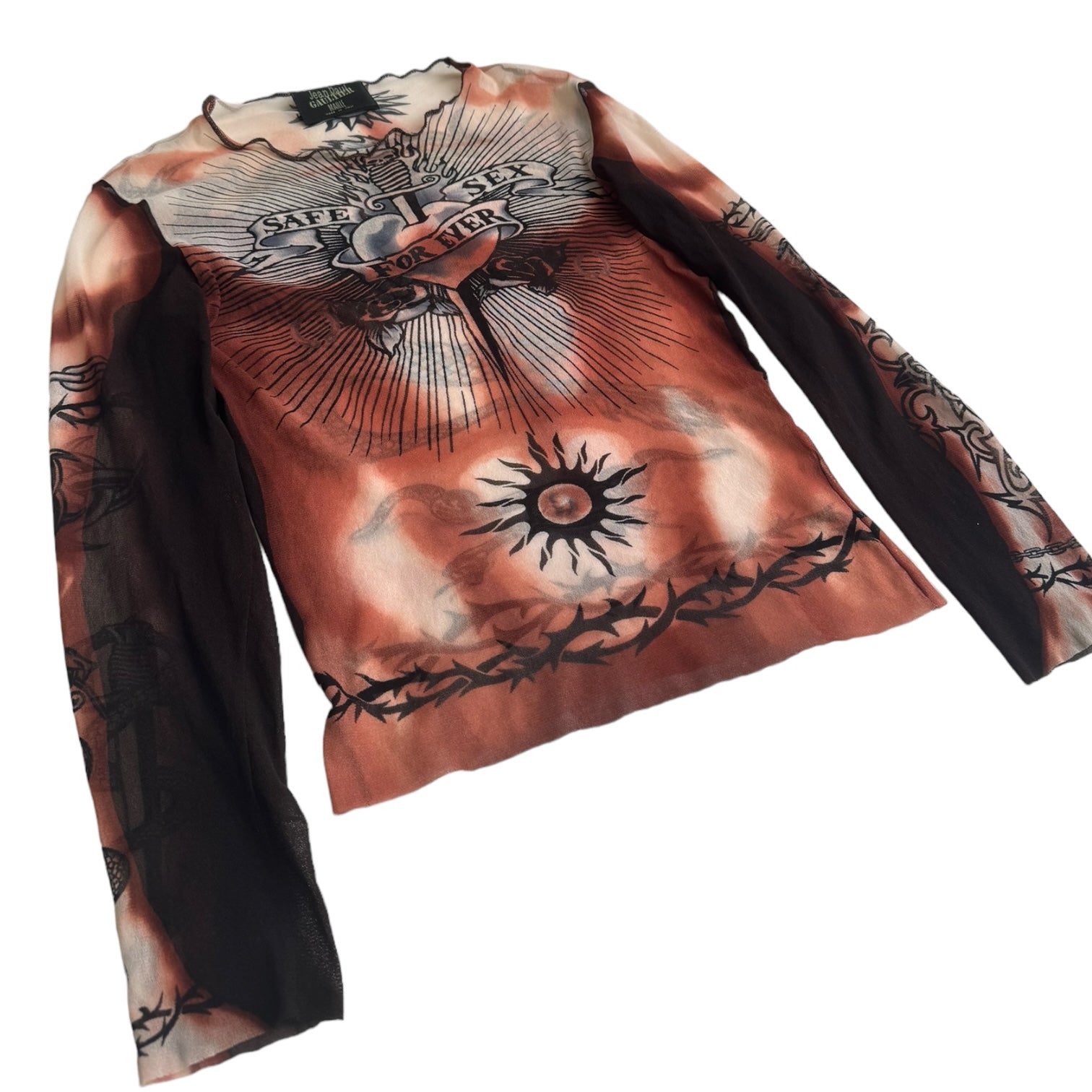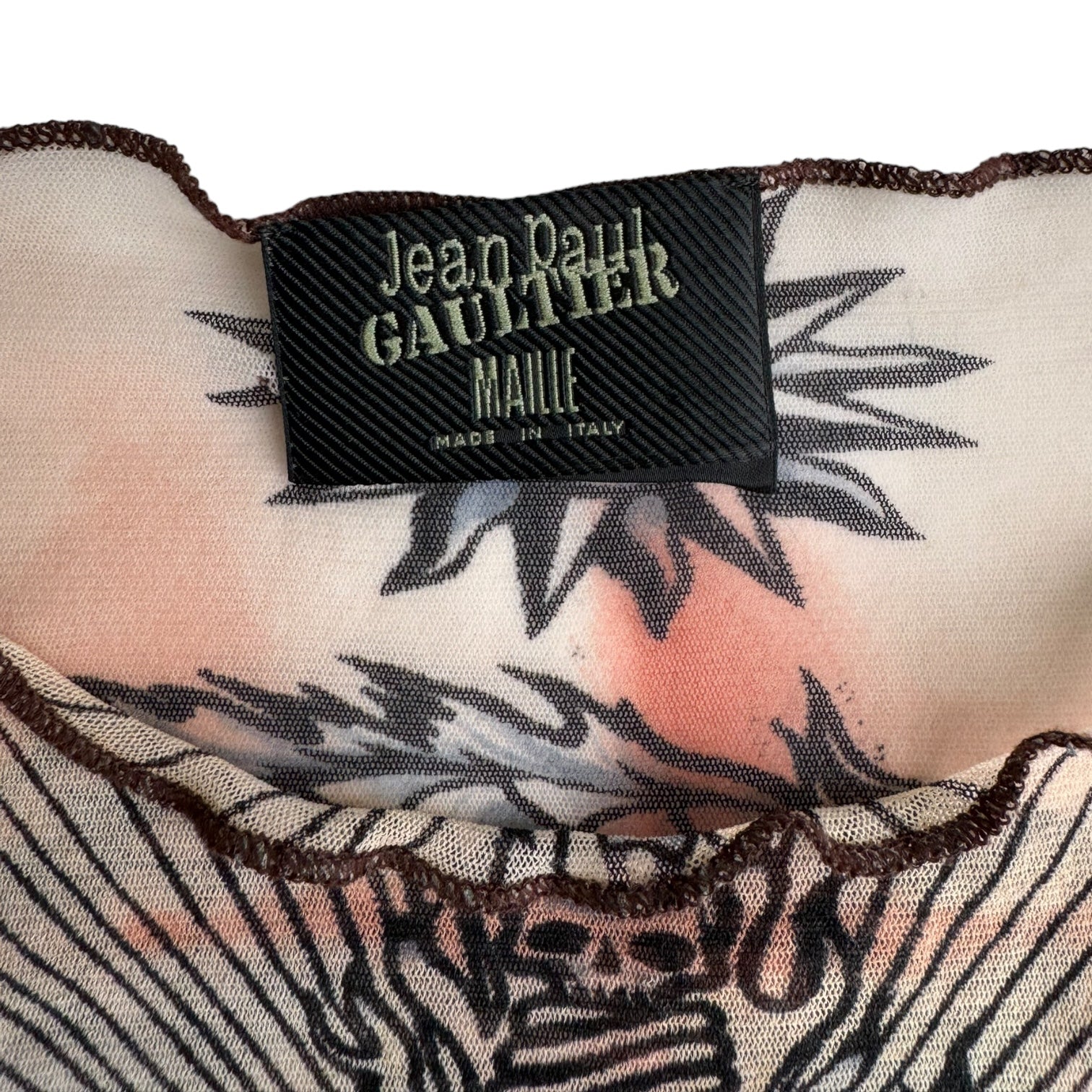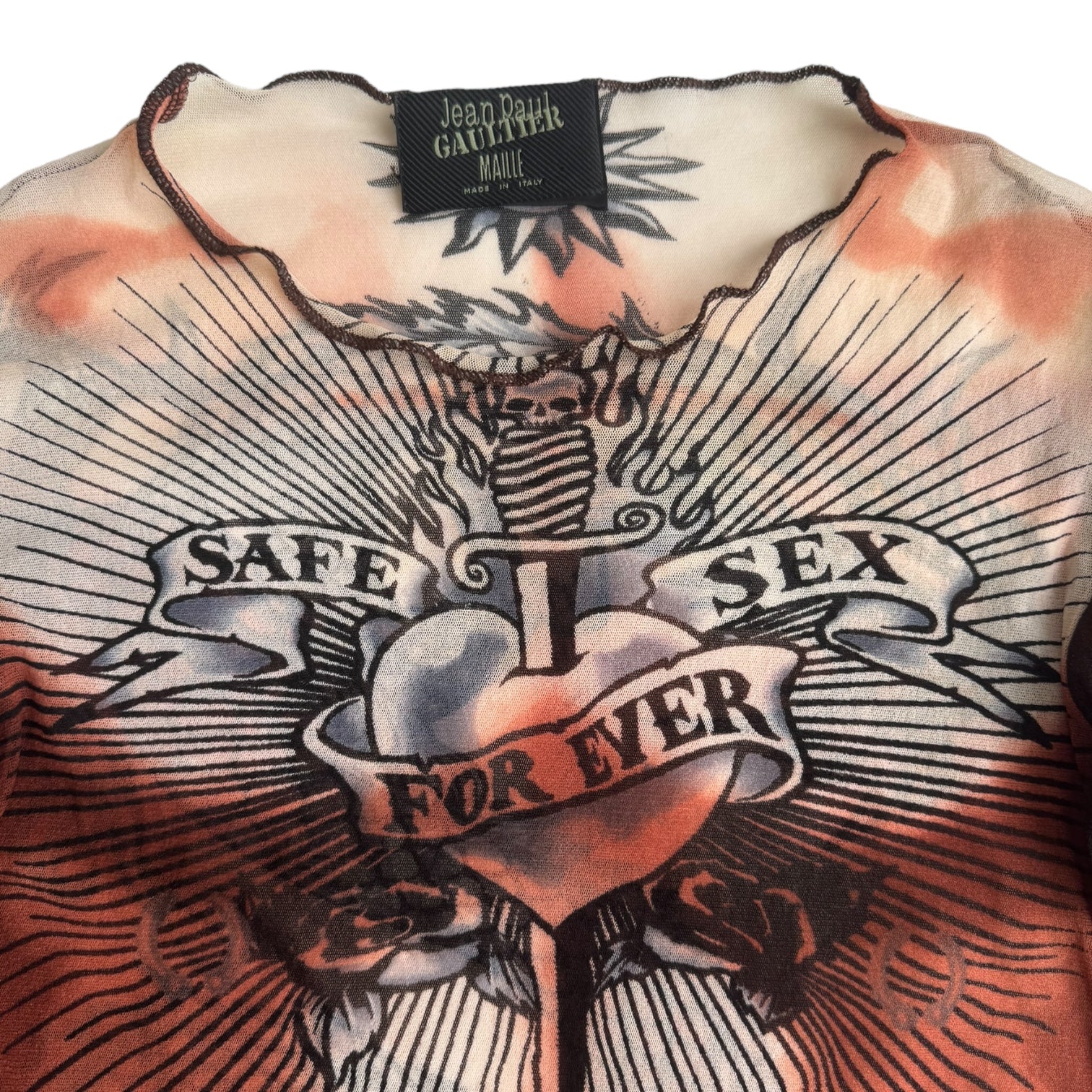 JEAN-PAUL GAULTIER SS1996 BROWN « SAFE SEX FOREVER » MESH TOP