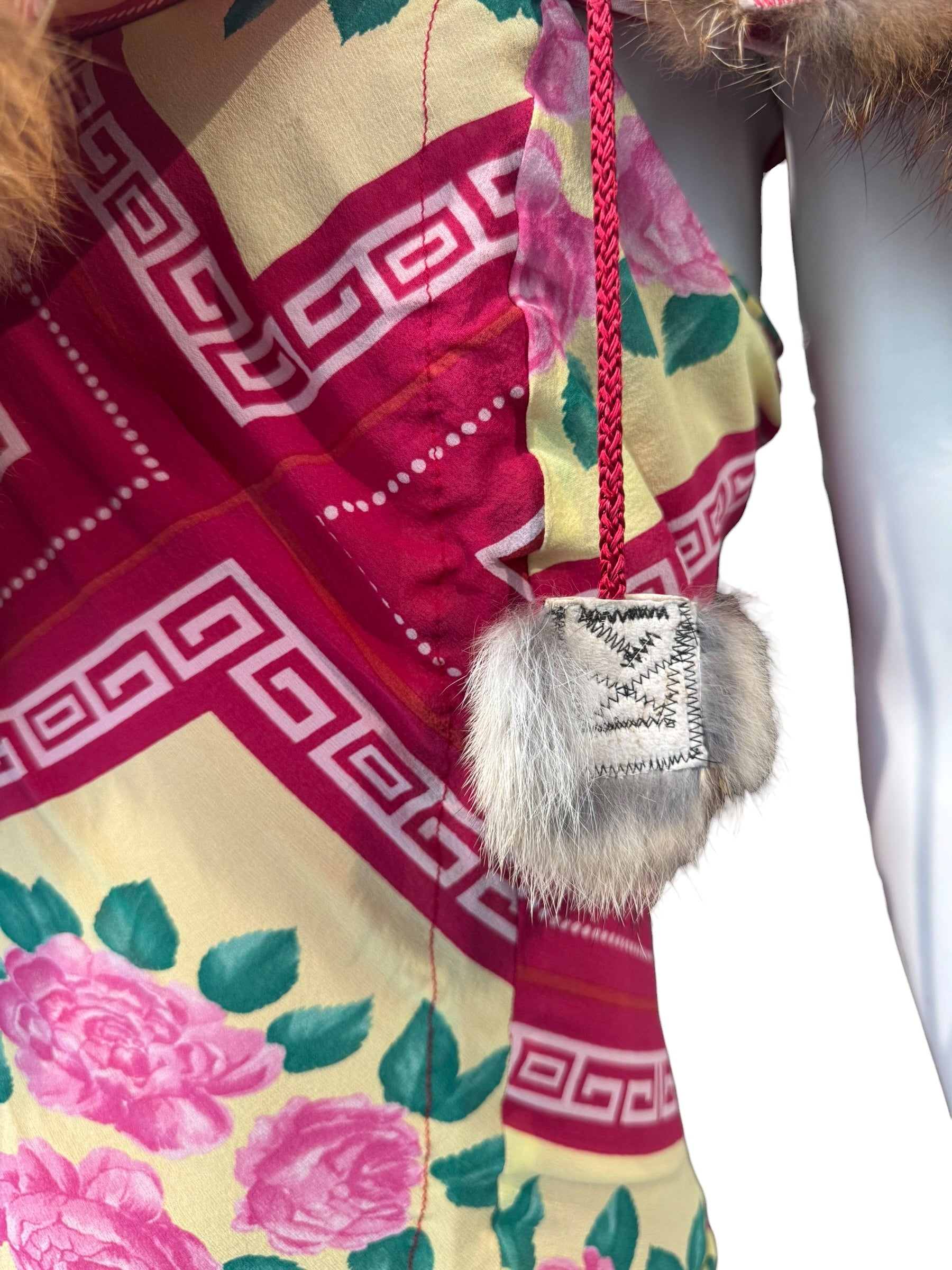 COMPOSITION : 100% SILK ; 100% COYOTE FUR ; 100% RABBIT FUR ; LINING 100% SILK