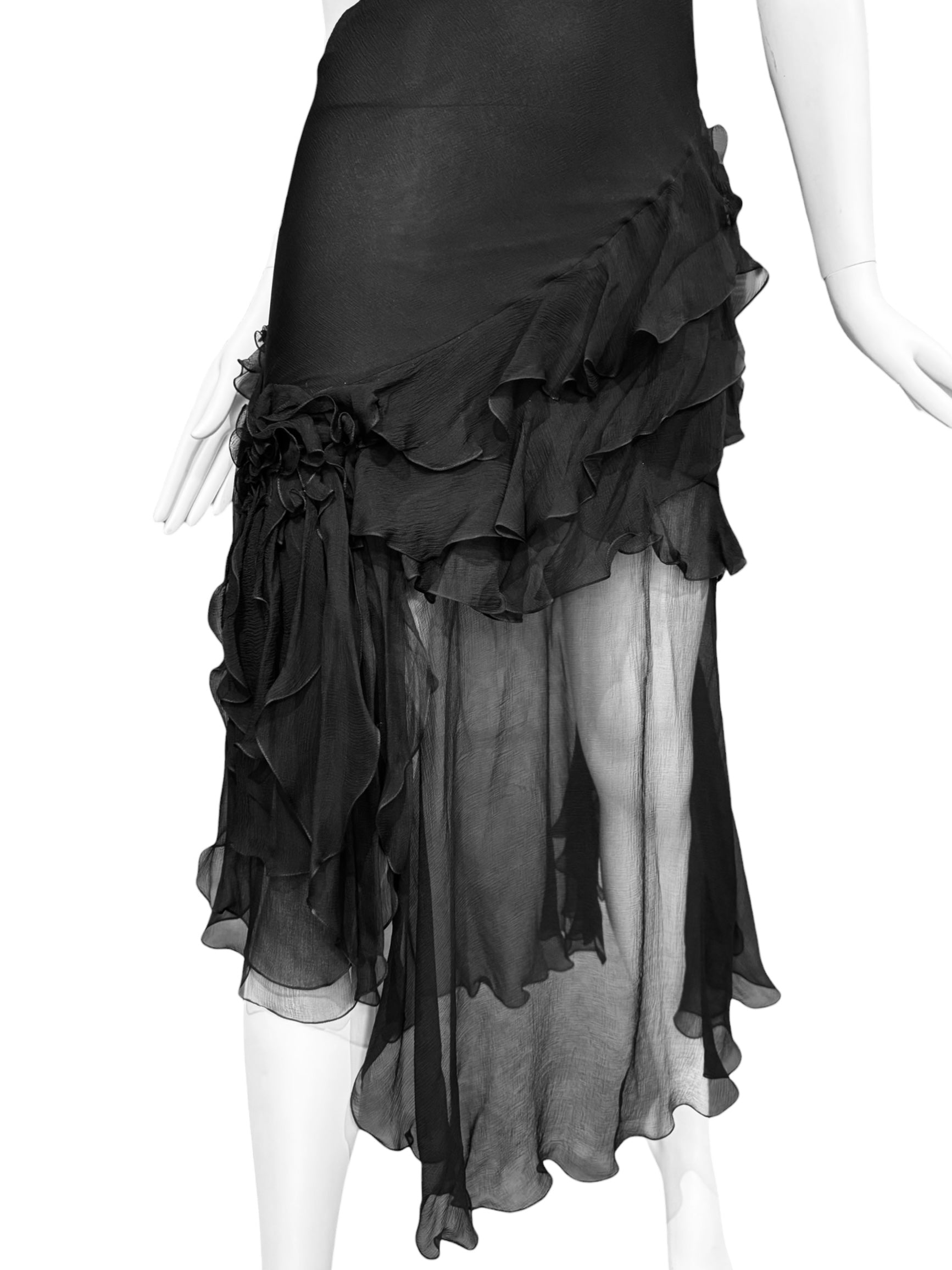 JOHN GALLIANO FW2004 BLACK SILK RUFFLES MAXI DRESS