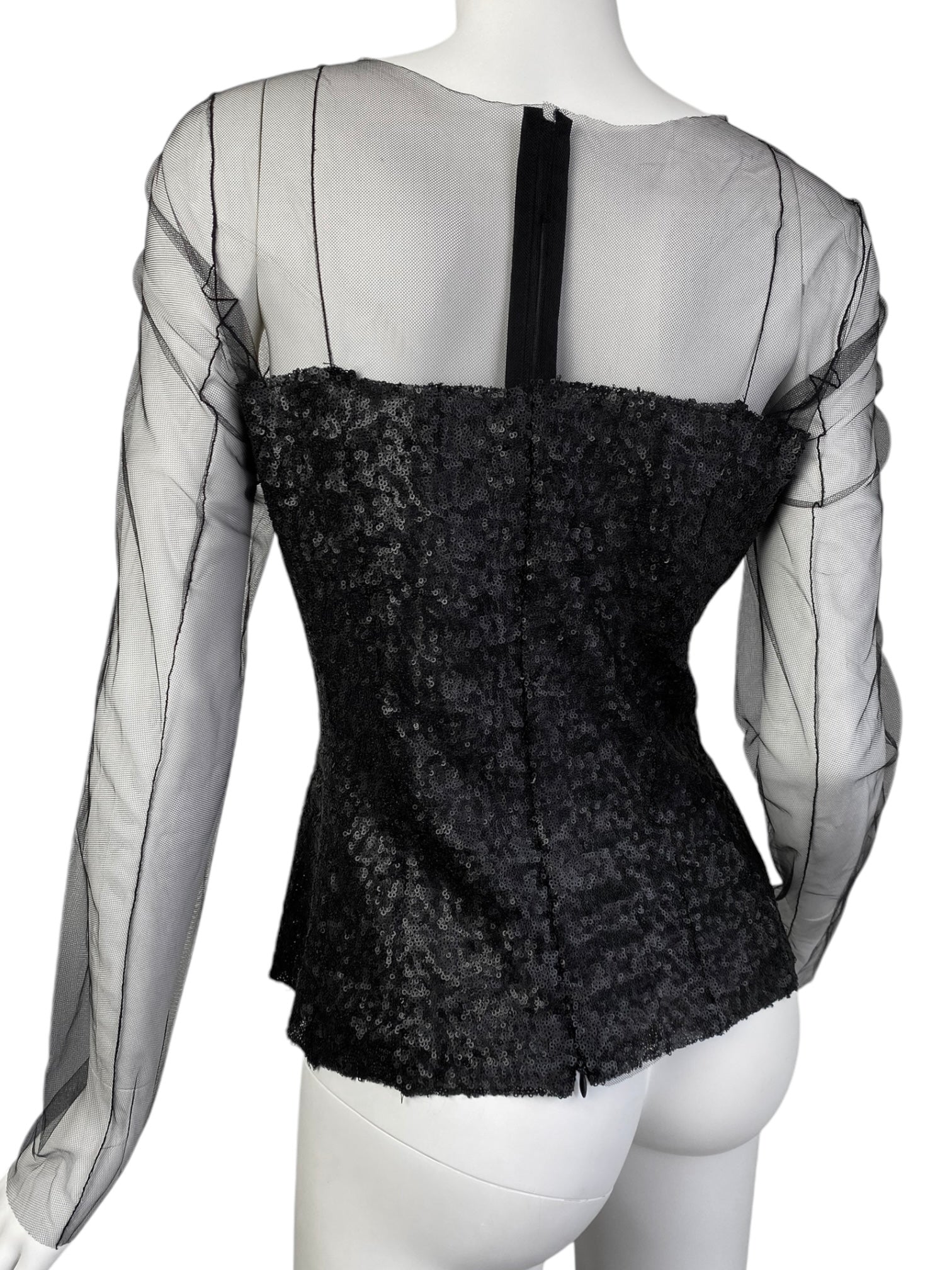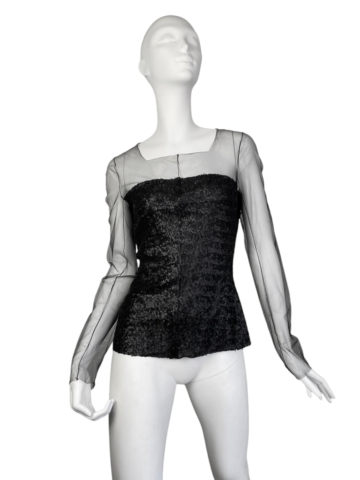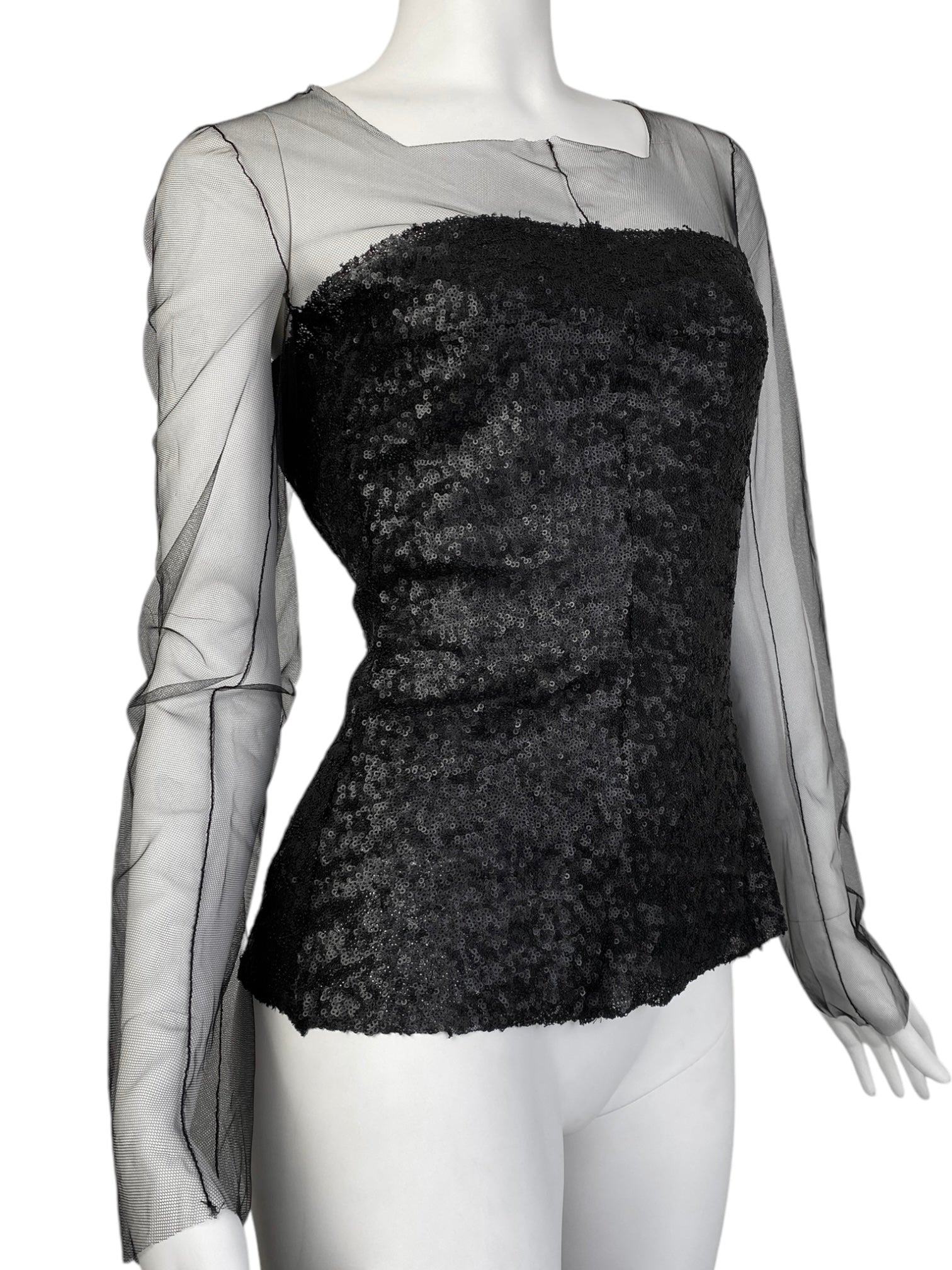 MARC LE BIHAN 2020s BLACK TULLE & SEQUINS TOP