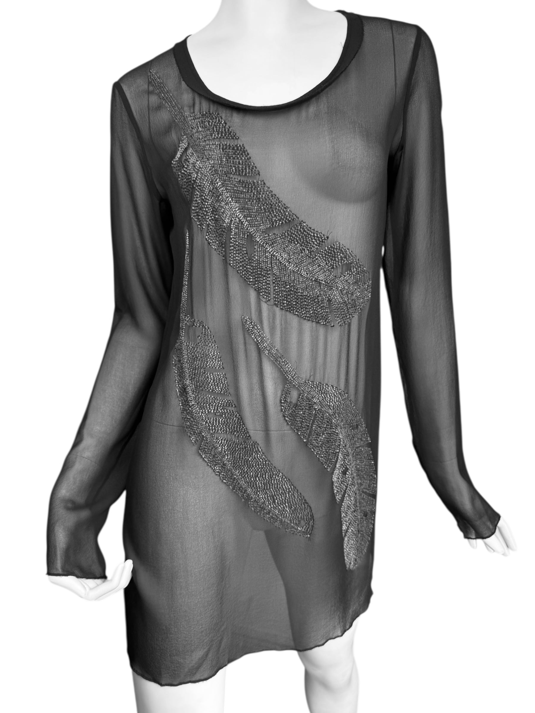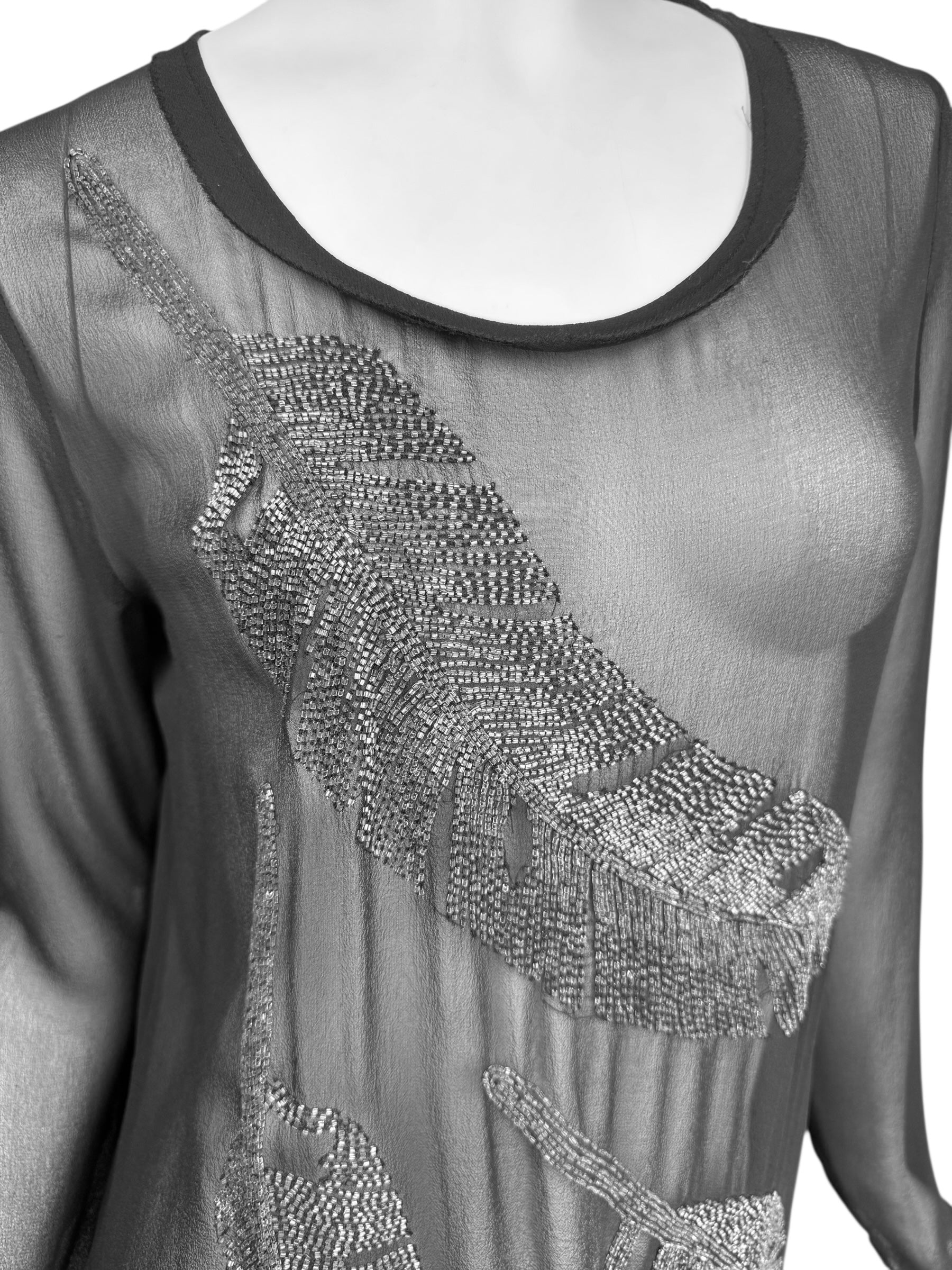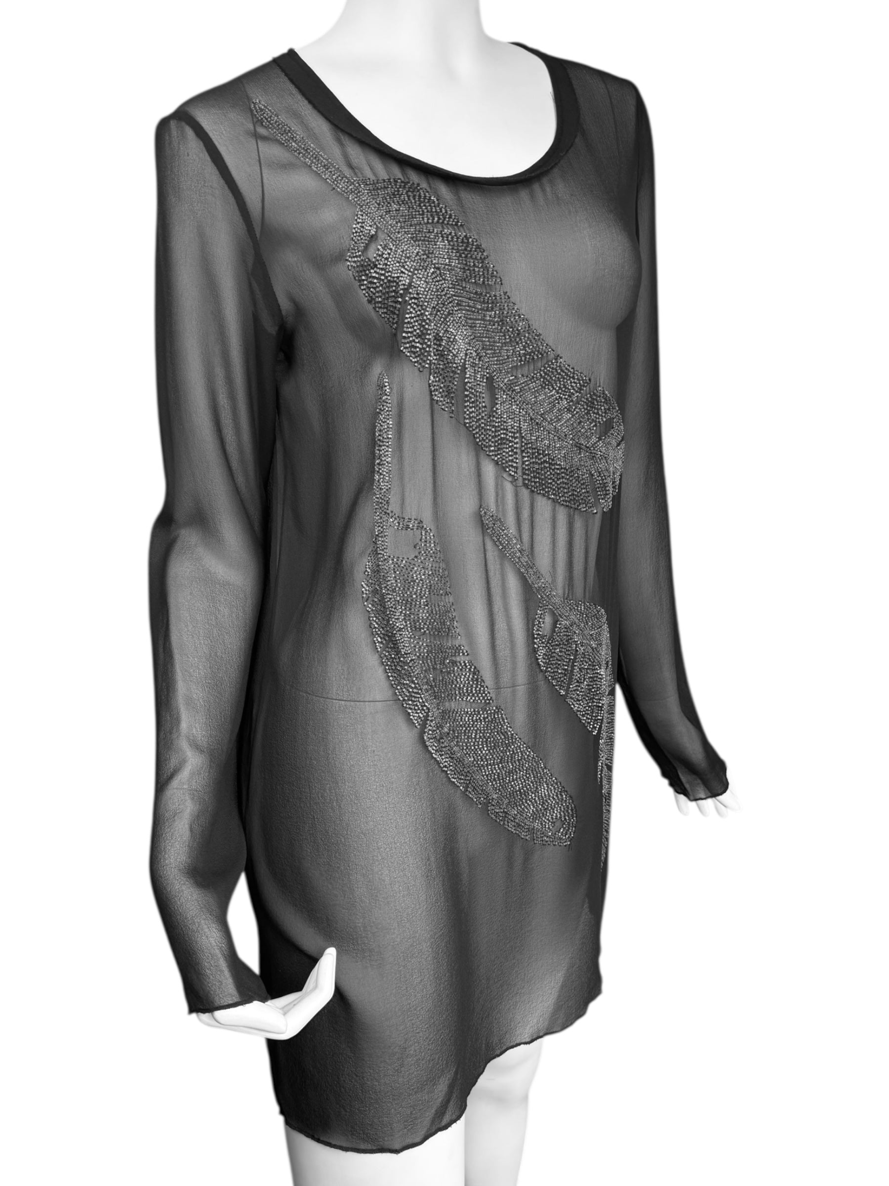 PEACHOO + KREJBERG 2010s BLACK SILK BEADED FEATHERS MINI DRESS