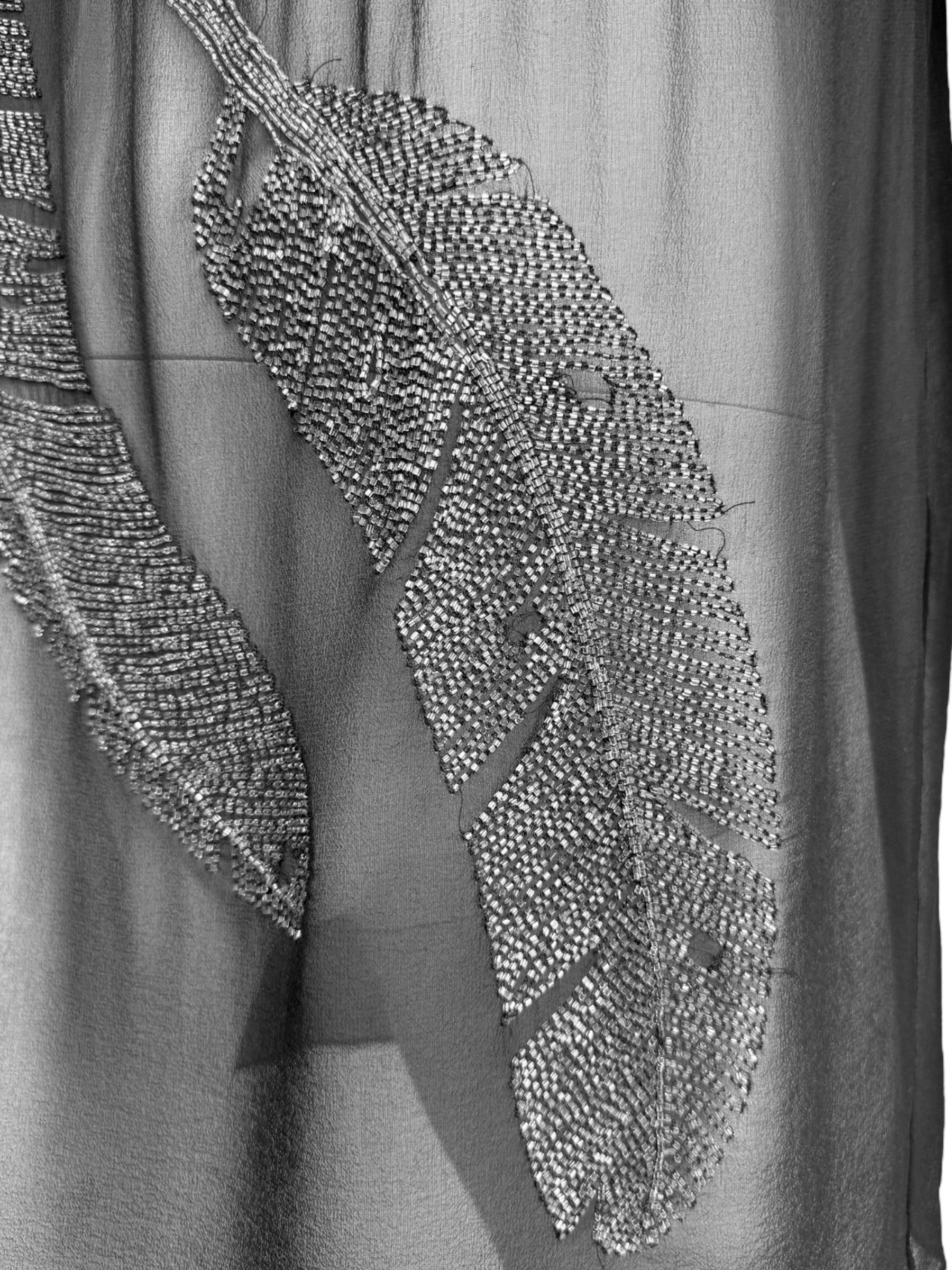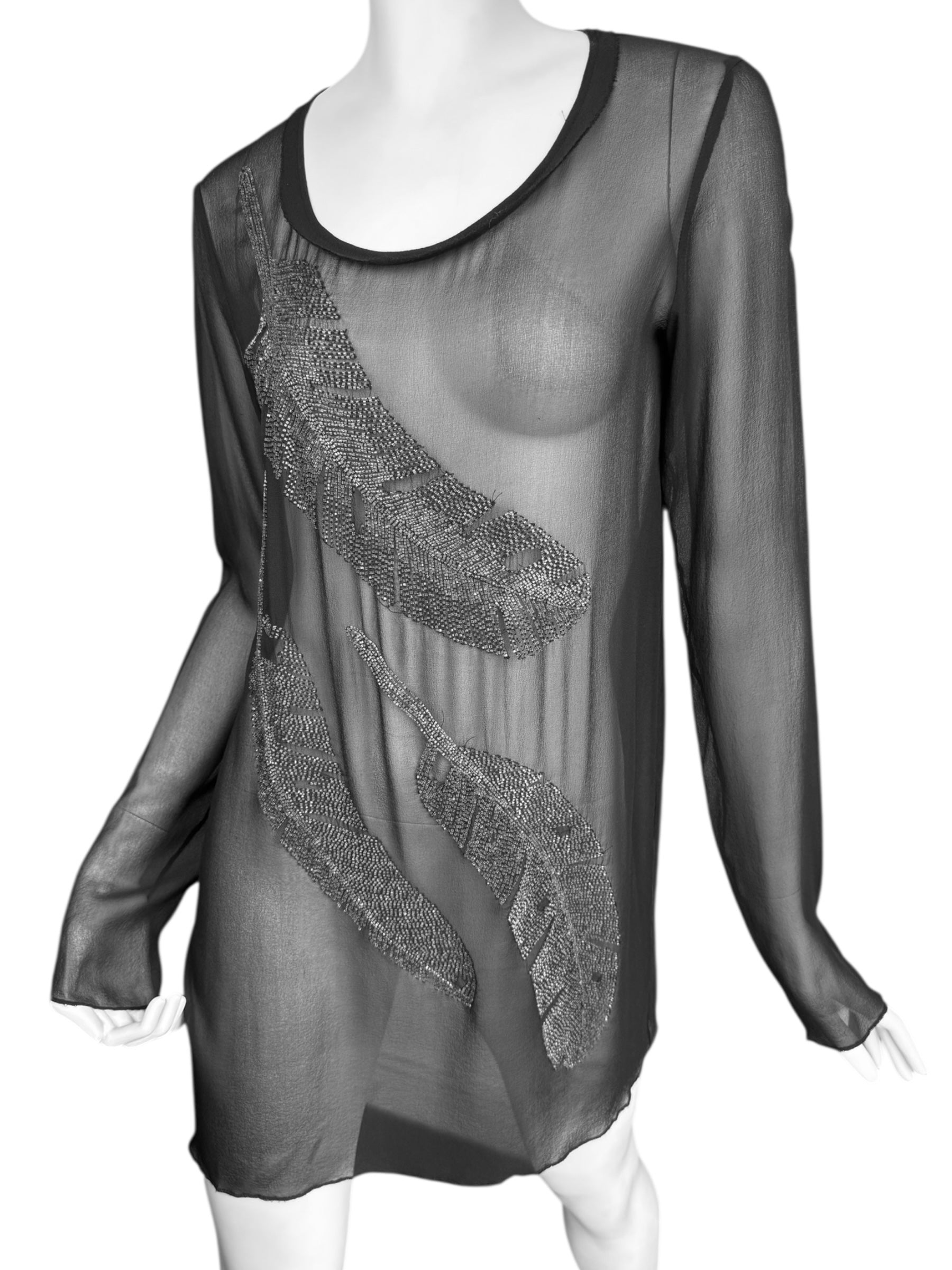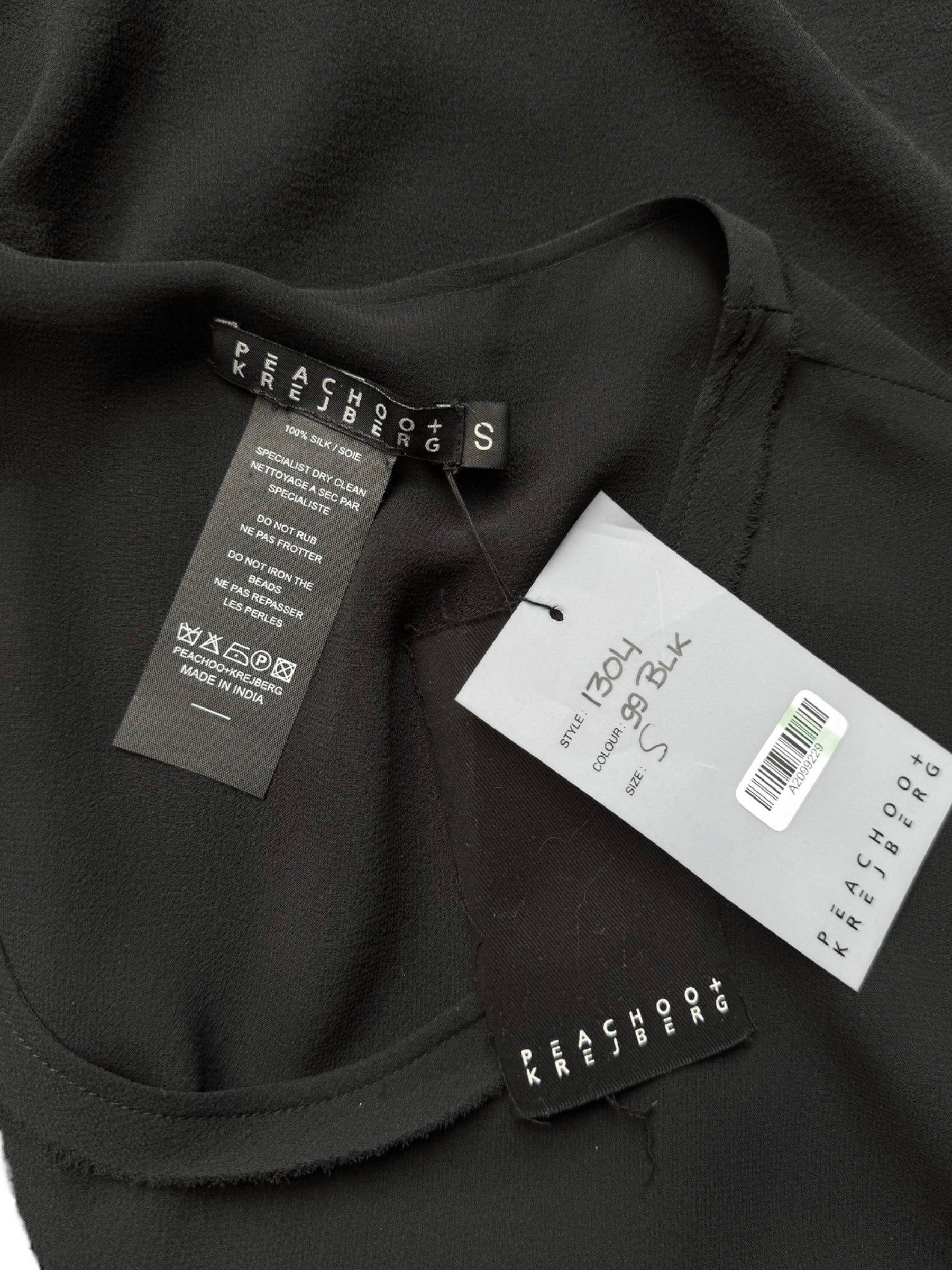 PEACHOO + KREJBERG 2010s BLACK SILK BEADED FEATHERS MINI DRESS