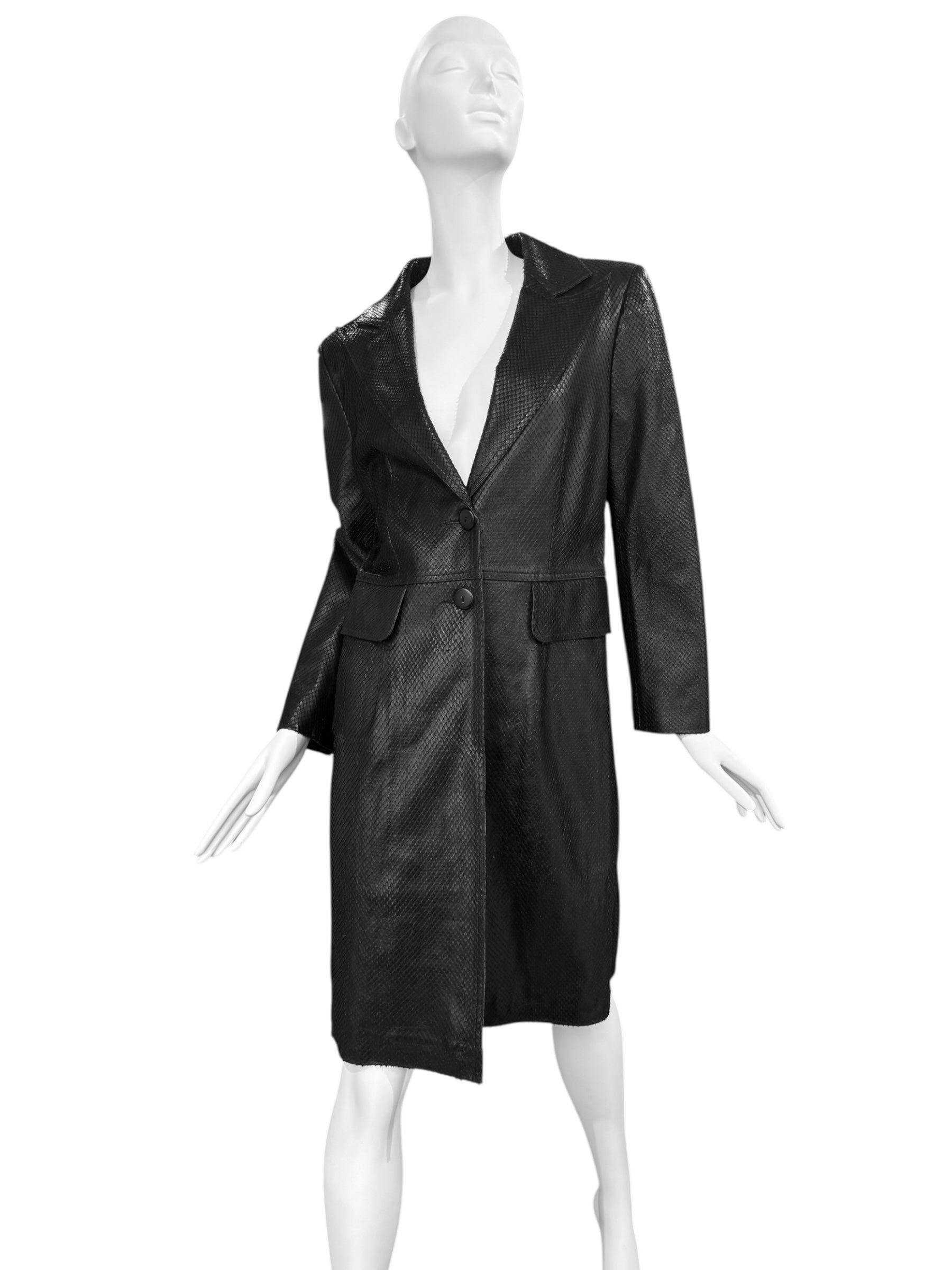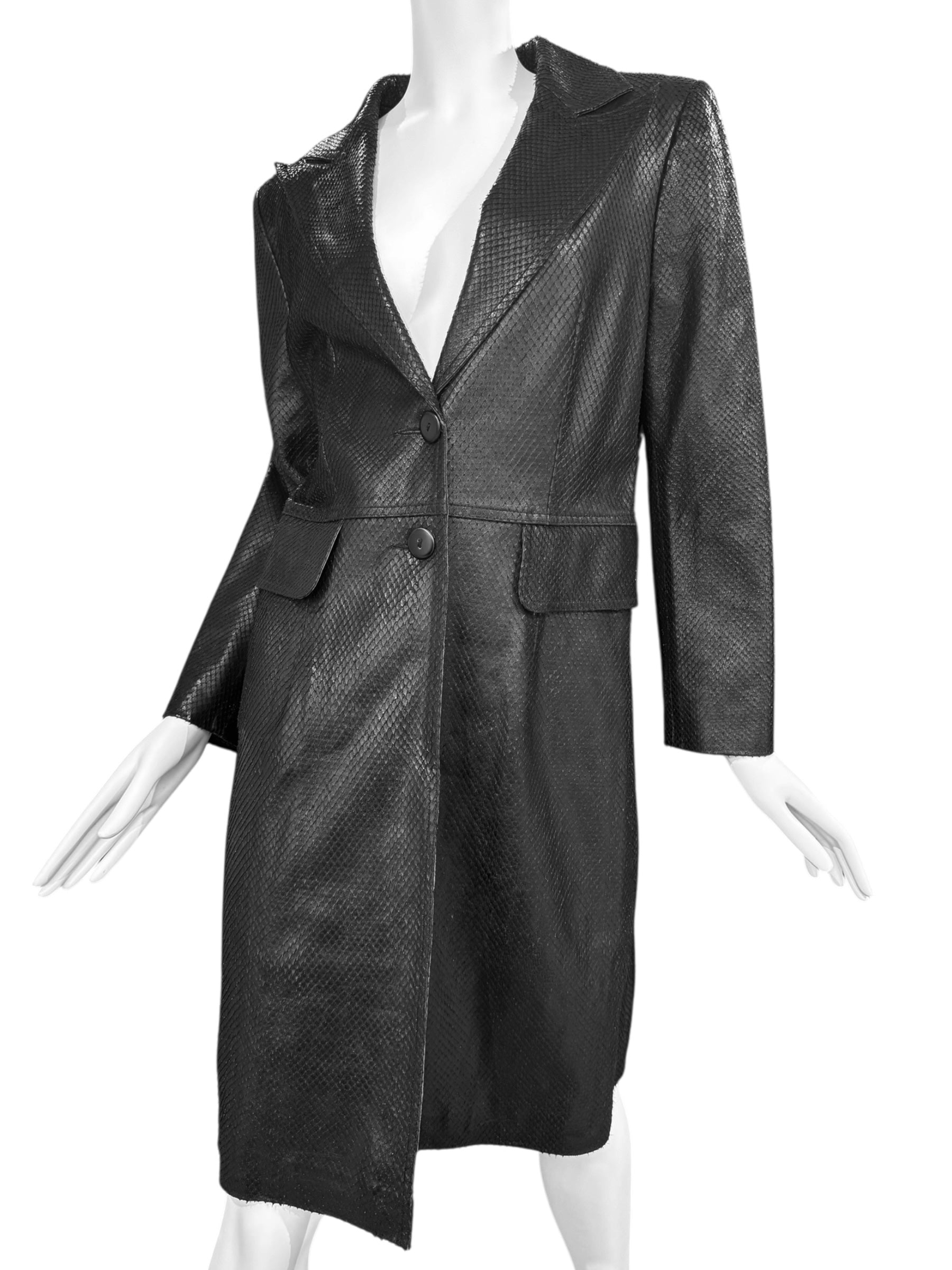 PLEIN SUD 1990s BLACK SNAKESKIN COAT