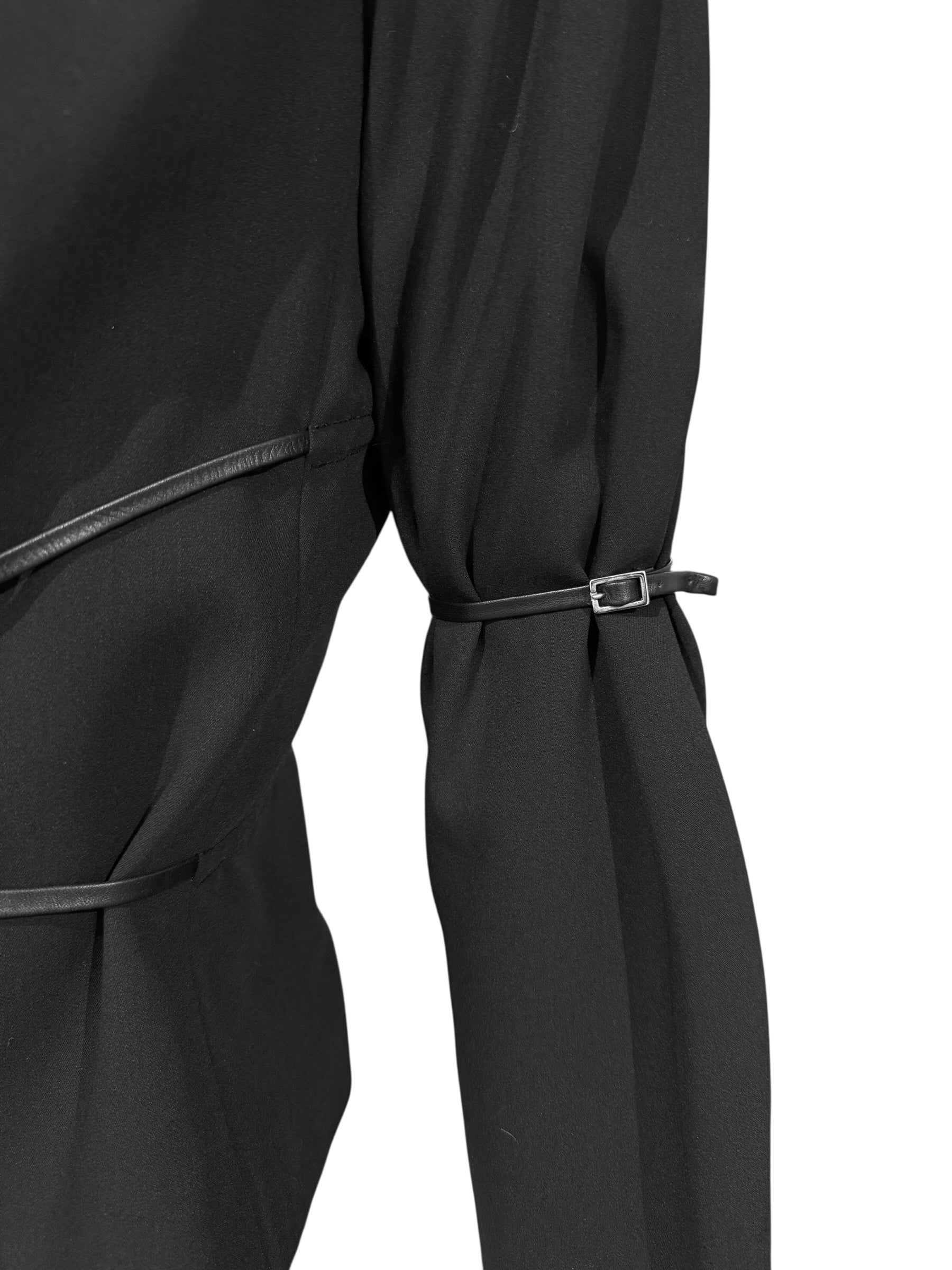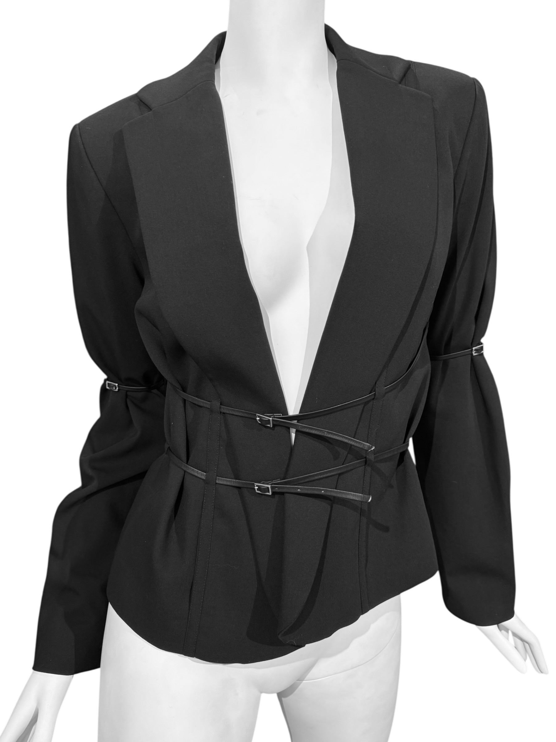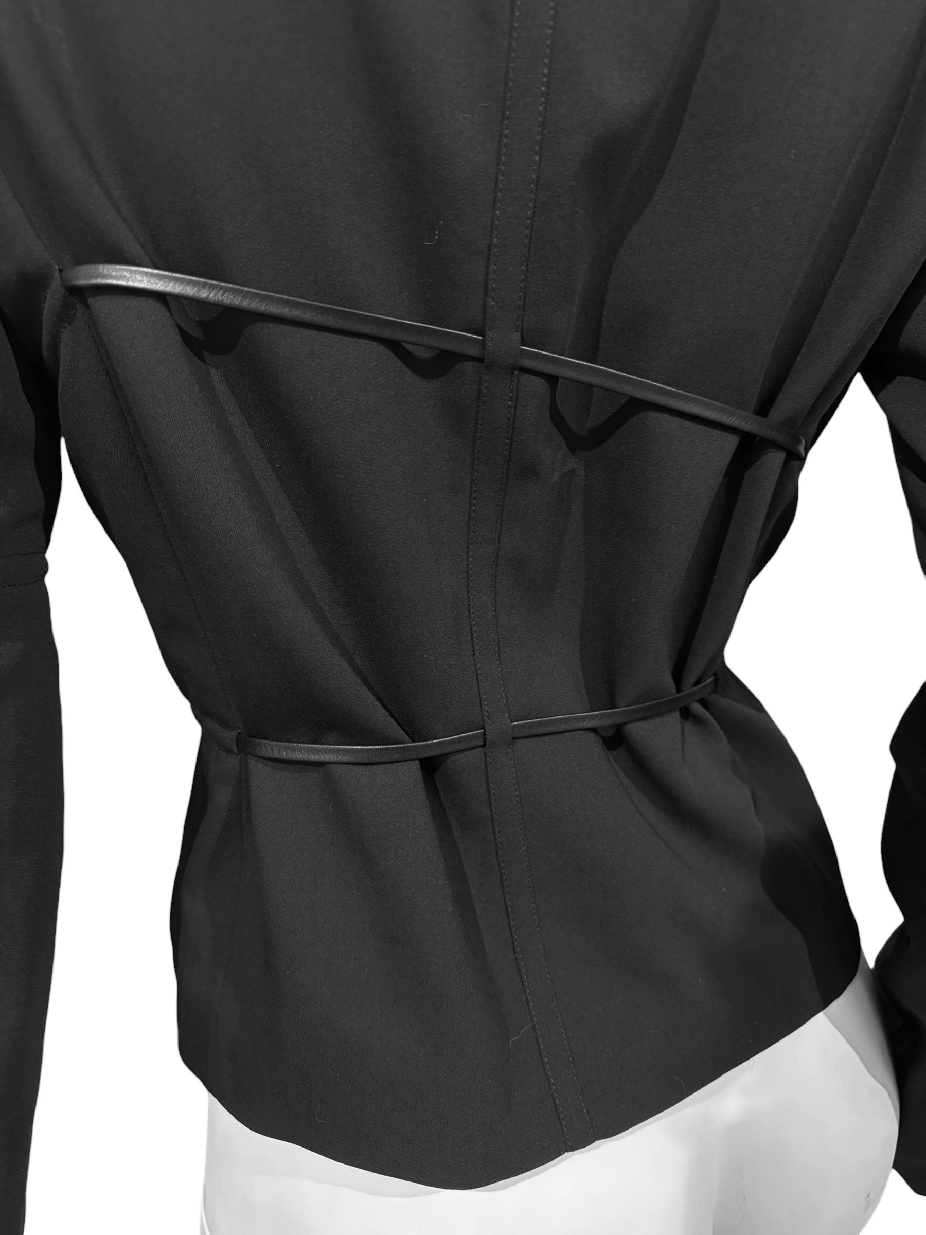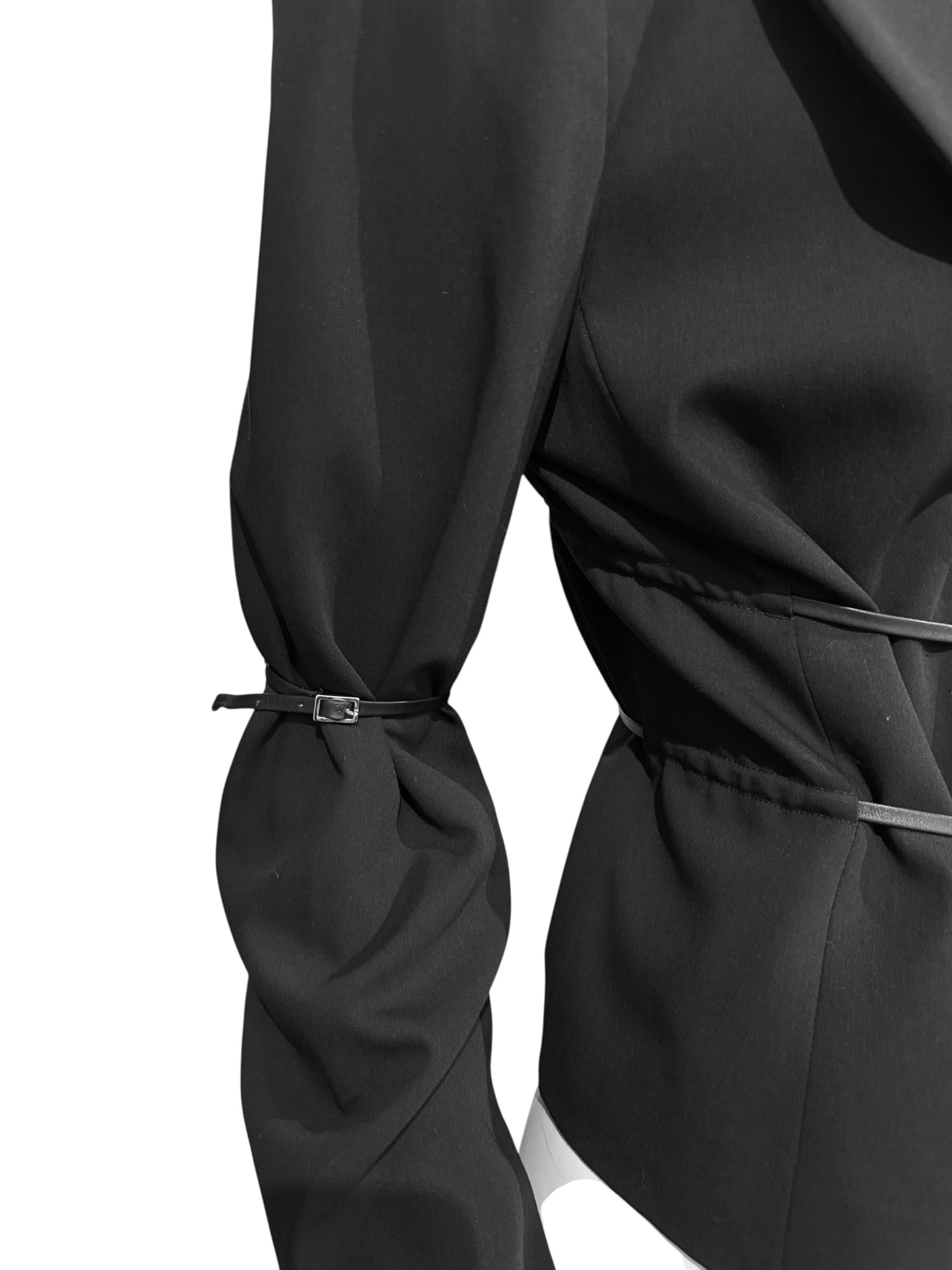 PLEIN SUD 1990s BLACK WOOL LEATHER STRAPS BLAZER