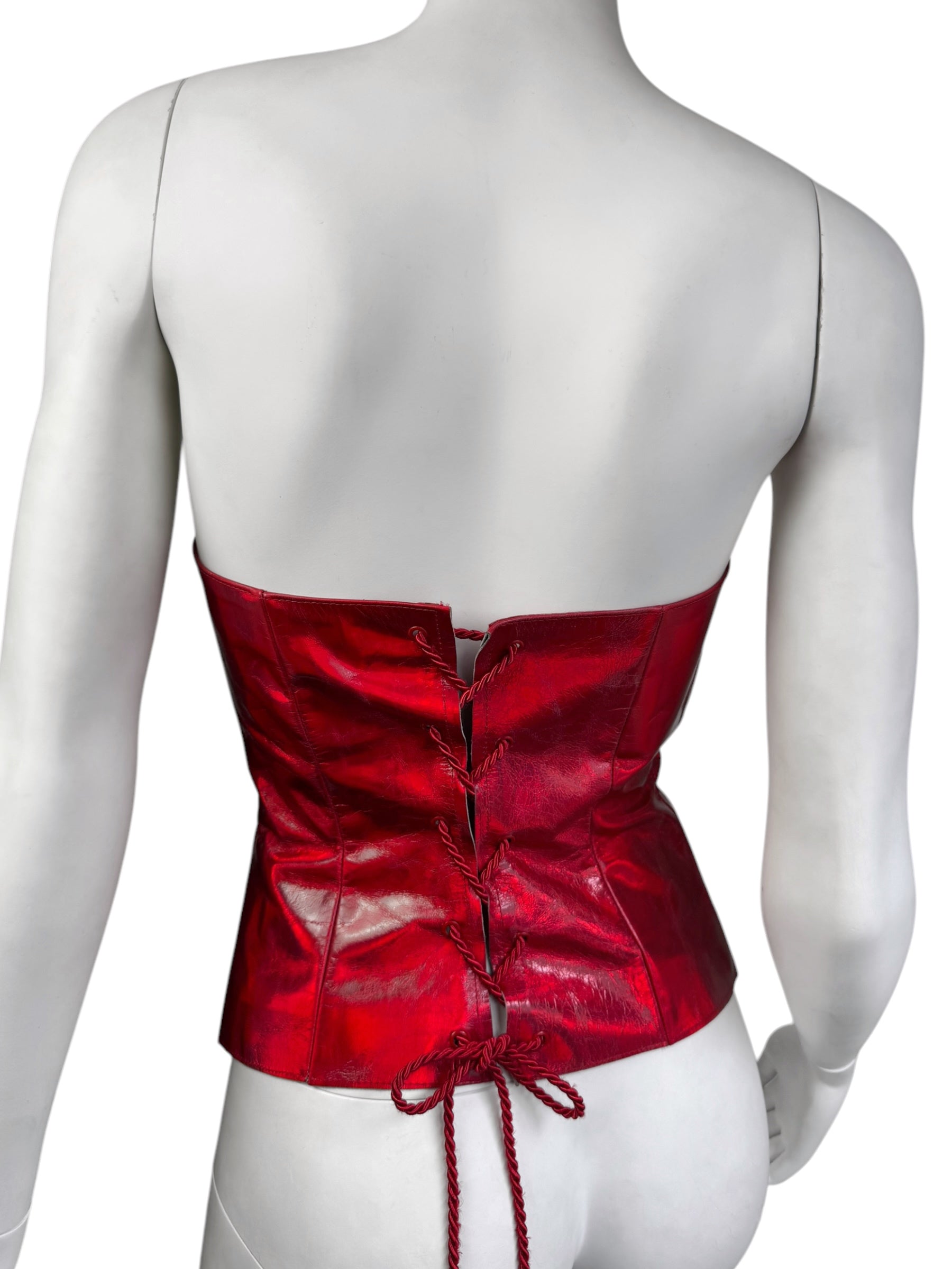 PLEIN SUD 1990s METALLIC RED LEATHER CORSET BUSTIER TOP