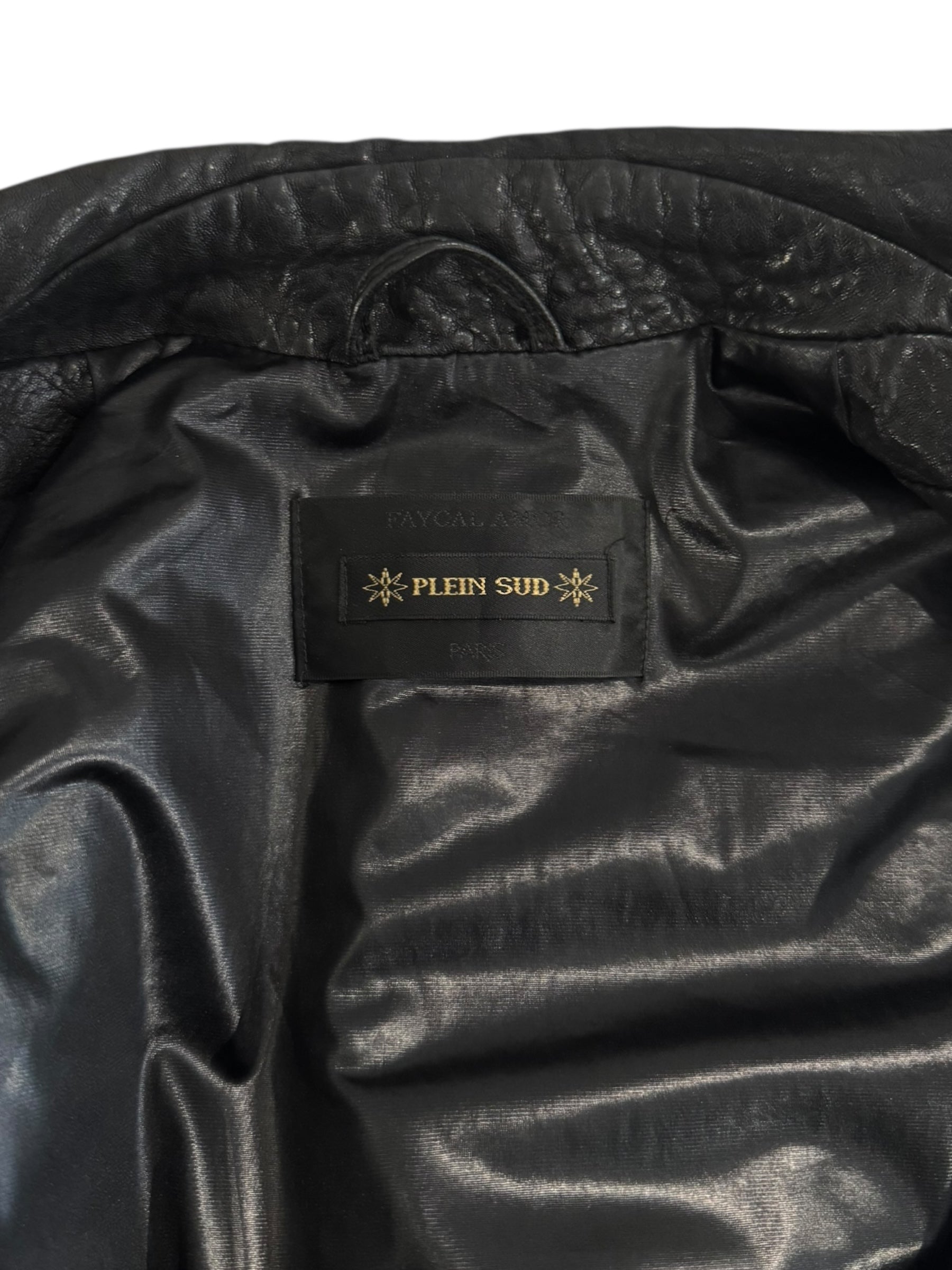 PLEIN SUD 2000s BLACK LEATHER ASYMMETRICAL JACKET