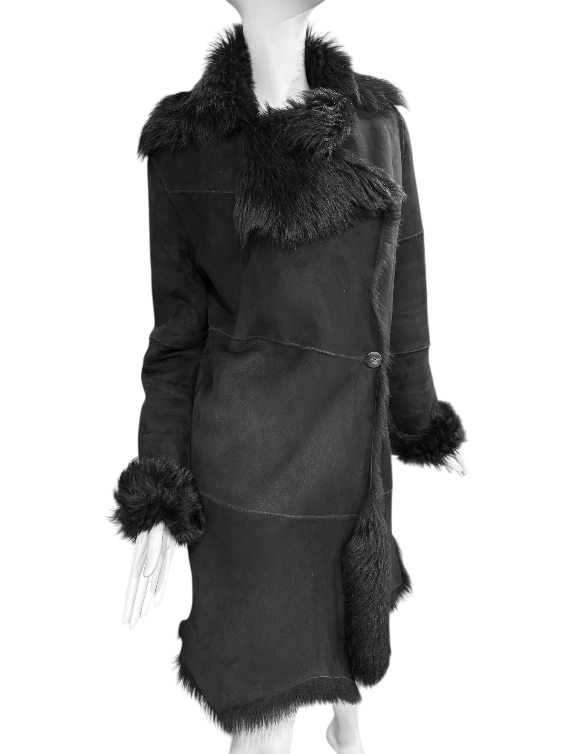 PLEIN SUD 2000s BLACK SHEEPSKIN COAT