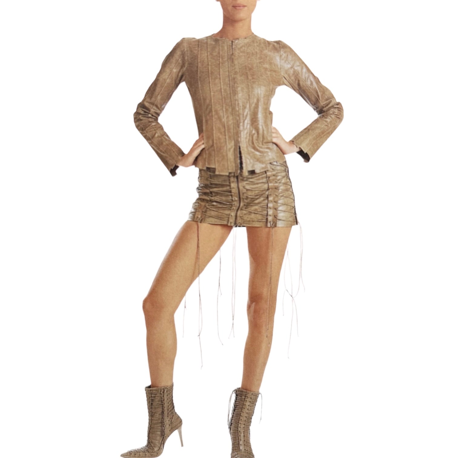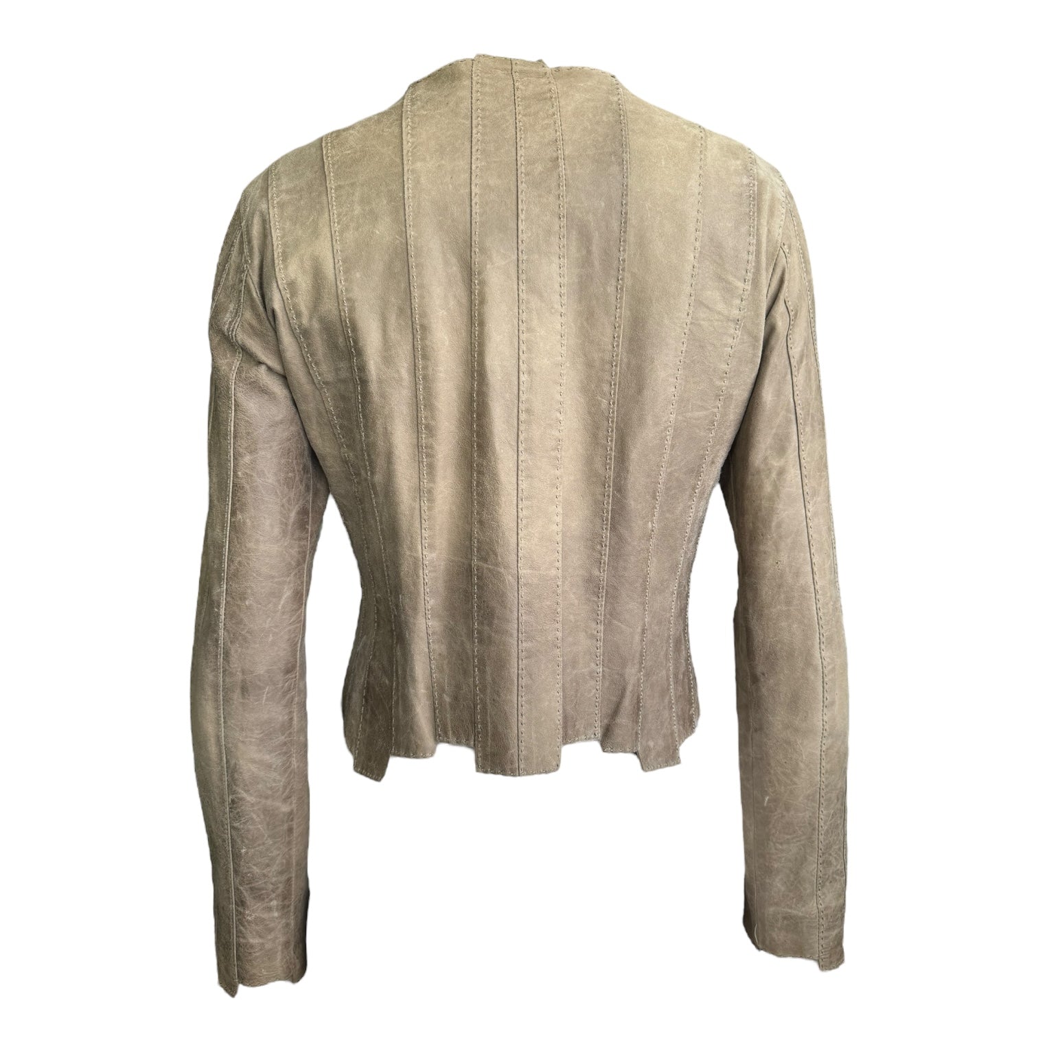PLEIN SUD SS2003 BEIGE DISTRESSED LEATHER HOOKED JACKET