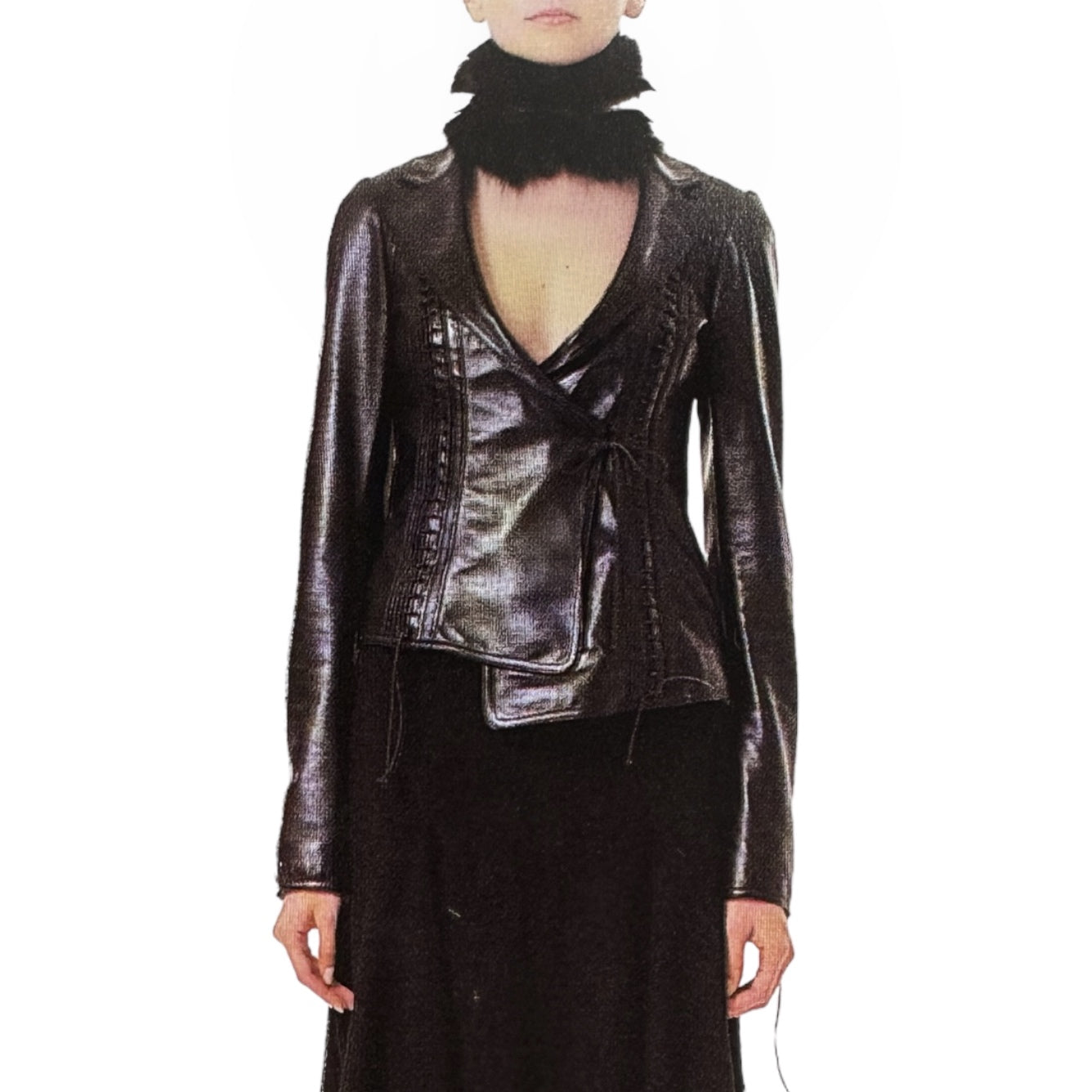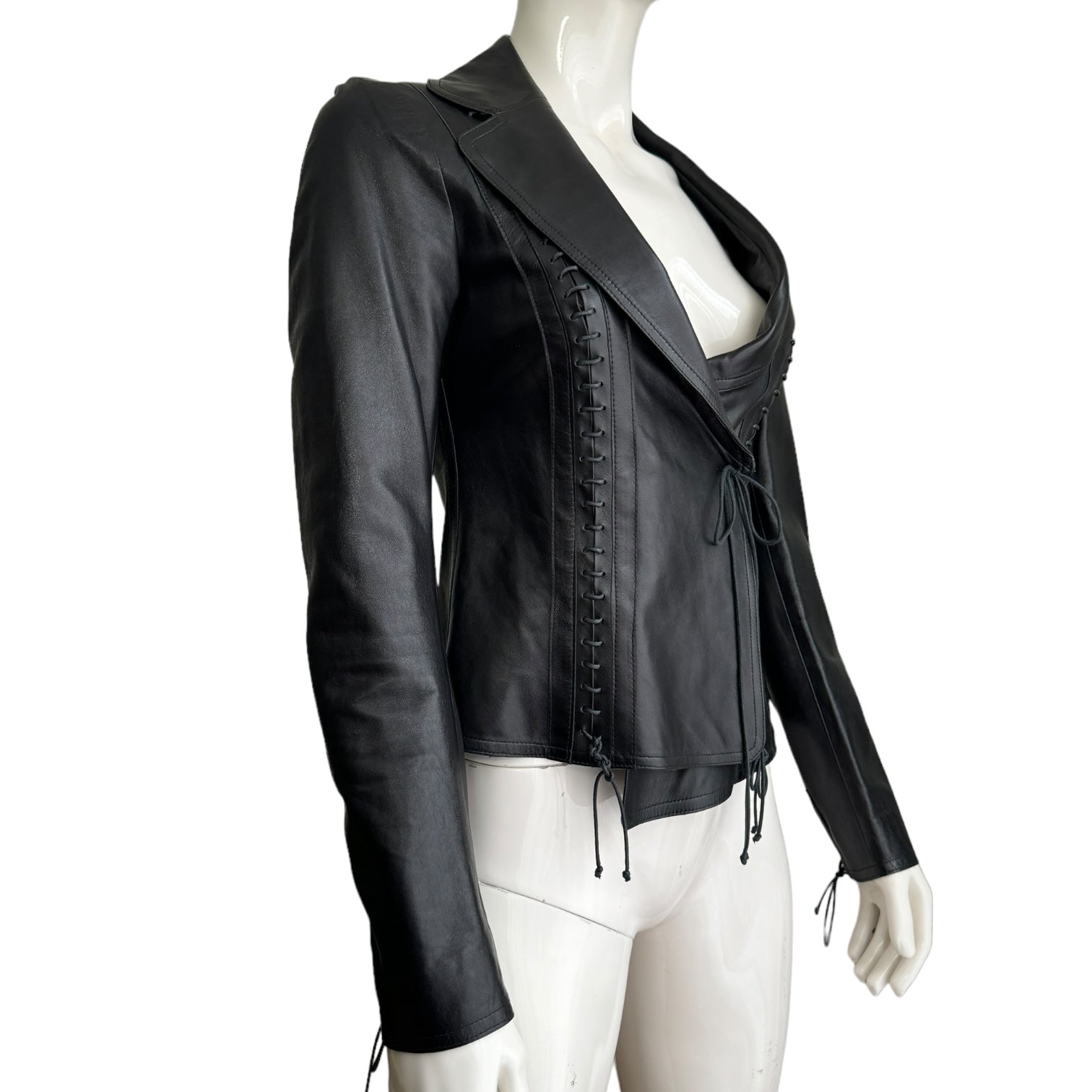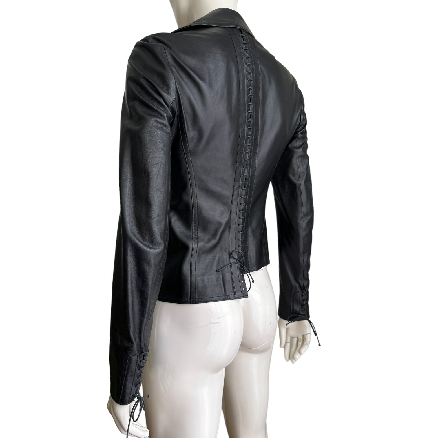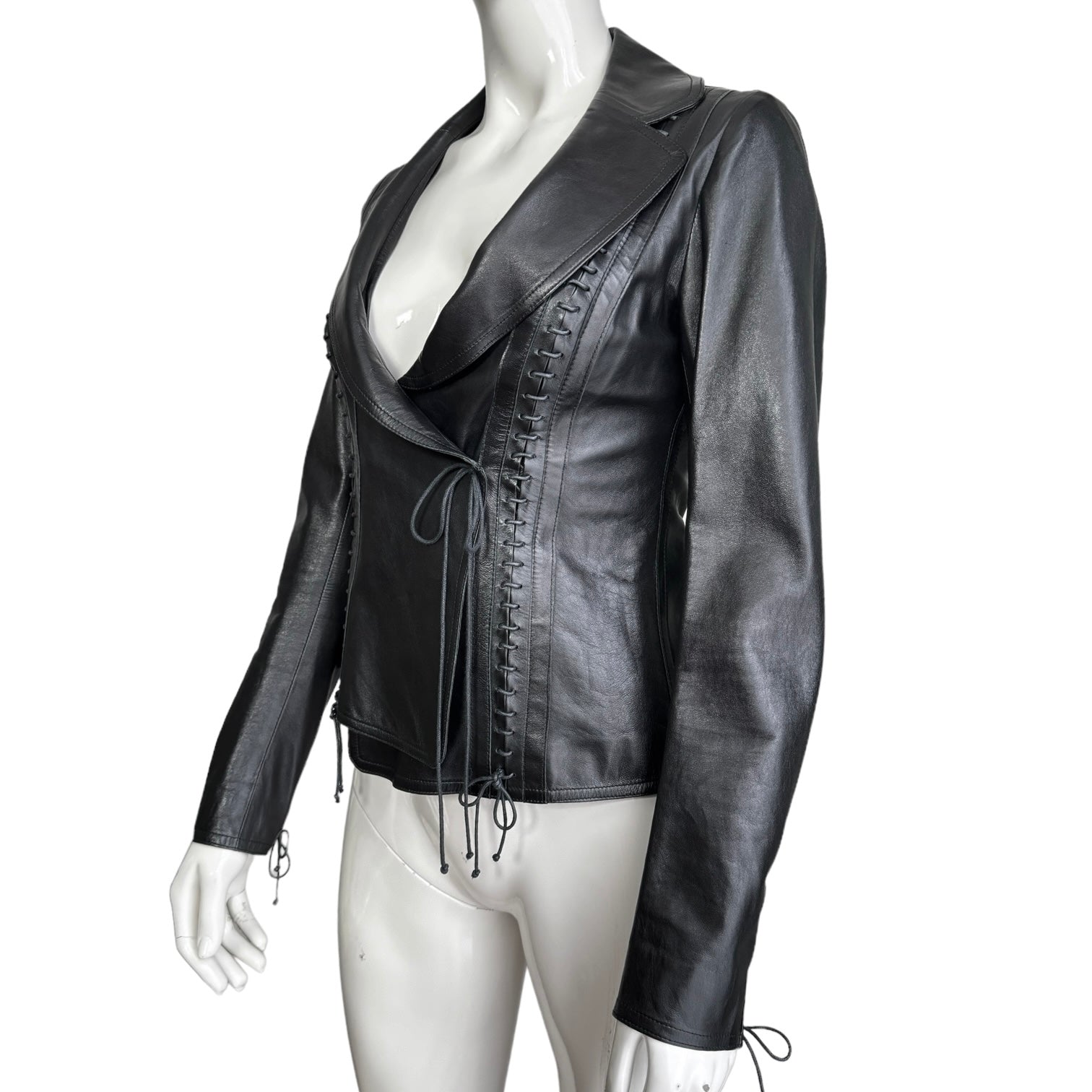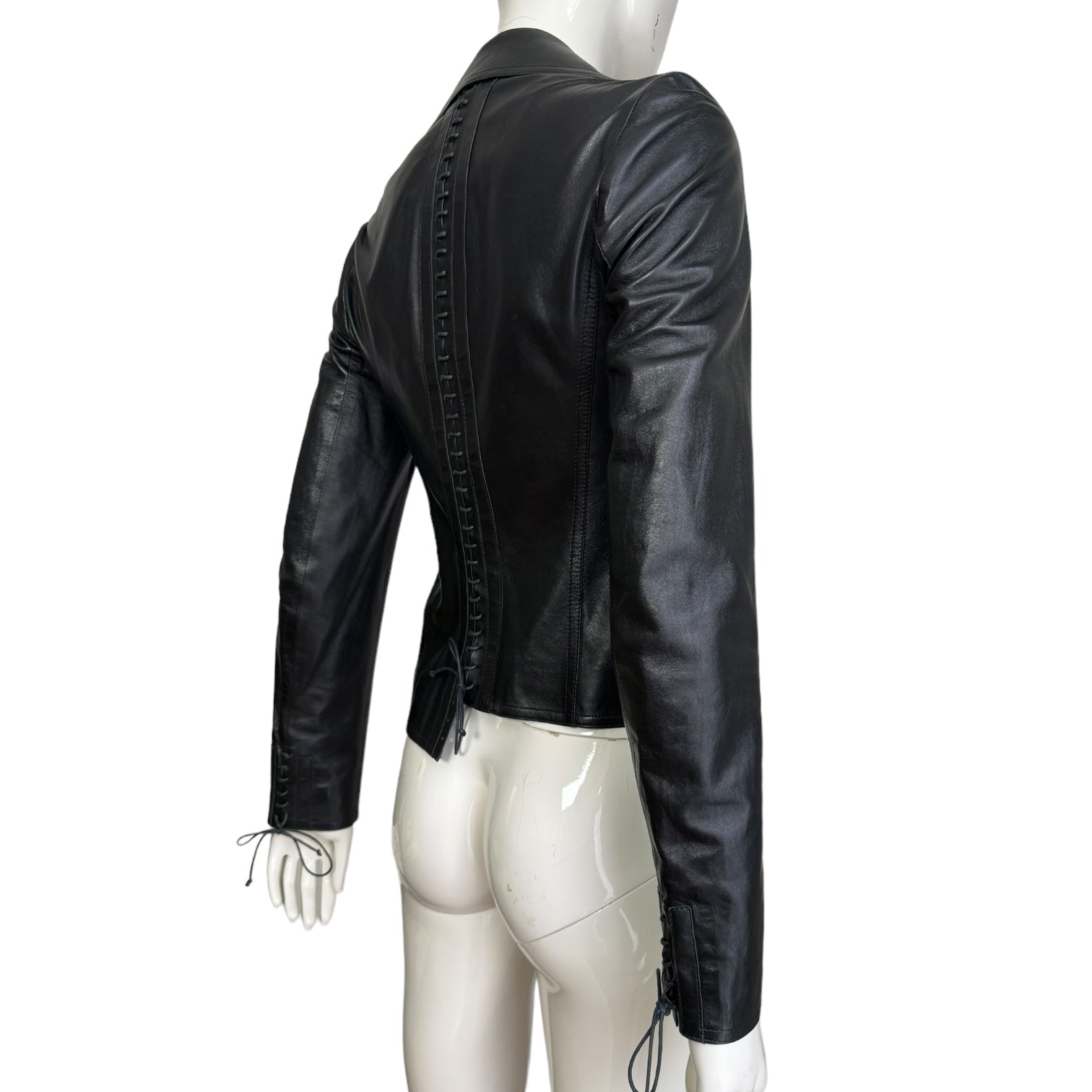 PLEIN SUD FW2002 BLACK LEATHER LACE-UP JACKET