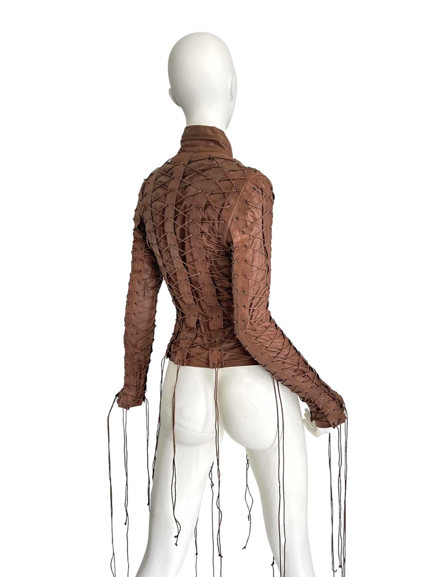 PLEIN SUD FW2002 BROWN LEATHER LACE-UP CAGE JACKET