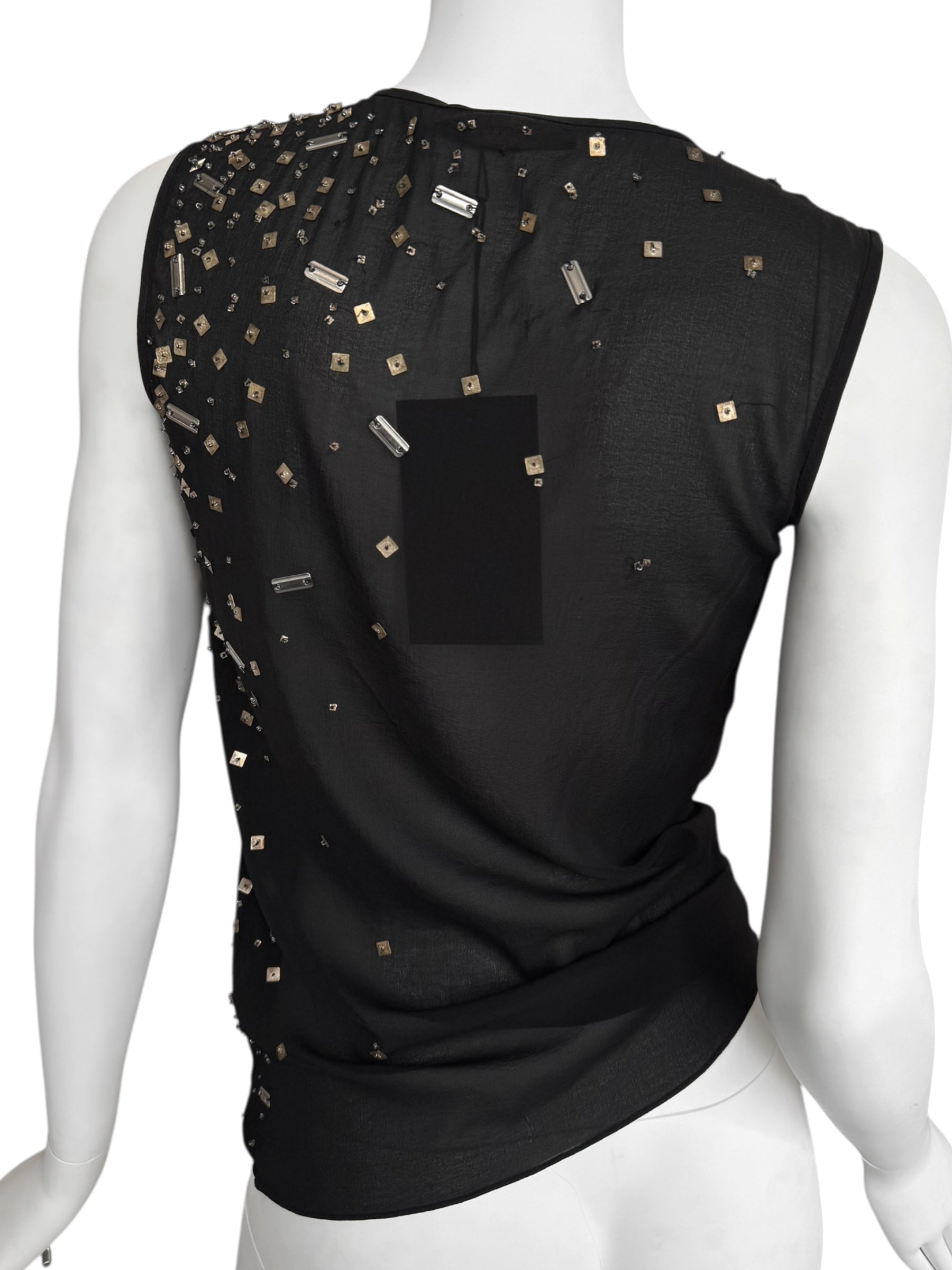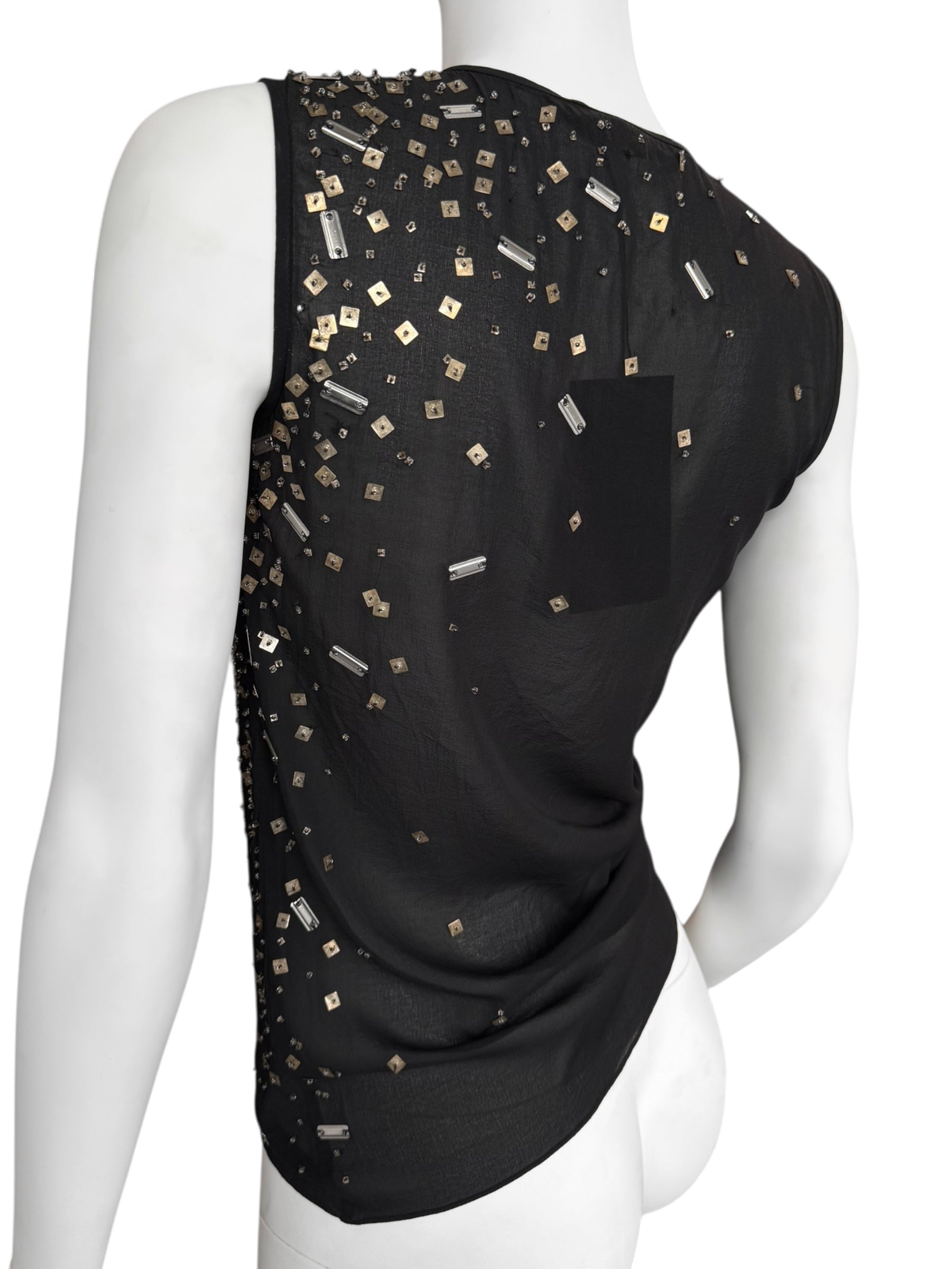 PLEIN SUD FW2003 BLACK SILK CHAINS & SEQUINS EMBELLISHED TANK TOP